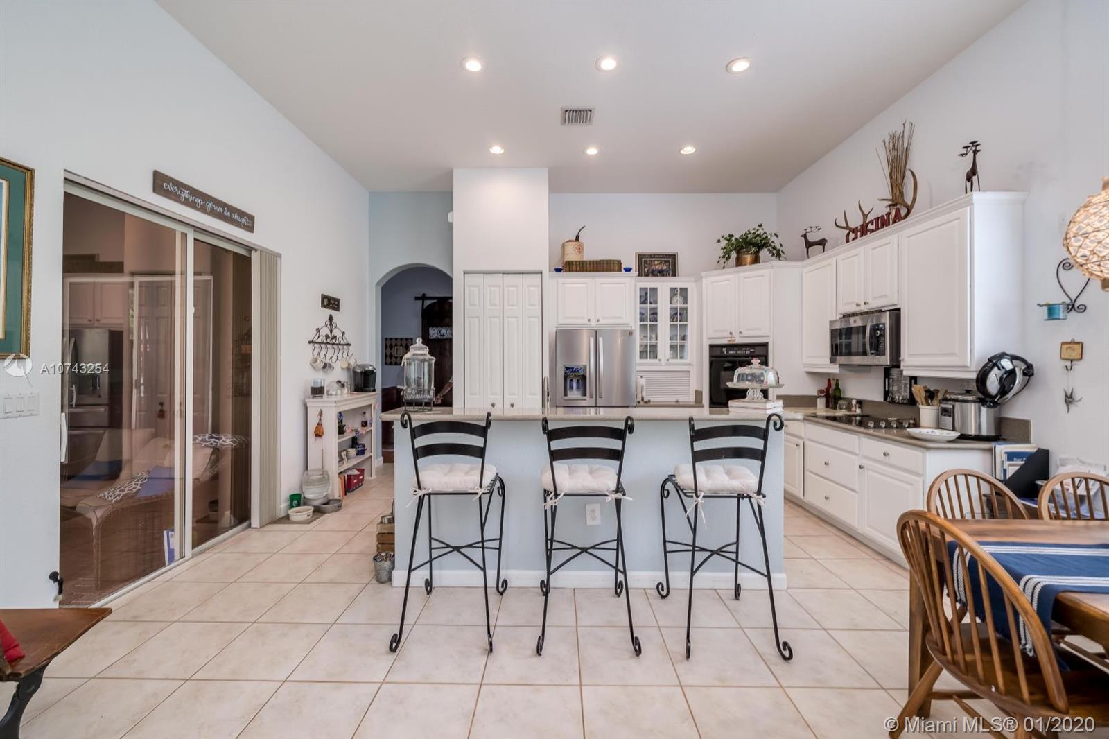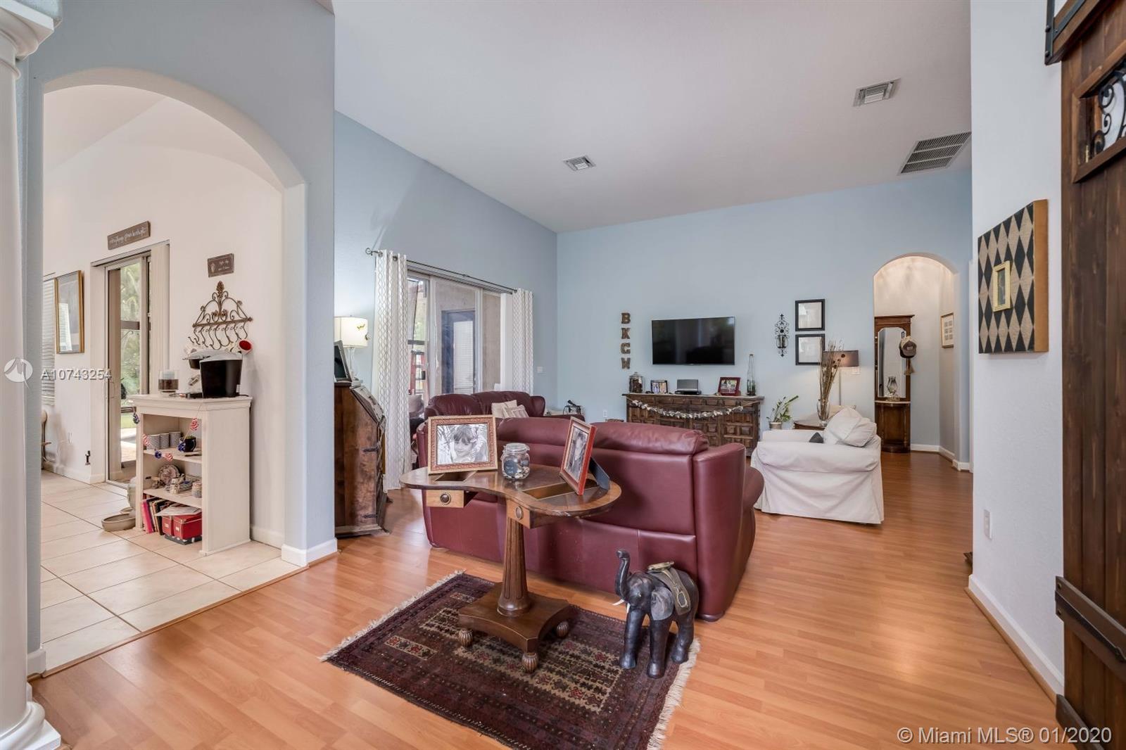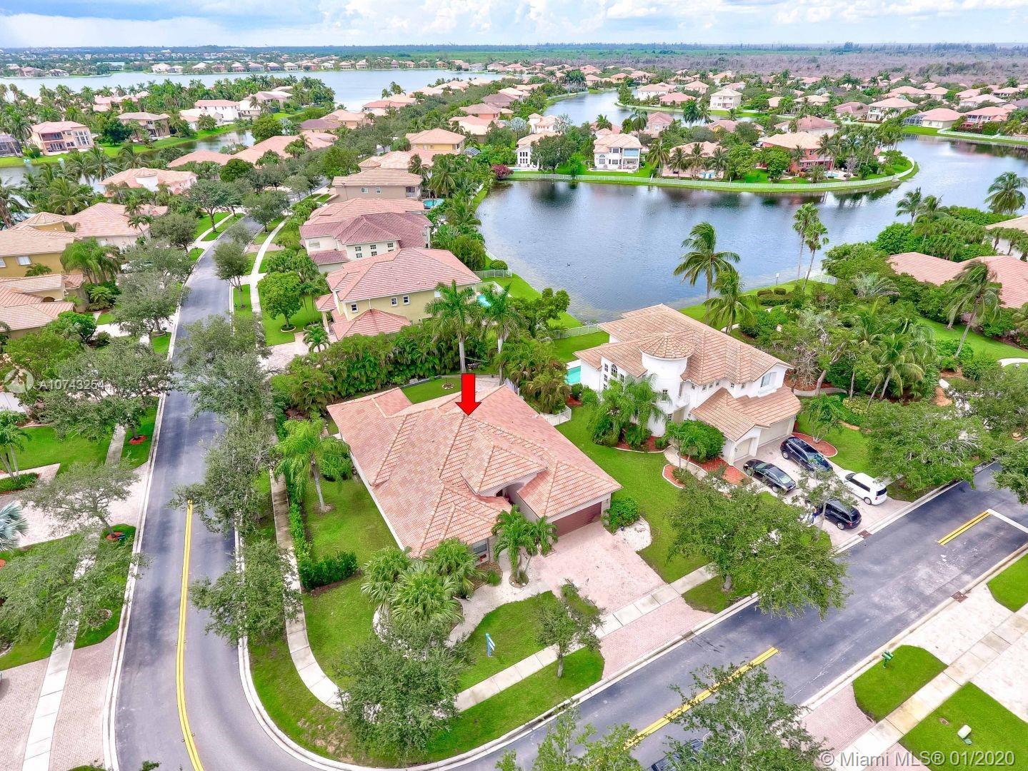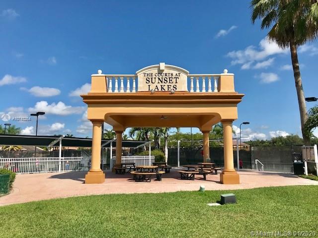 Stunning one-story residence located inside of the prestigious community of Sunset Lakes. Enjoy the privacy of living in a corner lot home that is situated on an oversized 11,889 sq. ft. lot. As you walk inside, you will be amazed by the 12' volume ceilings in all living areas of the property, and the privacy of having a split bedroom floor-plan that separates the master bedroom from the rest of the bedrooms in the home. Completely remodeled kitchen cabinets, brand new stainless steel appliances, water filtration system, open family room with access to the outdoor screened-in terrace, 1/2 bathroom that serves as a cabana bath with direct access to the patio/pool area. As you step into the backyard, you will fall in love with the pool area where you can enjoy lake views & sunsets. MUST SEE!