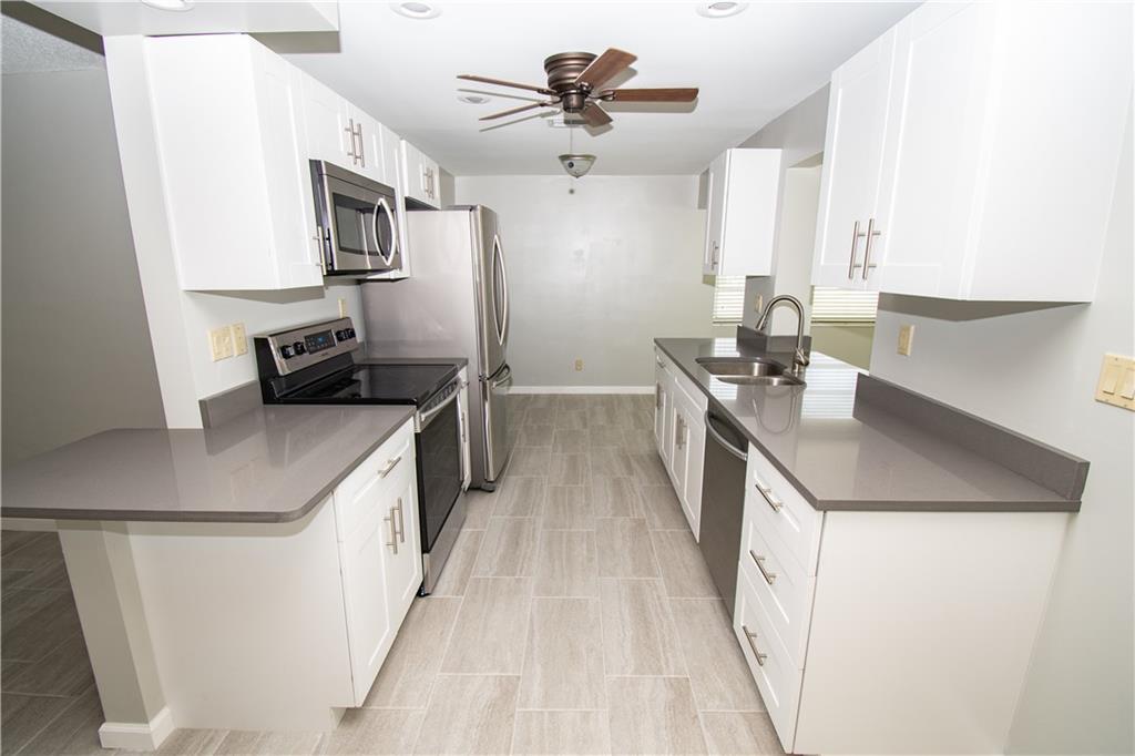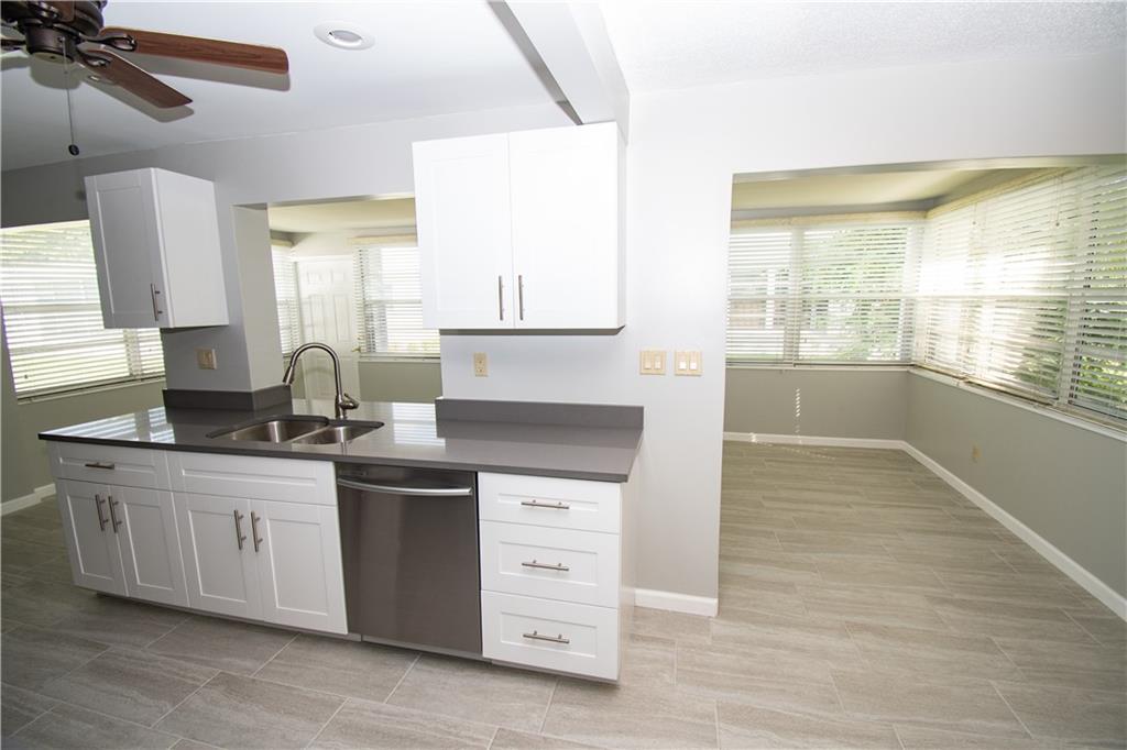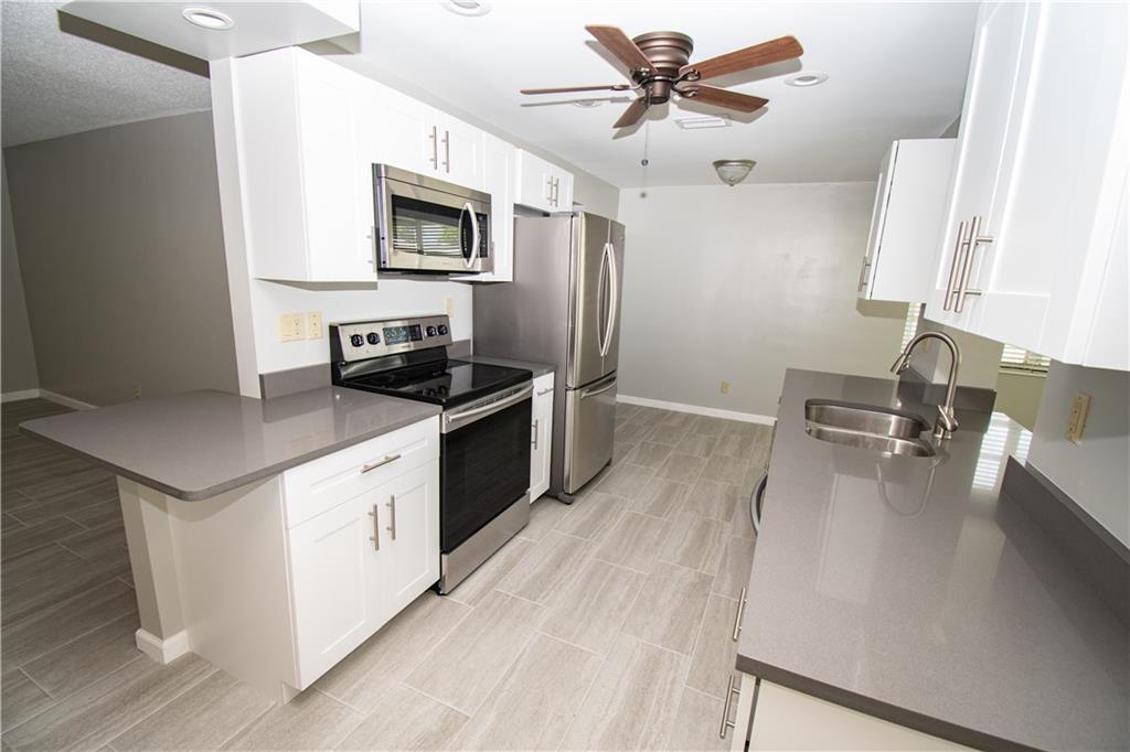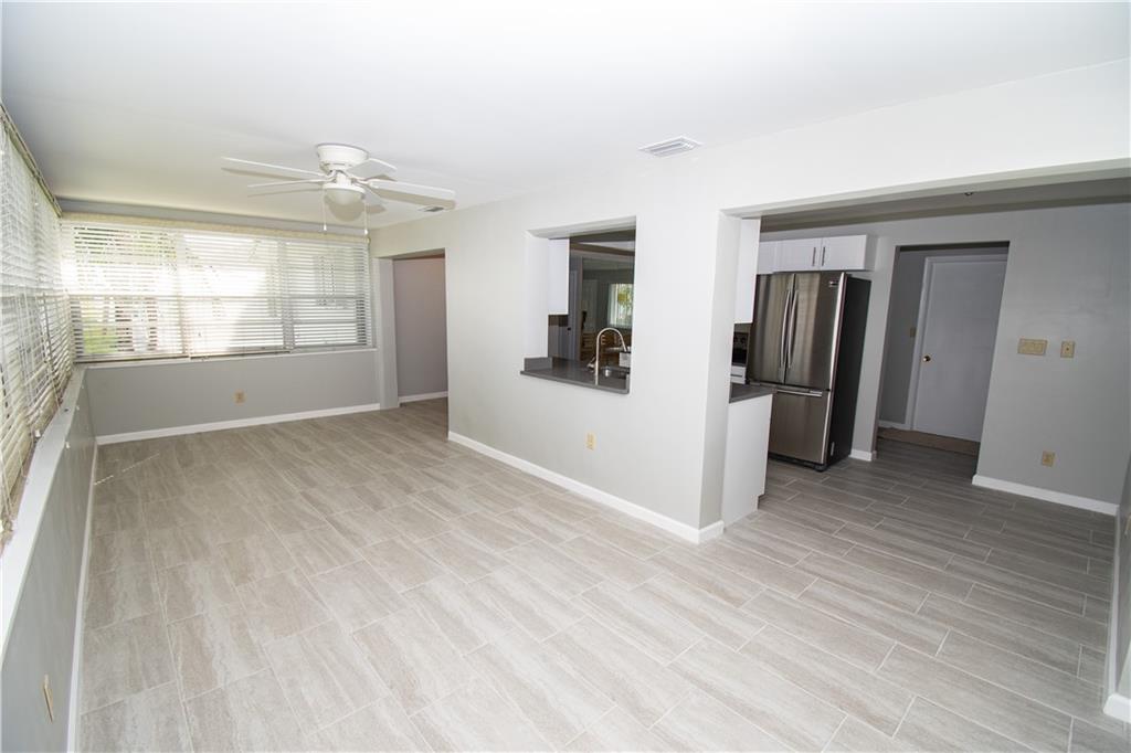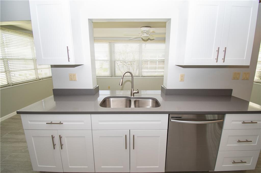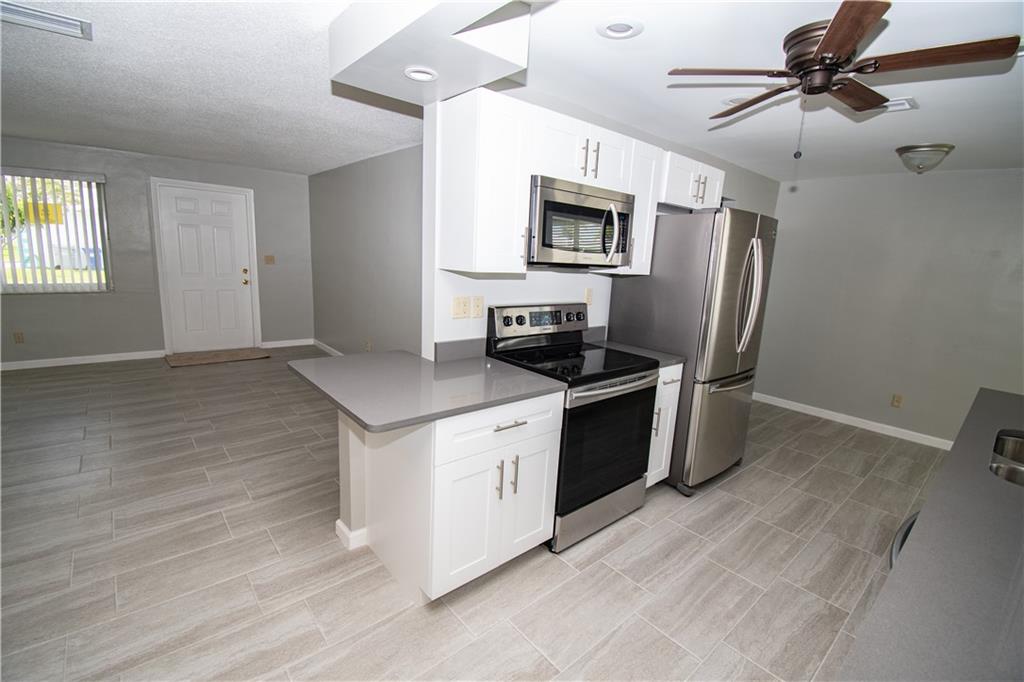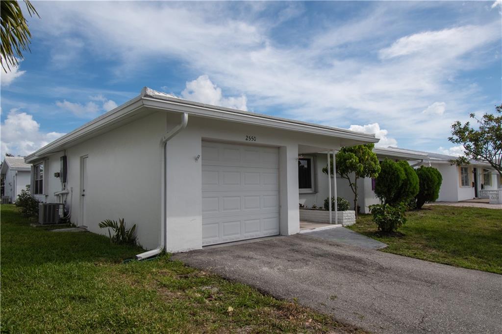 NEW ROOF September 2019 with 10 year Guaranty. Completely renovated interior including new kitchen and bathrooms. Quartz counter tops. New stainless appliances - Refrigerator, electric flat top range/oven, microwave & dishwasher, plus brand new washer & dryer. New ceramic tile floors in living areas. New carpet in bedrooms. Enclosed Florida Room under air. Accordion Hurricane Shutters all around. Hurricane rated garage door with electric opener. Newer windows (with permits). Located near 1st clubhouse and pool (with no land lease). 55+ community maintains yard, sprinklers & handles exterior painting.