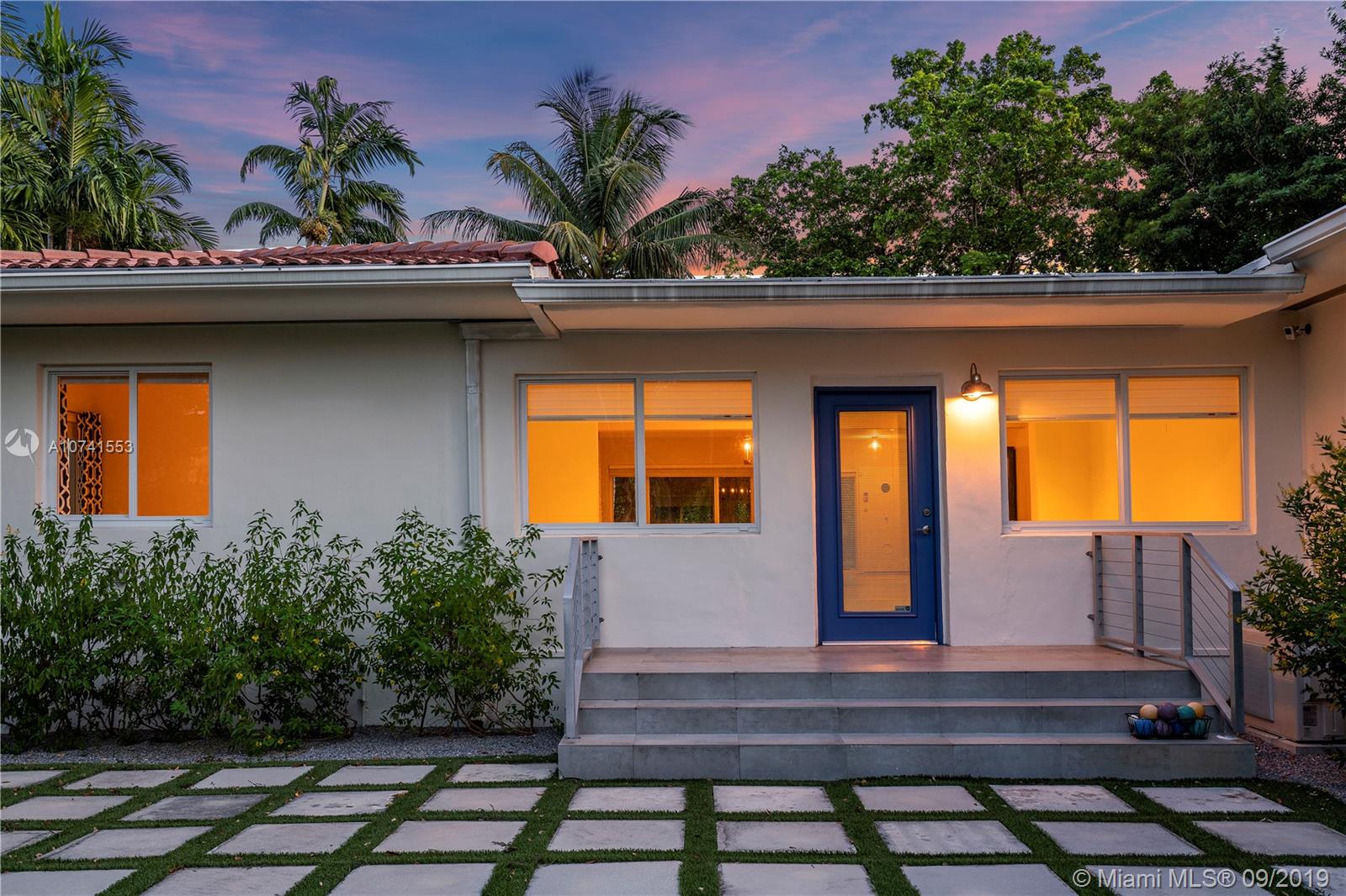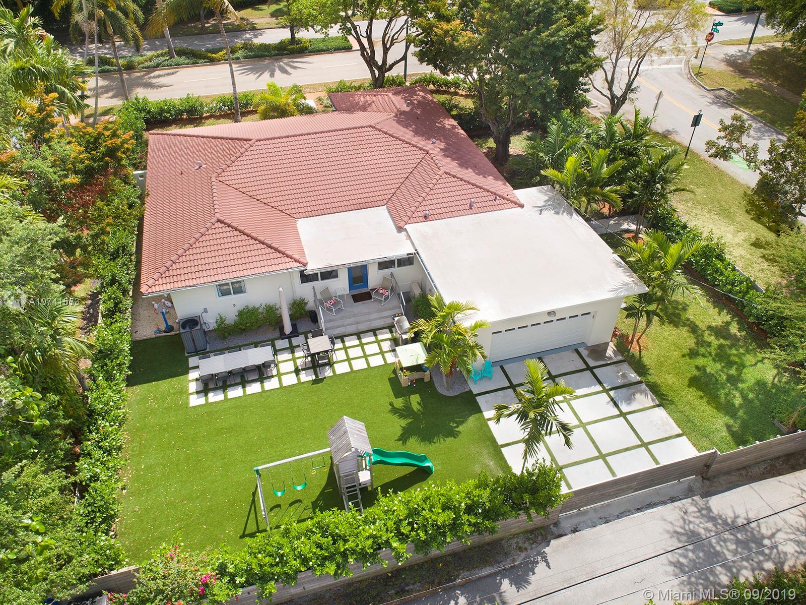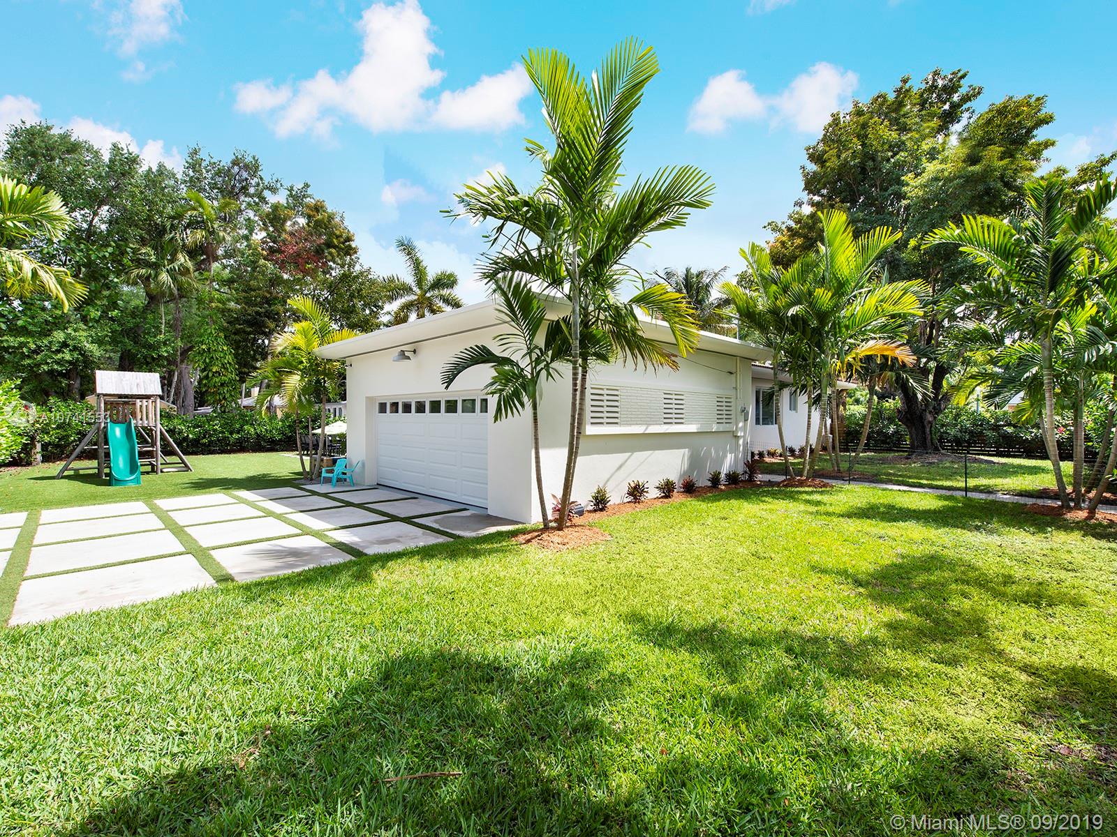 Actual SF is 2435/Appraisal. Don't let the street prevent you from seen this amazing home! Completely renovated Mid-Century modern stunner on an over-sized corner lot in Miami Shores. Close to all the Shores has to offer - community center, sports fields, tot lot, houses of worship & downtown area. Gorgeous original terrazzo floors in dining & family rooms w/wood floors throughout bedrooms, kitchen & living room. Large kitchen w/breakfast nook & island for entertaining. Spacious master-bed w/walk in closest. 2-car garage w/bathroom, loft storage & laundry w/more cabinet storage. Upgrades include custom smokeless HearthCabinet fireplace with bar, new driveway and motorized gate, low maintenance lush landscaping and new plumbing, impact windows/doors, septic tank and drain field.