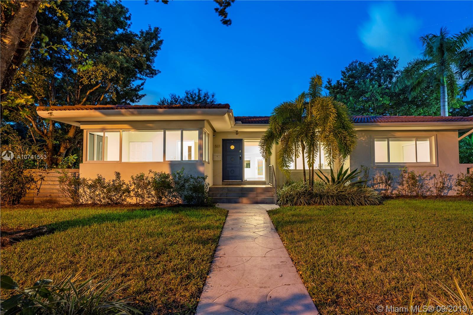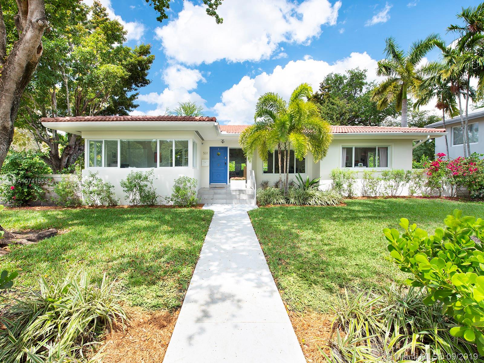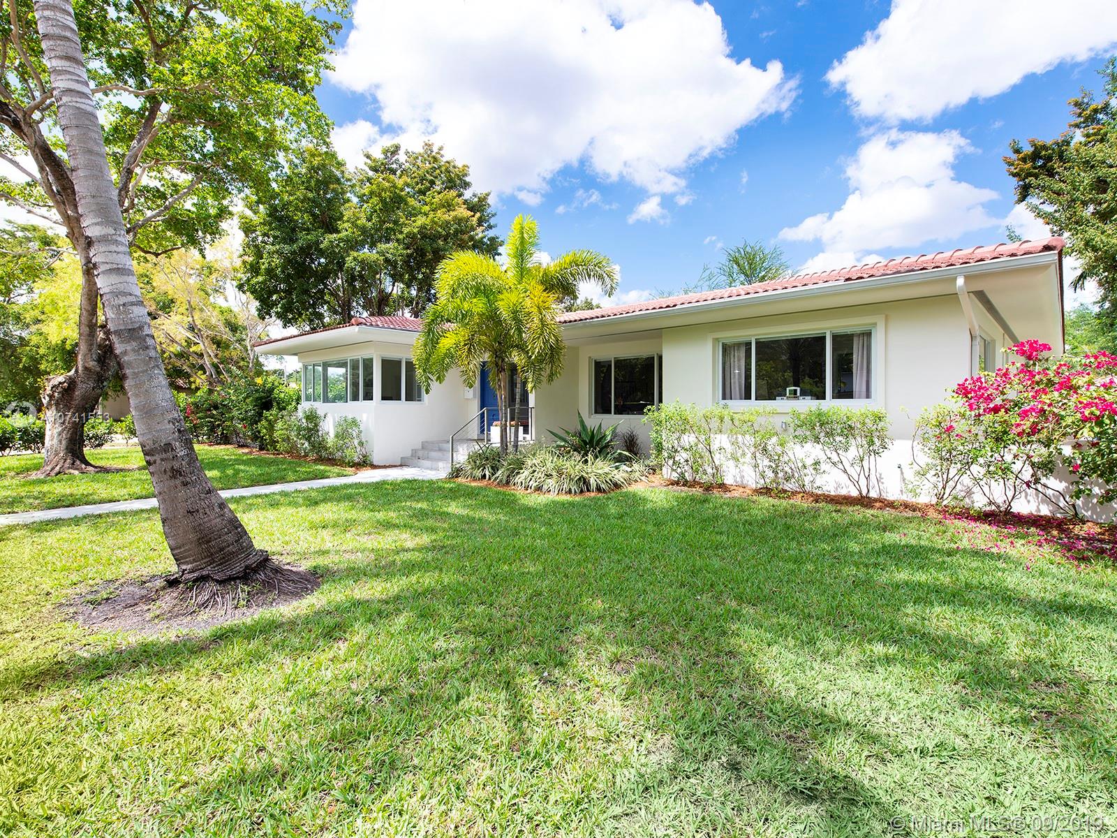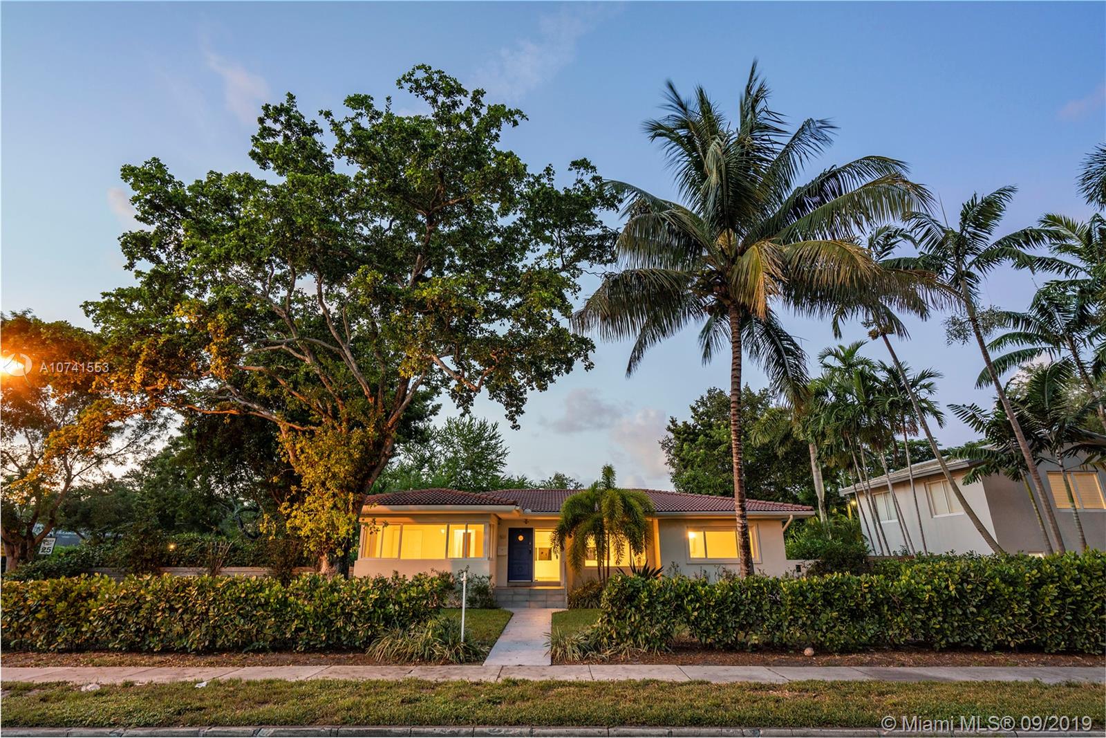 Actual SF is 2435/Appraisal. Don't let the street prevent you from seen this amazing home! Completely renovated Mid-Century modern stunner on an over-sized corner lot in Miami Shores. Close to all the Shores has to offer - community center, sports fields, tot lot, houses of worship & downtown area. Gorgeous original terrazzo floors in dining & family rooms w/wood floors throughout bedrooms, kitchen & living room. Large kitchen w/breakfast nook & island for entertaining. Spacious master-bed w/walk in closest. 2-car garage w/bathroom, loft storage & laundry w/more cabinet storage. Upgrades include custom smokeless HearthCabinet fireplace with bar, new driveway and motorized gate, low maintenance lush landscaping and new plumbing, impact windows/doors, septic tank and drain field.
