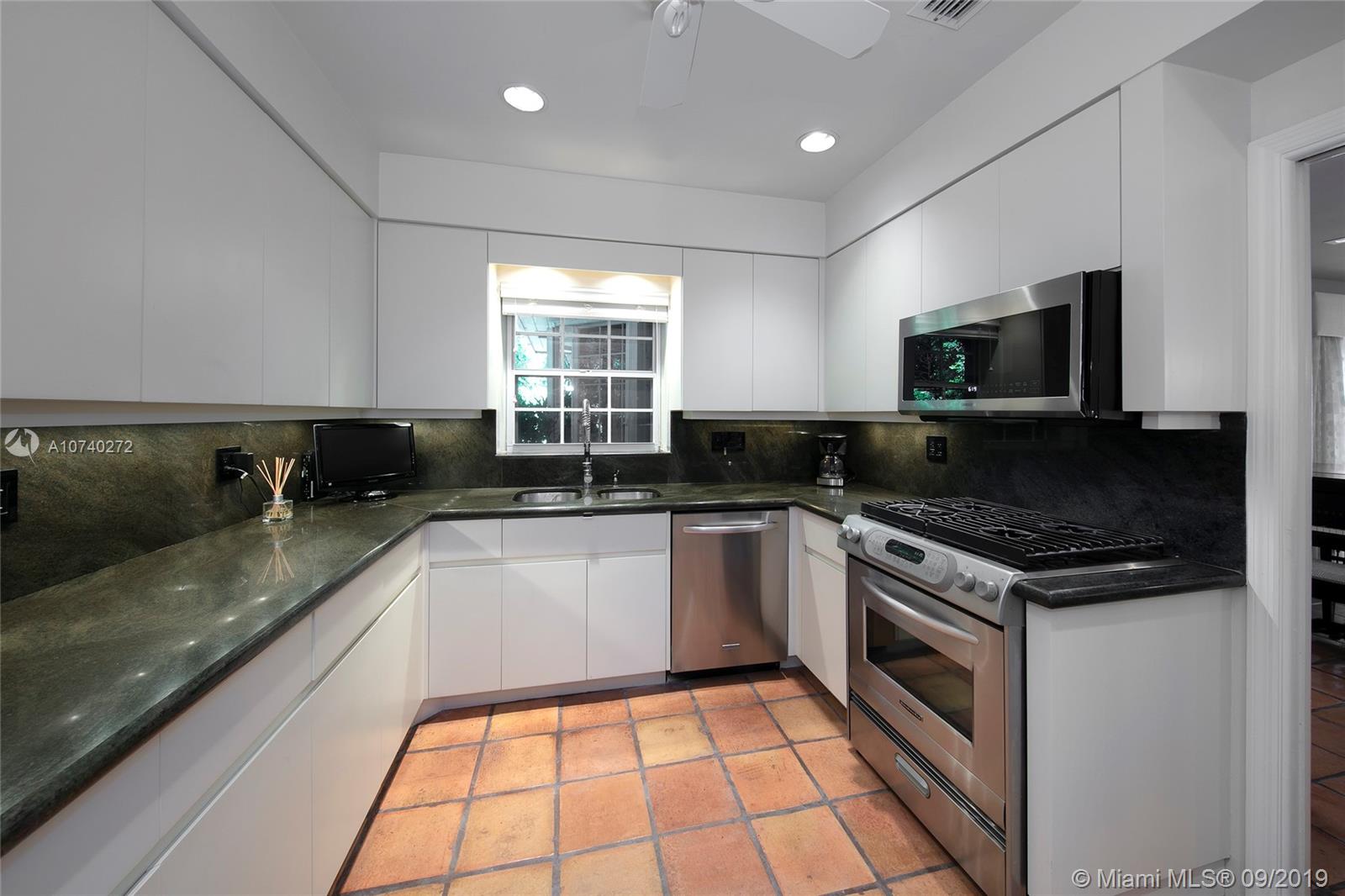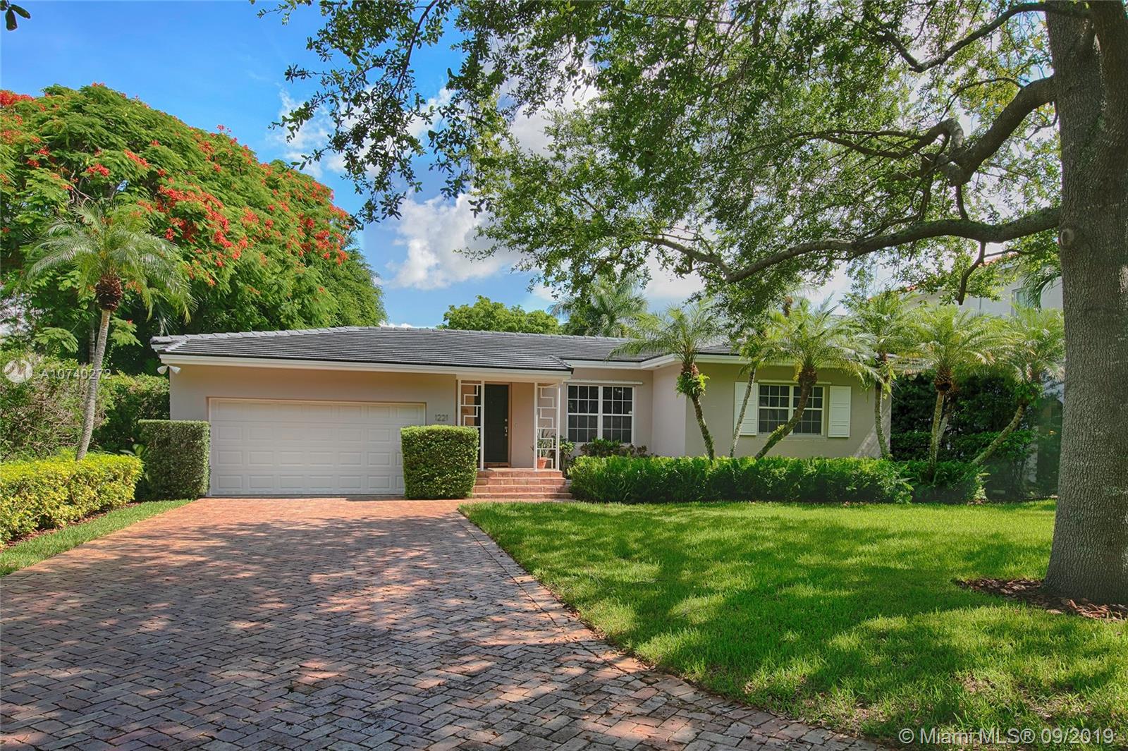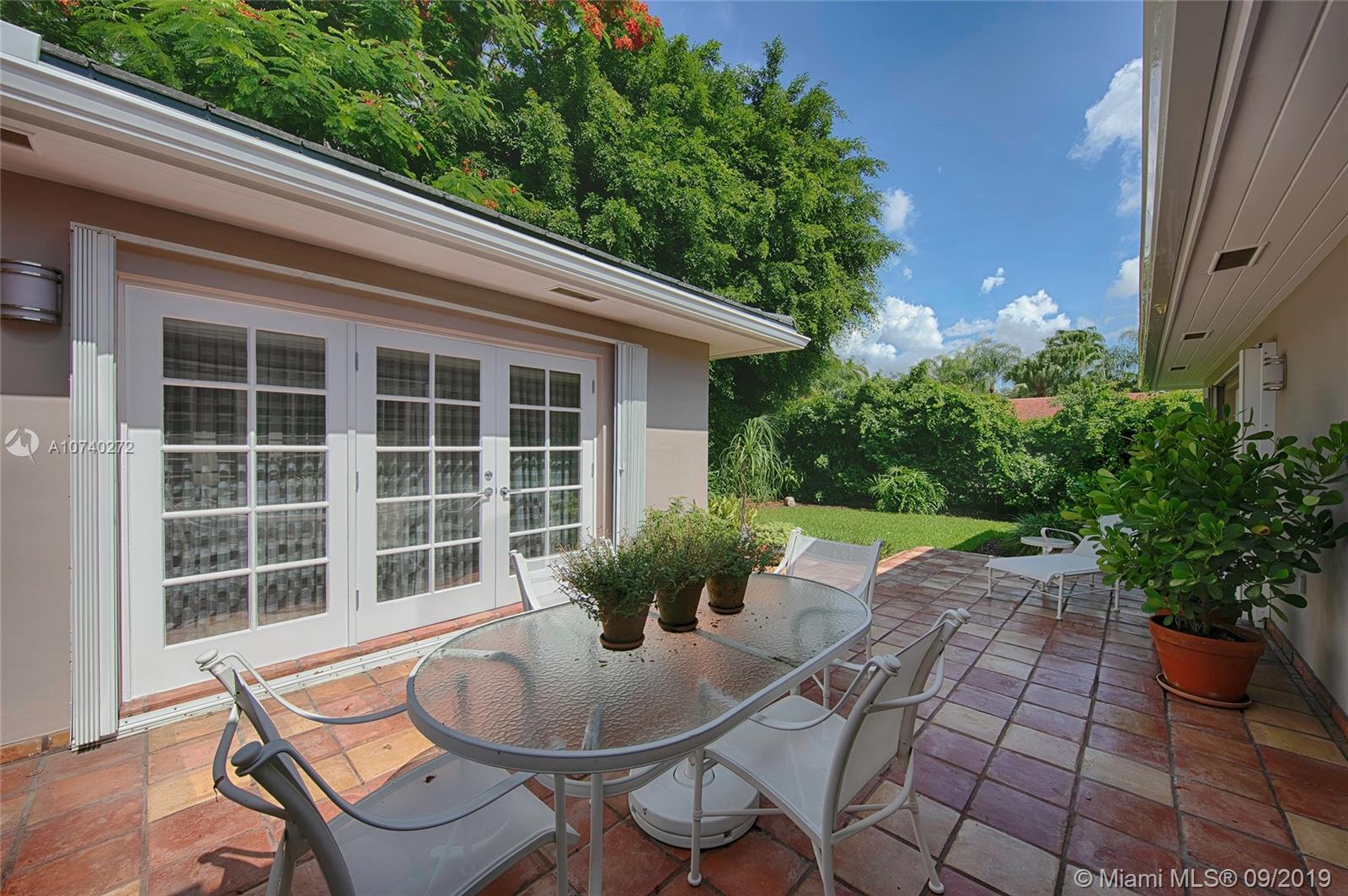 Home Sweet Home! Mid-century South Gables home has incredible charm w/natural light, crown molding, wood floors and French terracotta. Sits on 8,750 SF lot in a quiet tree-lined street w/2,669 adj sf containing a split floor plan of 3 beds/3 baths. Kitchen w/gas range & SS appliances. Step out through French doors to patio. Spacious master wing addition w/marble flrs overlooks the patio. Master bath boasts walk-in his/her closets, dual vanities, shower and separate tub. Brick driveway leads to 2 car garage. Electrical has been updated w/LED lights in most rooms. 2 bathrooms were tastefully renovated w/ modern design in 2016. Custom built-ins & good storage space. Shutters. Central location close to UM & Sunset Place. New roof. New septic tank and drain.