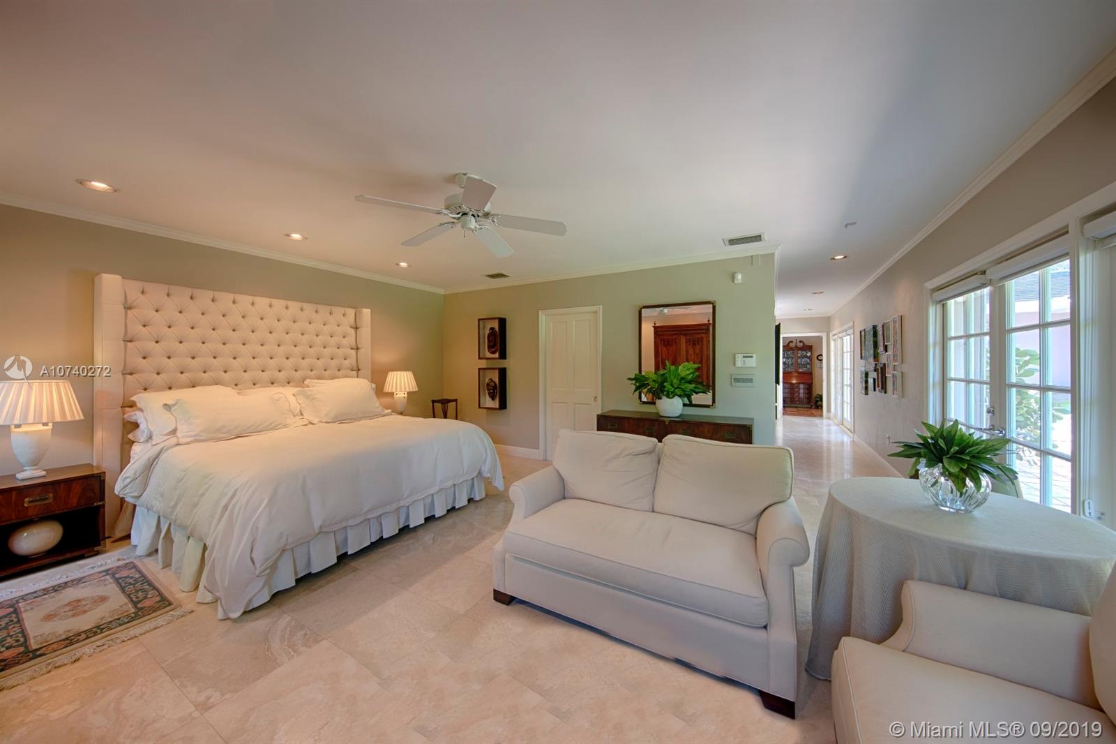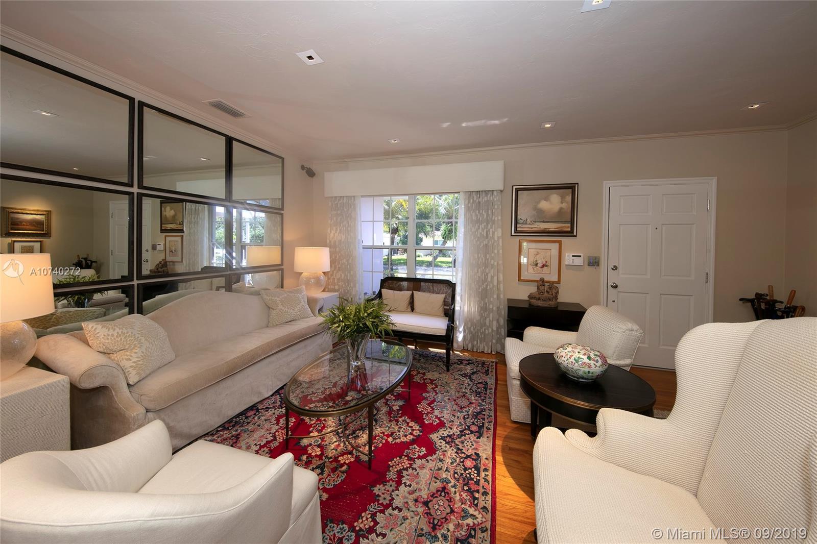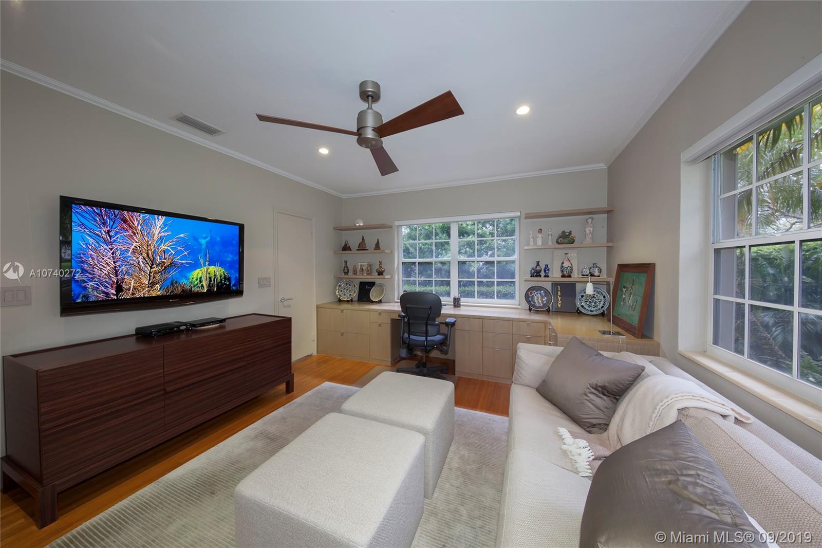 Home Sweet Home! Mid-century South Gables home has incredible charm w/natural light, crown molding, wood floors and French terracotta. Sits on 8,750 SF lot in a quiet tree-lined street w/2,669 adj sf containing a split floor plan of 3 beds/3 baths. Kitchen w/gas range & SS appliances. Step out through French doors to patio. Spacious master wing addition w/marble flrs overlooks the patio. Master bath boasts walk-in his/her closets, dual vanities, shower and separate tub. Brick driveway leads to 2 car garage. Electrical has been updated w/LED lights in most rooms. 2 bathrooms were tastefully renovated w/ modern design in 2016. Custom built-ins & good storage space. Shutters. Central location close to UM & Sunset Place. New roof. New septic tank and drain.