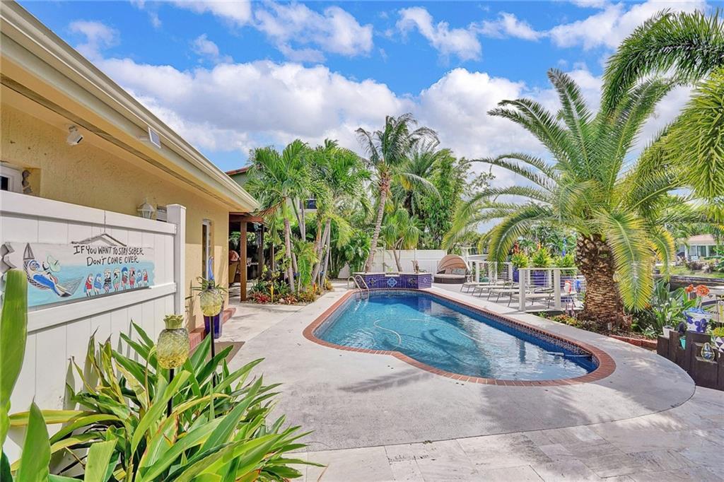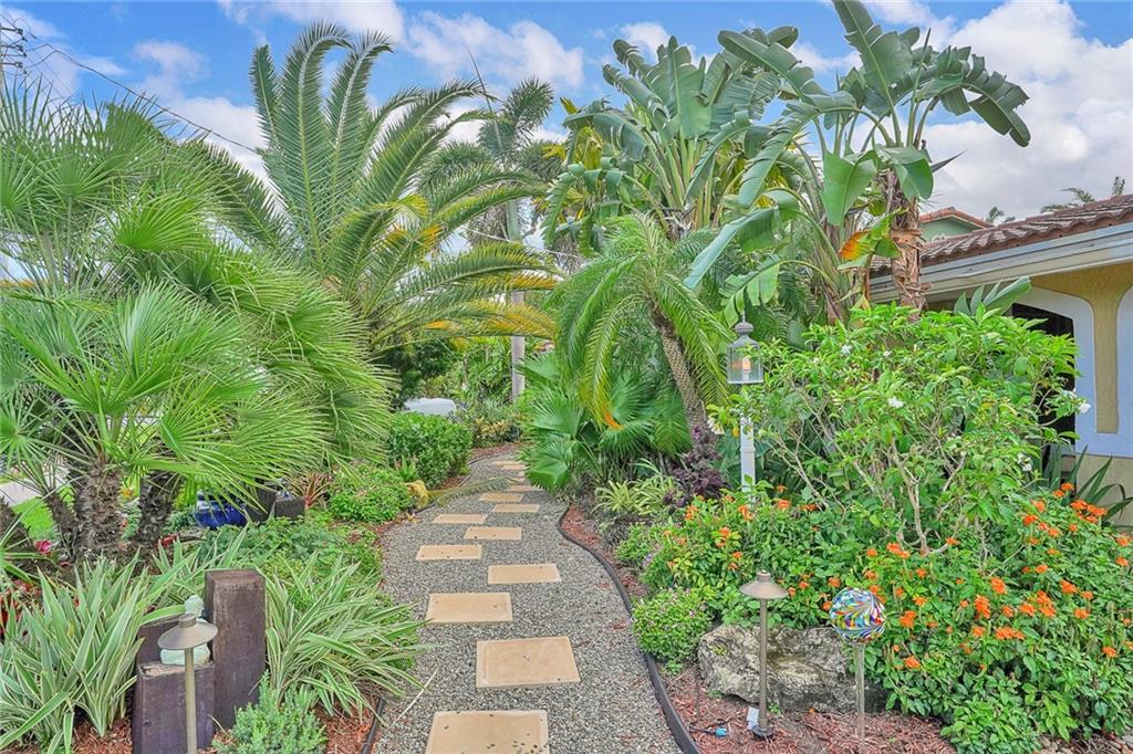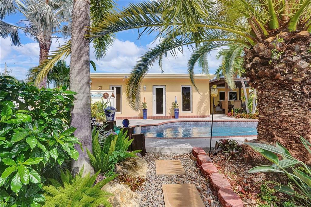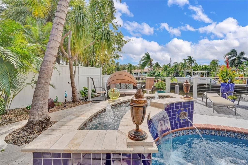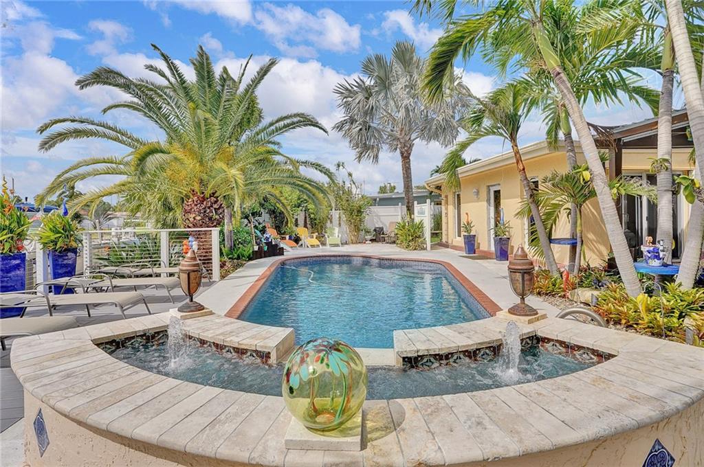 Amazing remodeled waterfront Garden Isles home. Open floor plan, ceramic tile, updated kitchen, granite, cooking island, stainless steel appliances, bathrooms updated, split floor plan. LED smart lighting w/Alexia. Walkout to the lush & private yard, w/ covered lanai, travertine deck, outdoor shower, heated pool w/ new Diamond Brite, pump and waterfall. New composite 60 ft deck and dock with 10,000-pound lift and 2 new motors. Cast iron replaced with PVC. Impact windows+shutters. One fixed bridge about 8ft clearance besides Federal Hwy bridge reports 12 ft. Updates include barrel Roof 2003, pavers 2018, sprinklers/landscaping 2018, flat roof 2017, A/C 2018, lanai 2018, pool pump waterfall 2018, dock, lift, dual motors, electric 2018