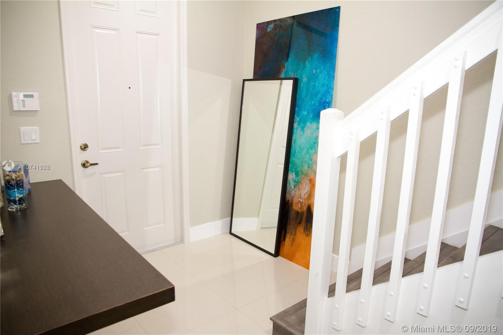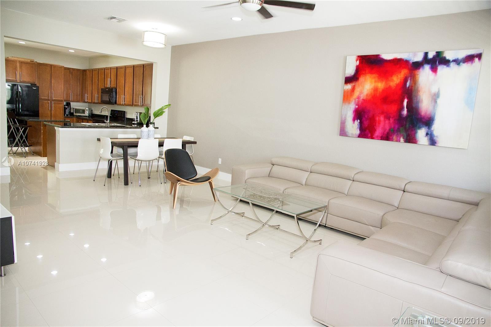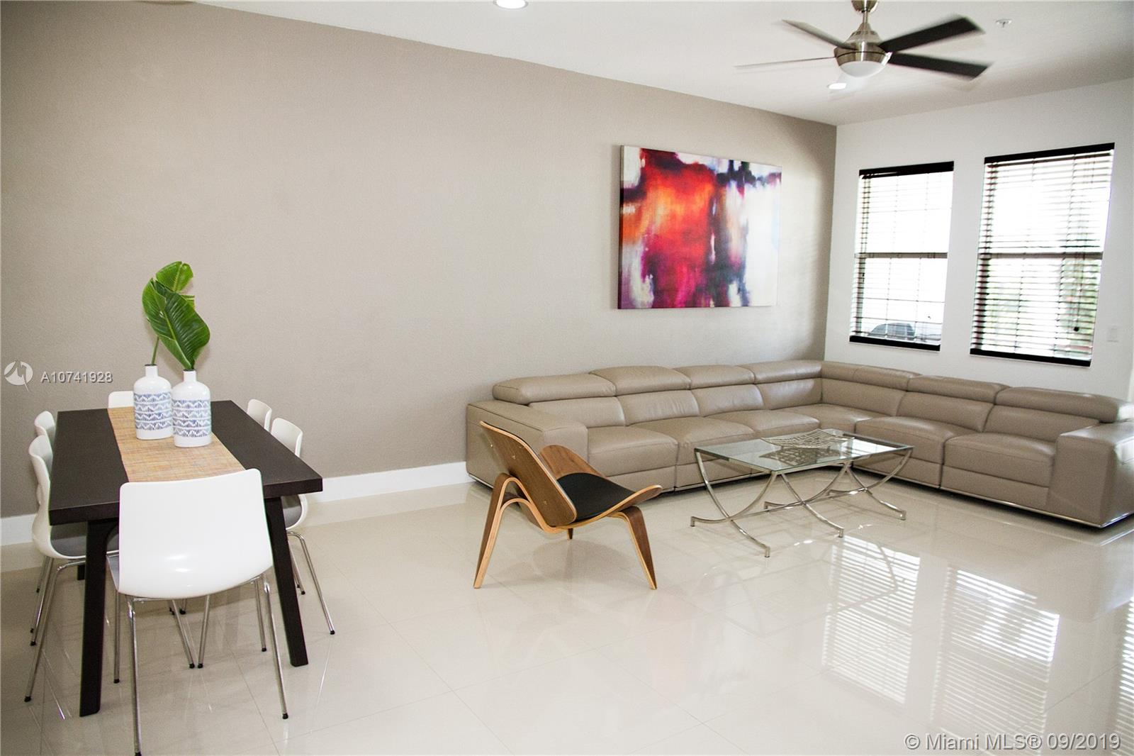 Beautiful three level fully upgraded with modern accents Townhouse, located in a gated community with controlled entrances and security. Bright and spacious Living Room, open kitchen with wood cabinetry, granite countertops and daily breakfast nook that can be used as a home office station. New and recently installed modern design doors. High Impact Windows and Doors. Tile and contemporary laminated flooring. This gem features 3 bedrooms, 3.5 bathrooms and 2 cars garage with plenty of common parking spaces. Community pool, fitness center, party room, children's playground and beautiful jogging paths around the lake.