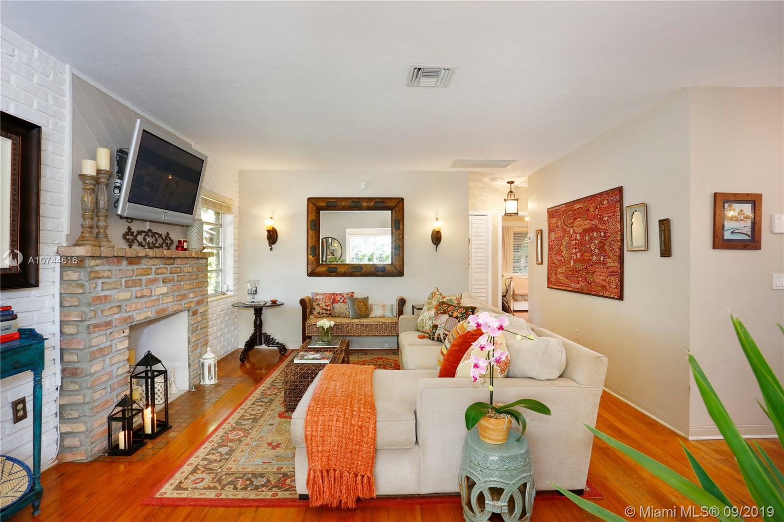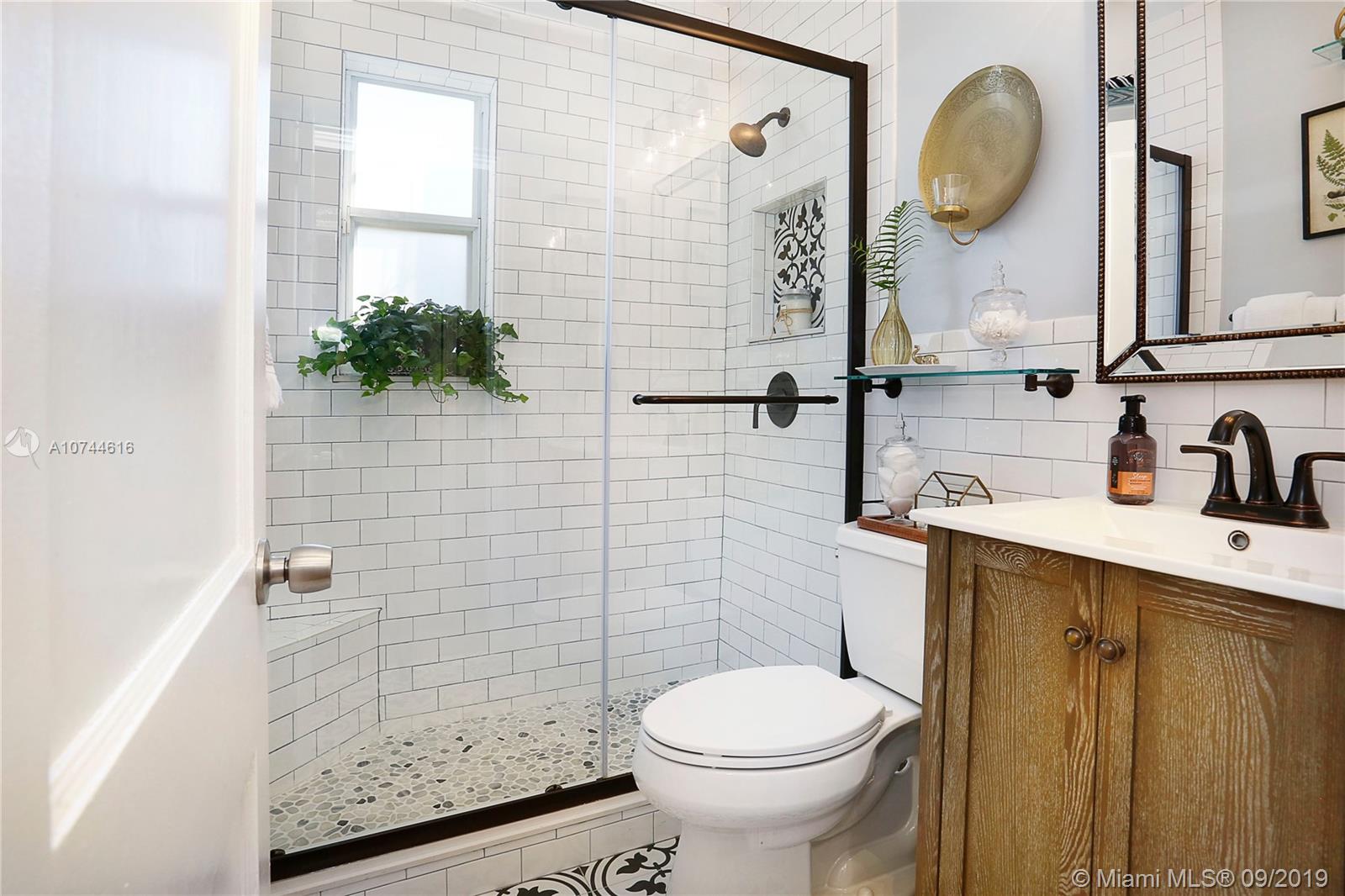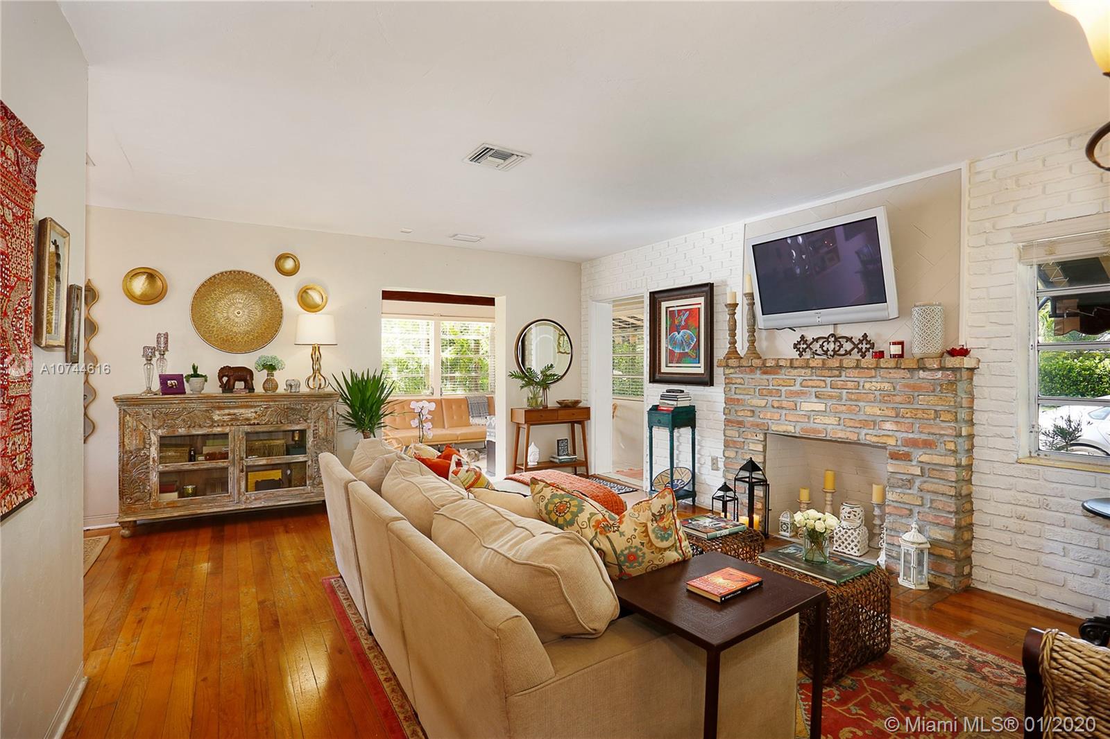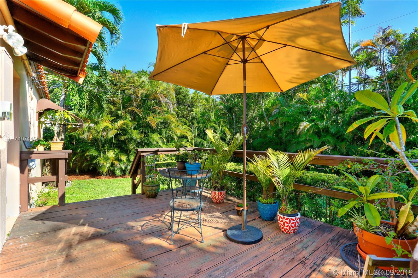 Back on market due to buyer's financing. Get another chance at this sunny Gables home, filled with great design choices, a beautiful renovated kitchen and bath. Custom cabinets, SS appliances, smooth cook top range w/microwave and conventional oven, granite counters. Kitchen opens to back deck. Closets have been maximized and customized! Lovely lighting fixtures throughout. Spacious living room, fireplace and sunroom/den with open beam ceiling. Glass enclosed shower. Hardwood floors. Laundry room. Oversized, private yard, front porch, spacious driveway, lush landscaping and mature trees. Municipal water and sewer. Amazing location that checks off every box: lovely tree-lined street, walking distance to Miracle Mile, fine dining/shopping just minutes from your door. Welcome Home!