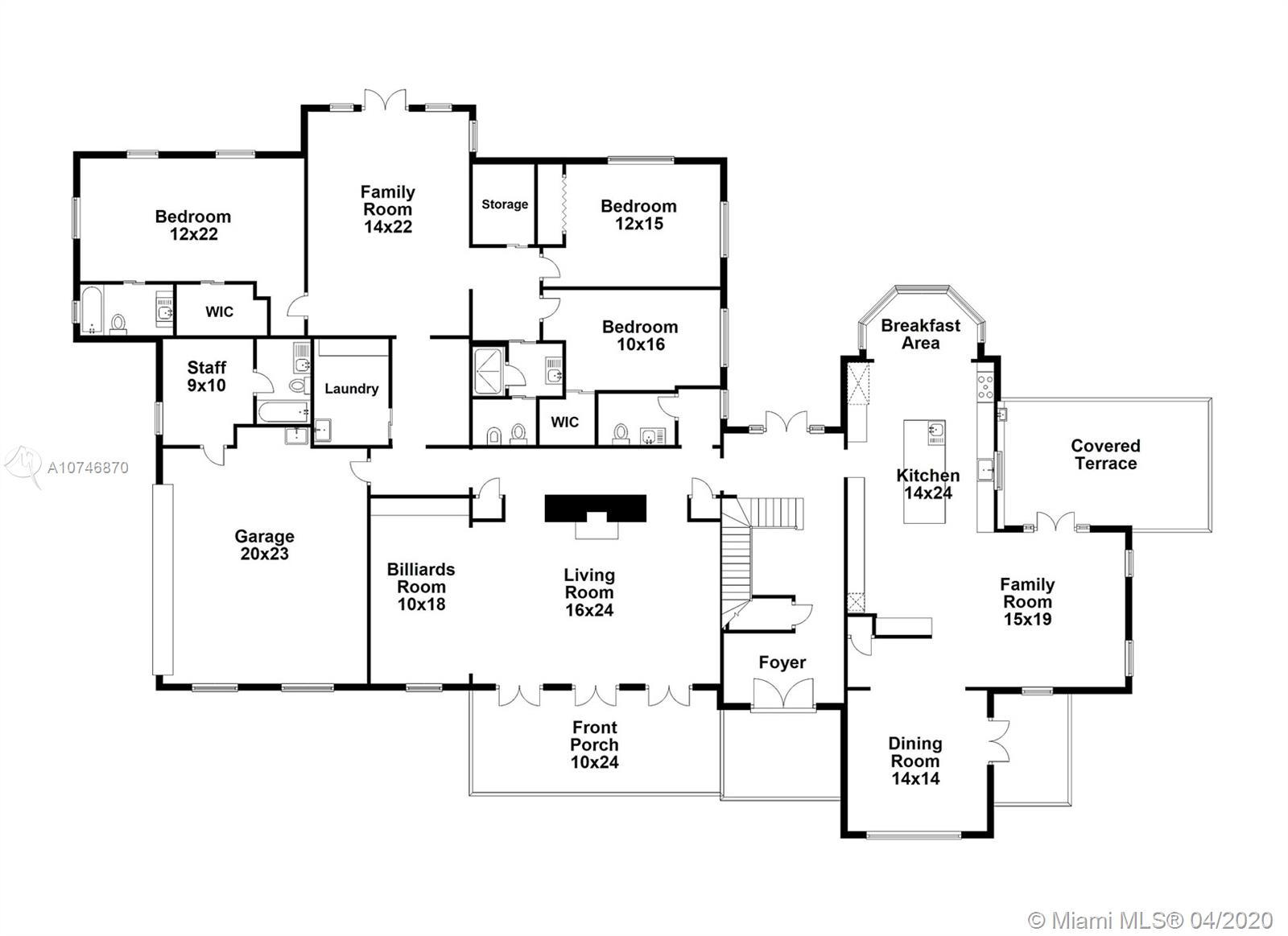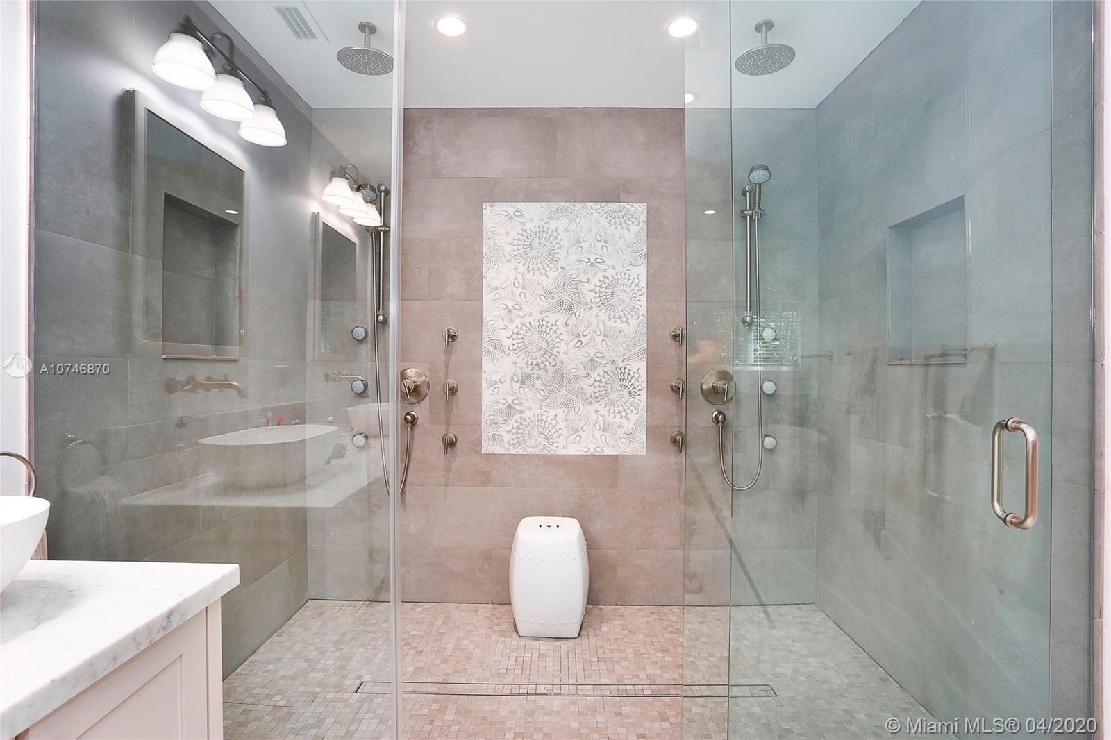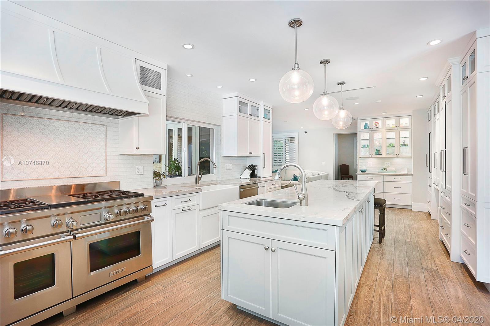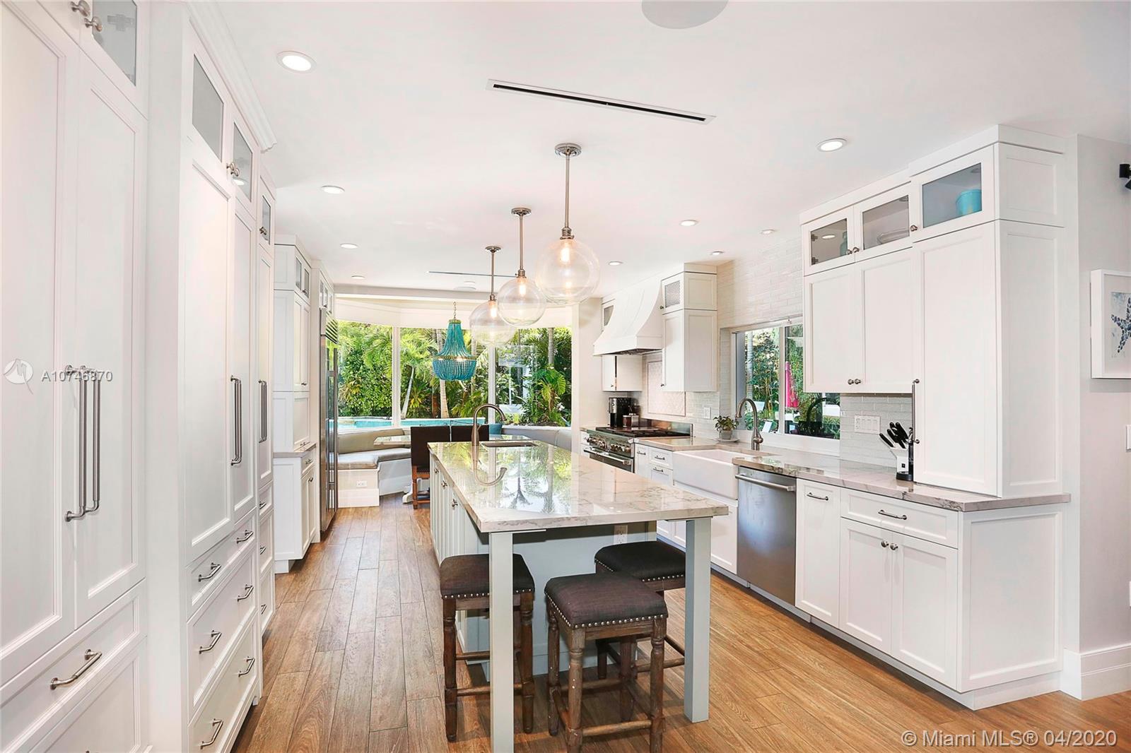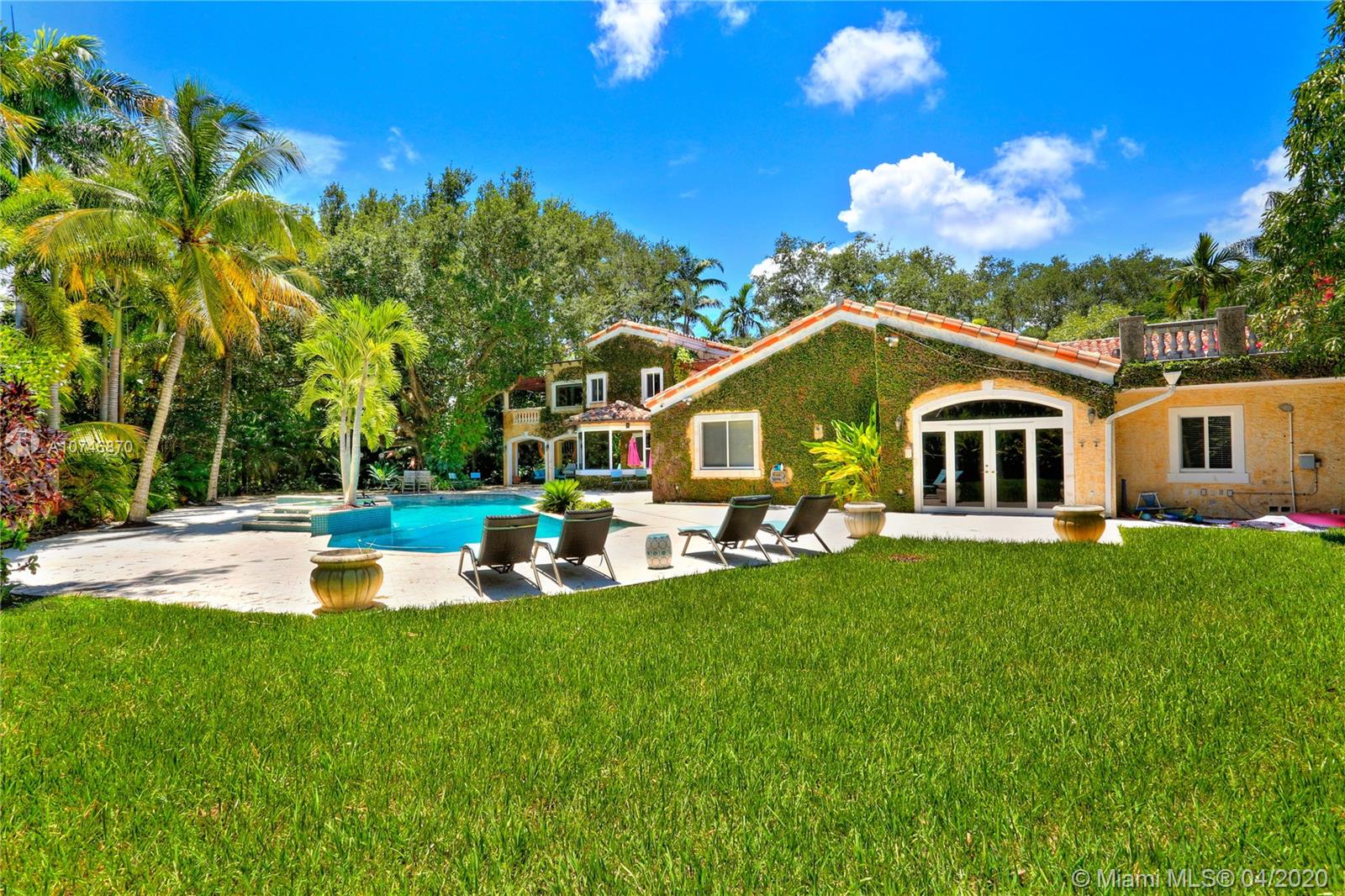 Exquisitely remodeled Italian Villa on beautiful Pinecrest corner property. This gorgeous home has been extensively renovated with new Italian porcelain tile throughout, impact windows, immense & updated open kitchen with top of the line appliances, & glass-enclosed breakfast nook overlooking the lush backyard & pool. Grand living room has high vaulted ceilings, fireplace, & French doors that open to updated front patio, & game room with built-ins. Bright family room & formal dining room have covered terraces. Downstairs, 3 bedrooms, 2.5 baths, 2nd family room, & new laundry room. Upstairs, a 4th bedroom with new bath, office & balcony, & a spectacular master suite with sitting room, balcony, & new bath with oversized dual shower, sleek tub & walk-in closet. 2-car garage & maid’s room.