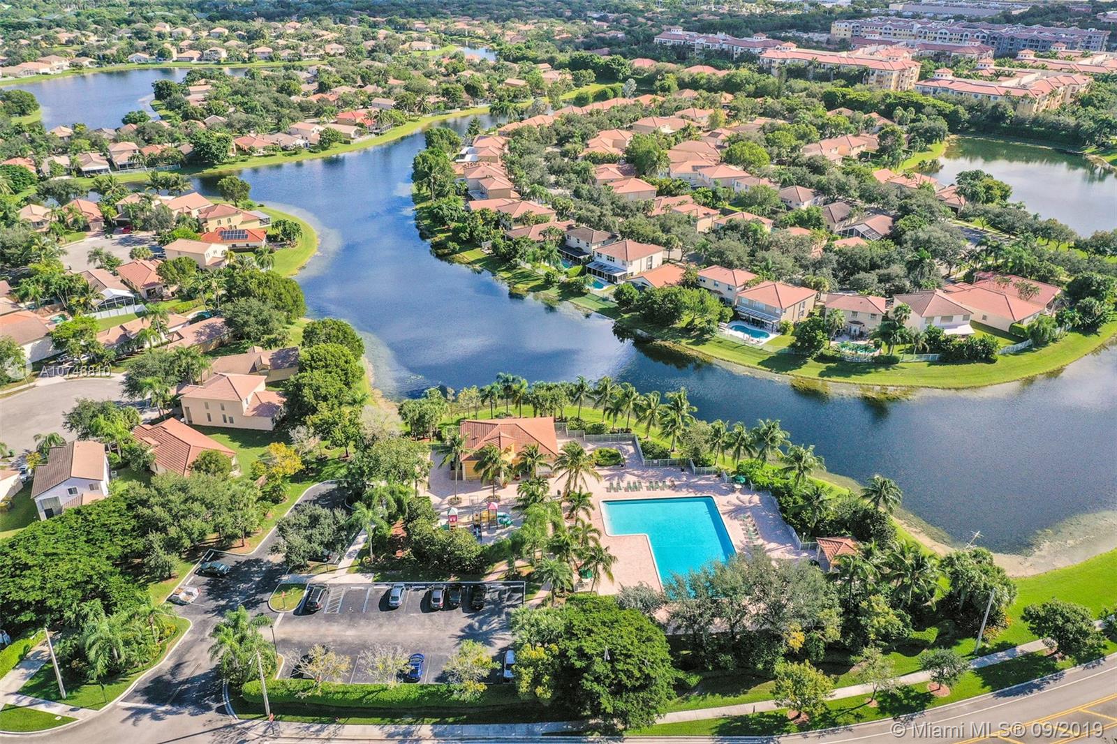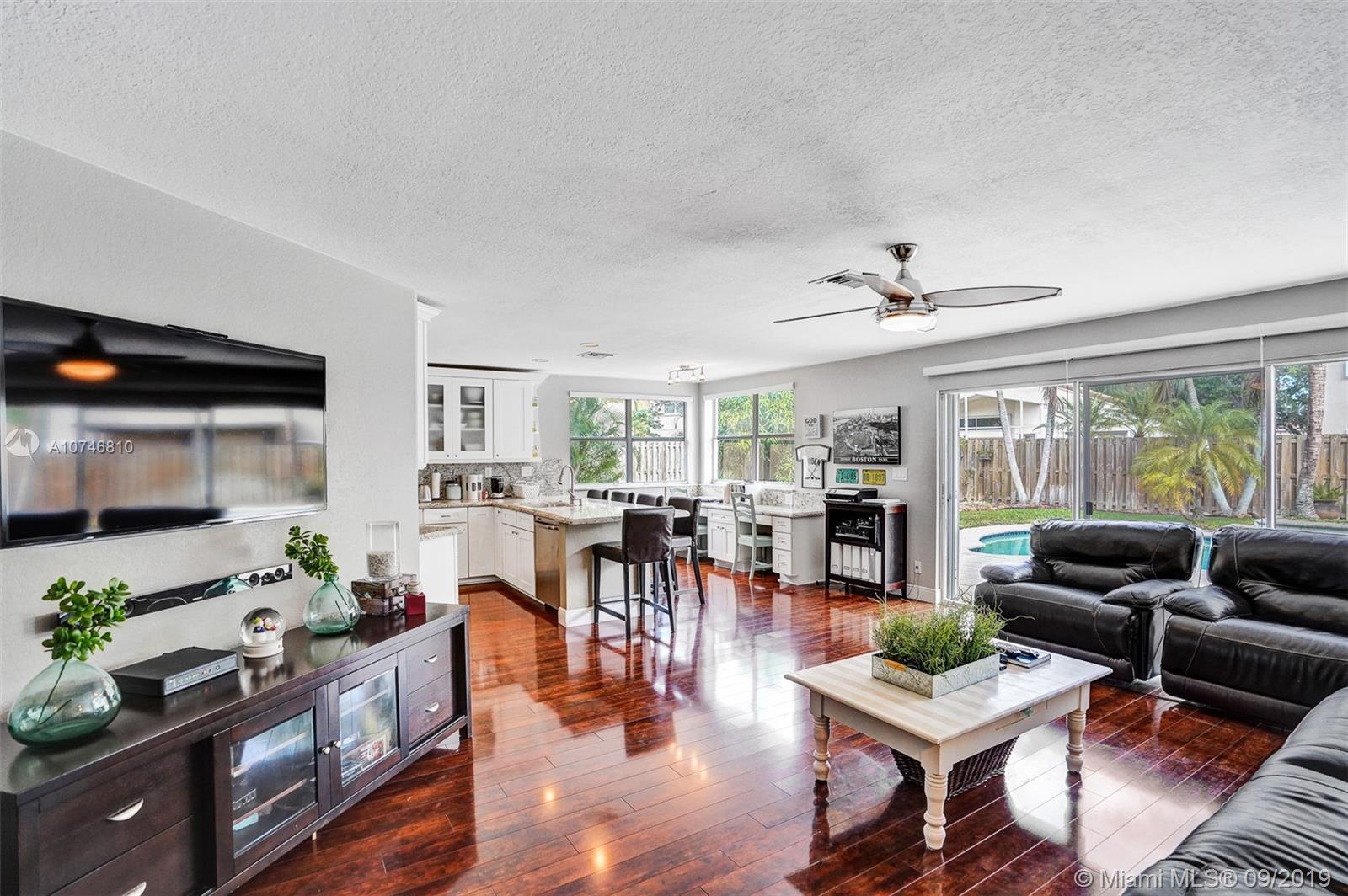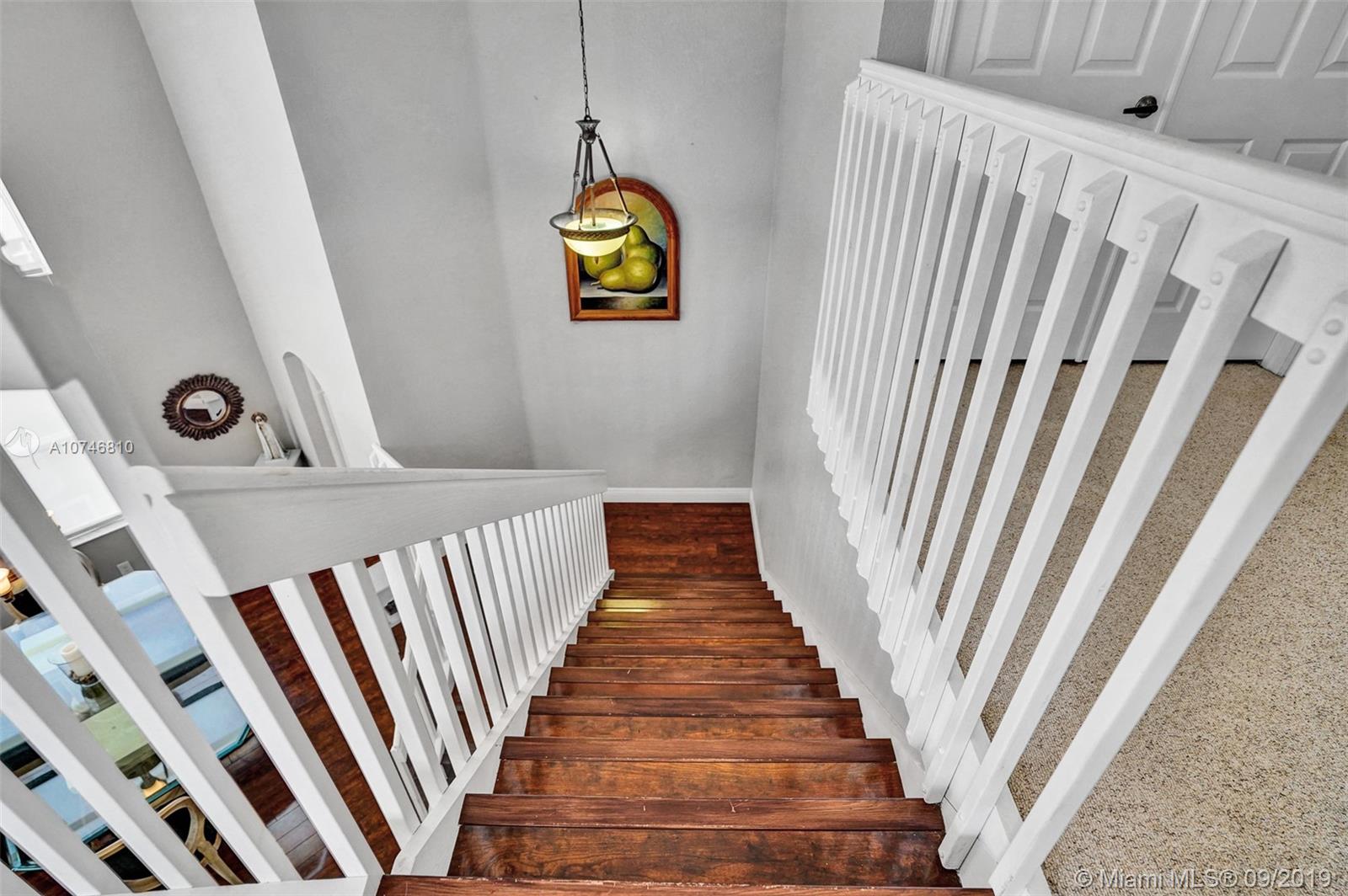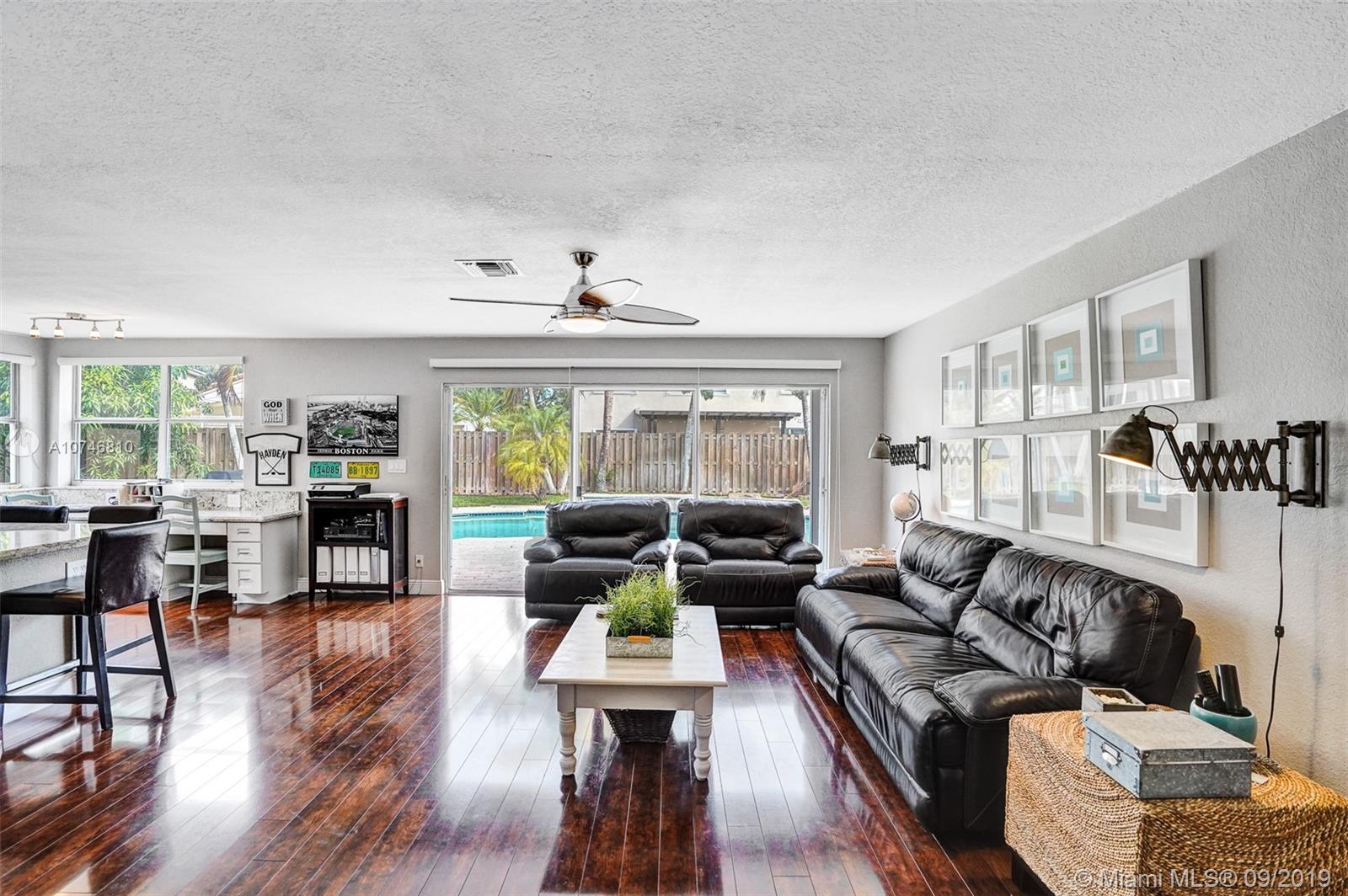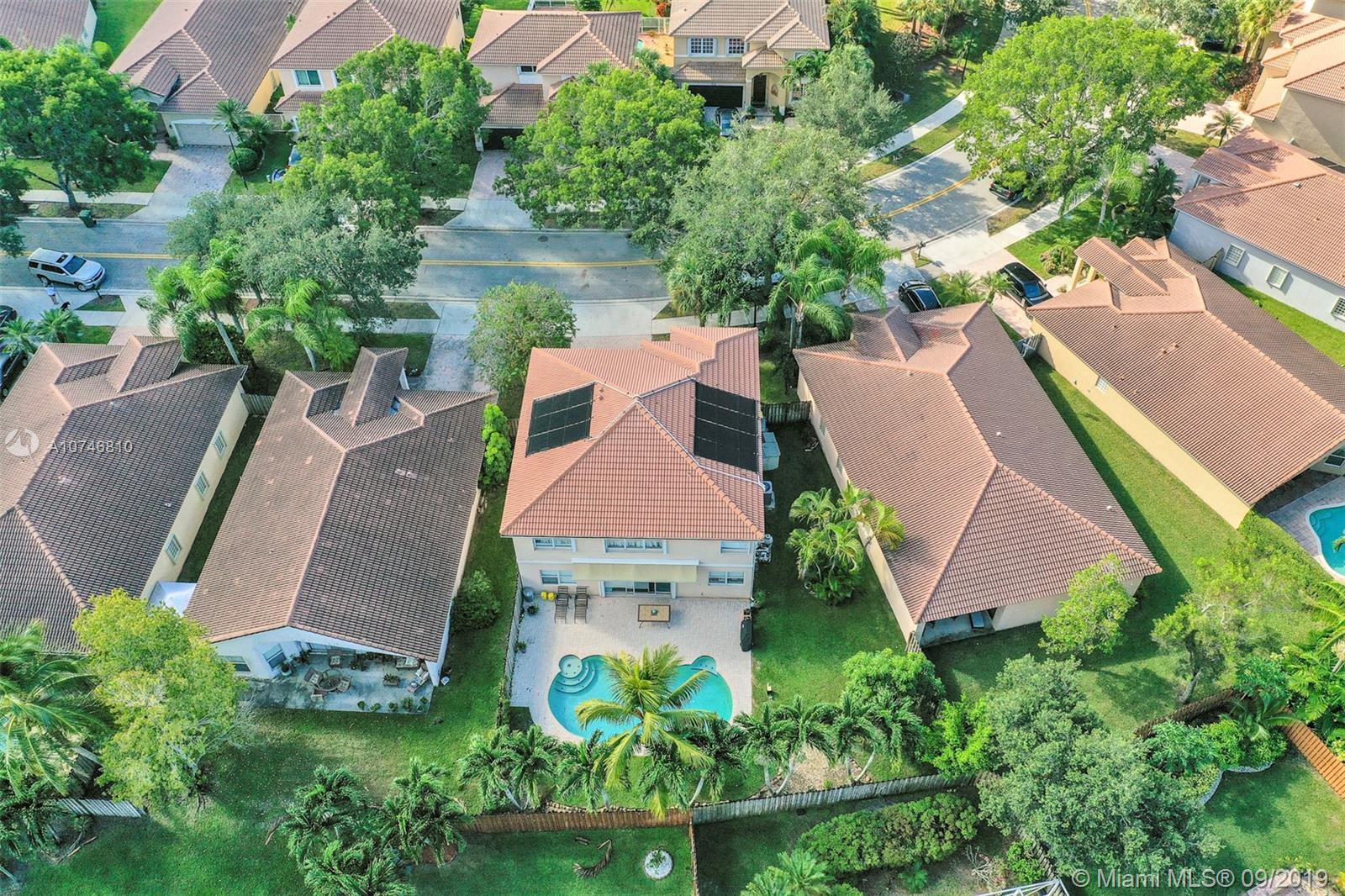 Unique & spacious floor-plan featuring high ceilings, bright interior & all laminate wood floors downstairs. Updated kitchen with high-quality cabinetry, pull-out shelves, stainless appliances & stone counters with seating for 5. Custom work space adjacent to kitchen & family room, downstairs bedroom & fully updated bath. 2nd floor boasts a large & open den/office space . Updated master bath, 3rd & 4th Bedrooms share a Jack & Jill bath. Relax in your private & fenced back yard oasis with solar heated pool and greenery, how about your own Mango tree? Storm protection throughout. Enjoy a care-free lifestyle with lawn care, sprinkler system, HD cable service, internet and ADT alarm monitoring service included. Emerald Estates is guard gated & ideally located, next to parks, shopping & schools