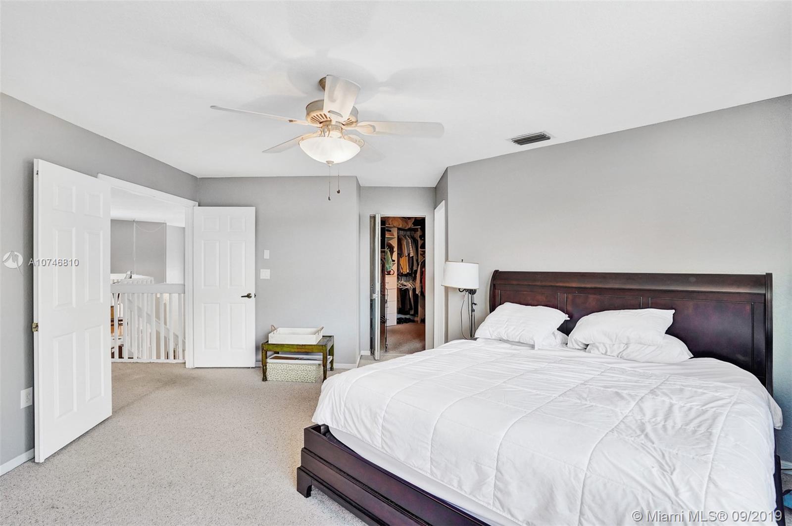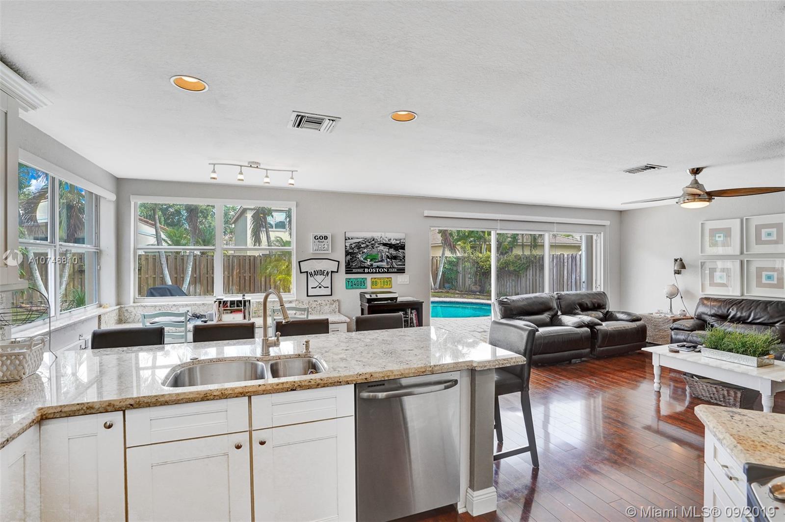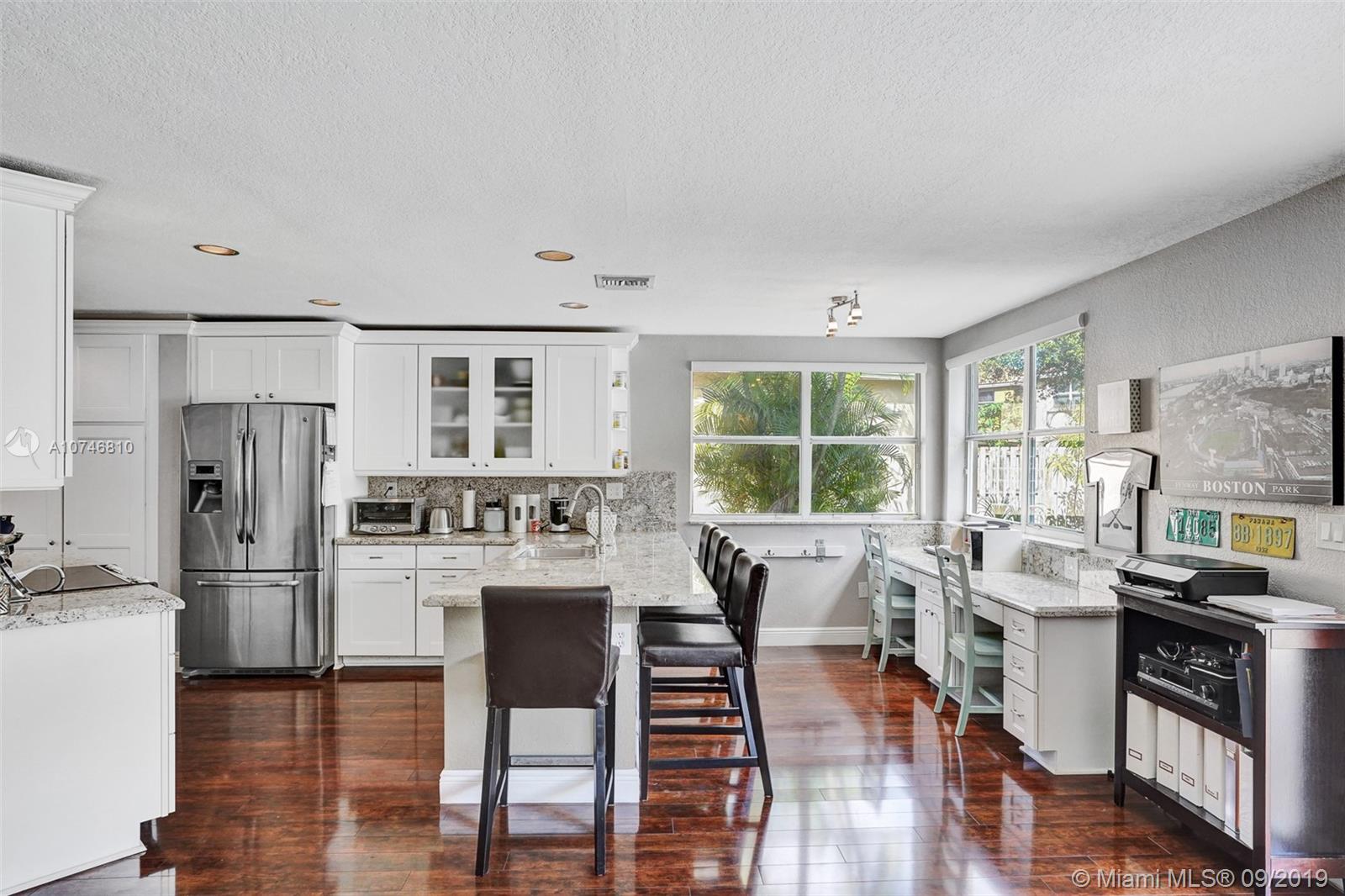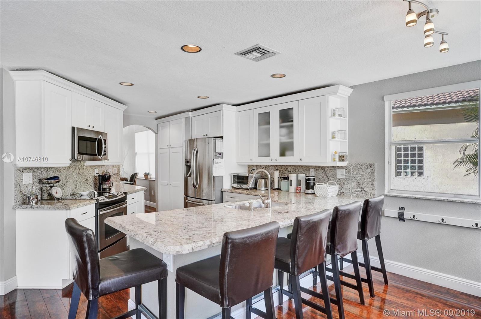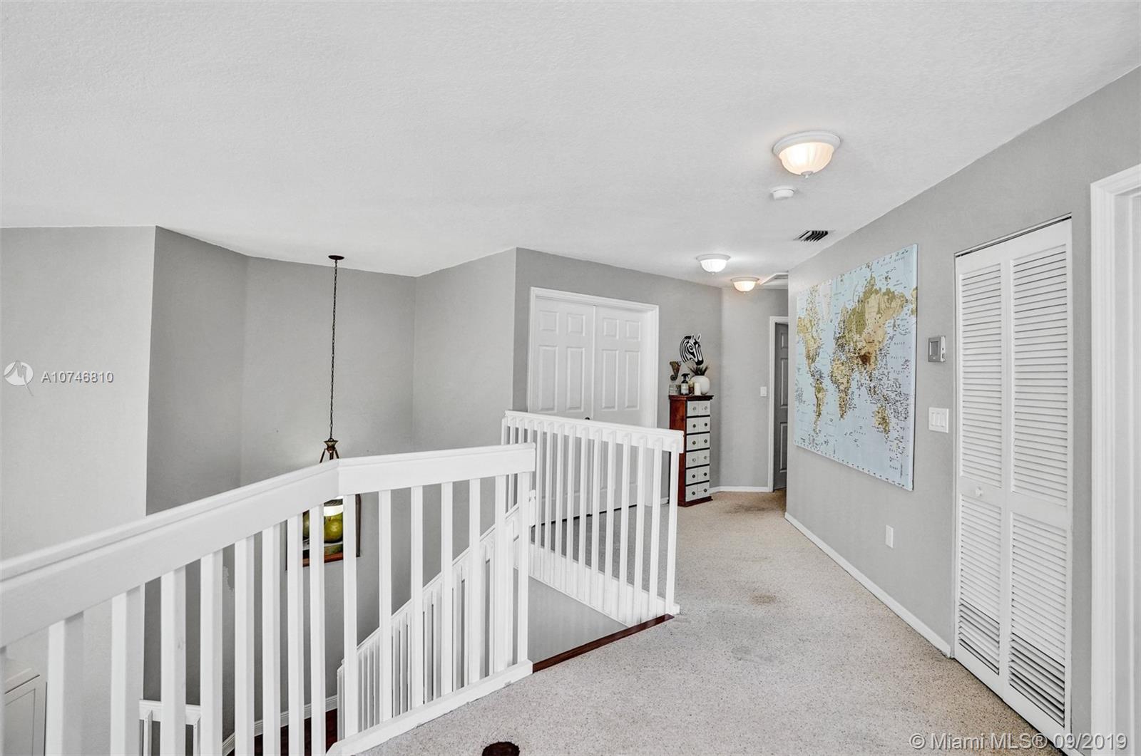 Unique & spacious floor-plan featuring high ceilings, bright interior & all laminate wood floors downstairs. Updated kitchen with high-quality cabinetry, pull-out shelves, stainless appliances & stone counters with seating for 5. Custom work space adjacent to kitchen & family room, downstairs bedroom & fully updated bath. 2nd floor boasts a large & open den/office space . Updated master bath, 3rd & 4th Bedrooms share a Jack & Jill bath. Relax in your private & fenced back yard oasis with solar heated pool and greenery, how about your own Mango tree? Storm protection throughout. Enjoy a care-free lifestyle with lawn care, sprinkler system, HD cable service, internet and ADT alarm monitoring service included. Emerald Estates is guard gated & ideally located, next to parks, shopping & schools