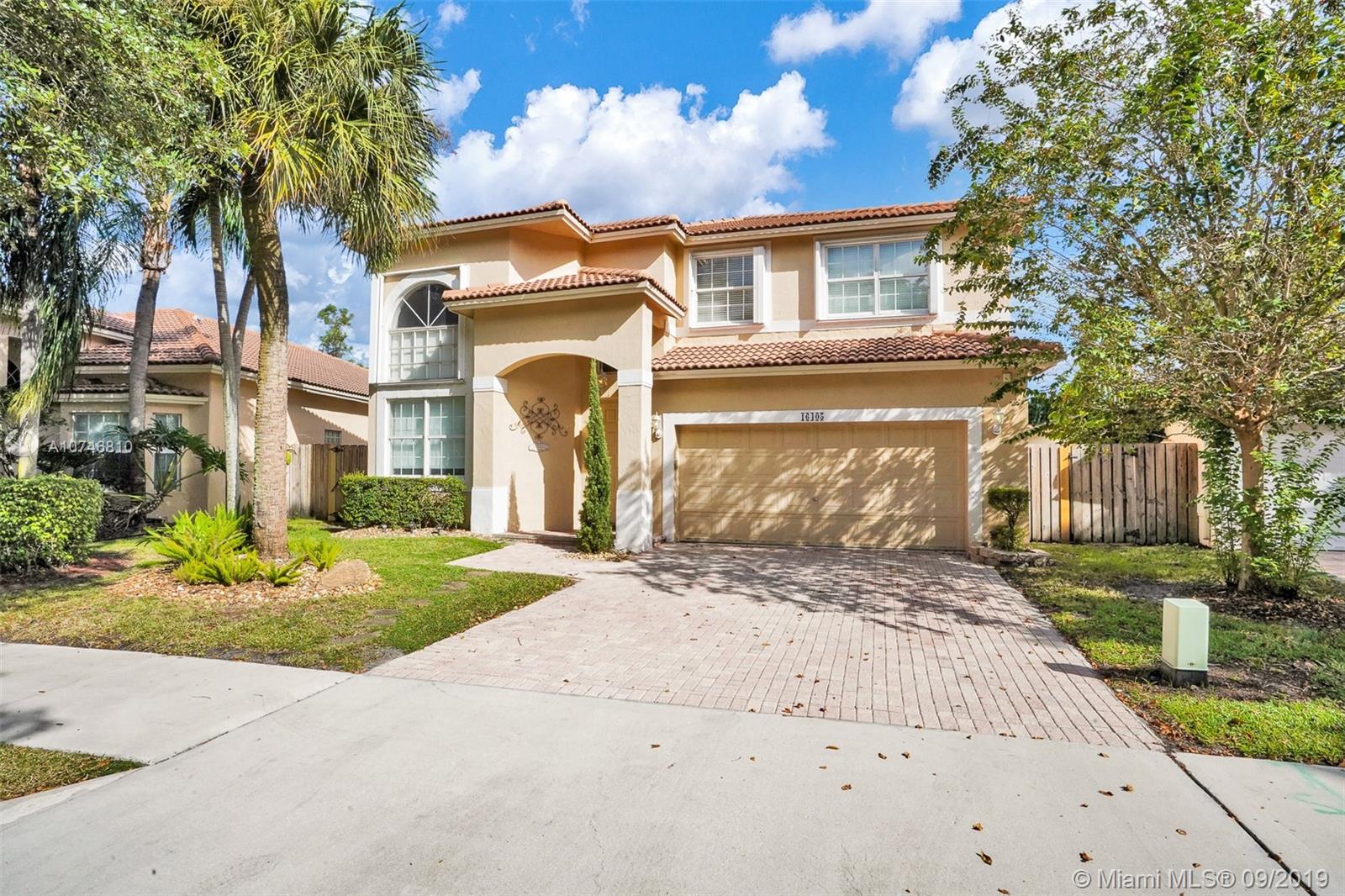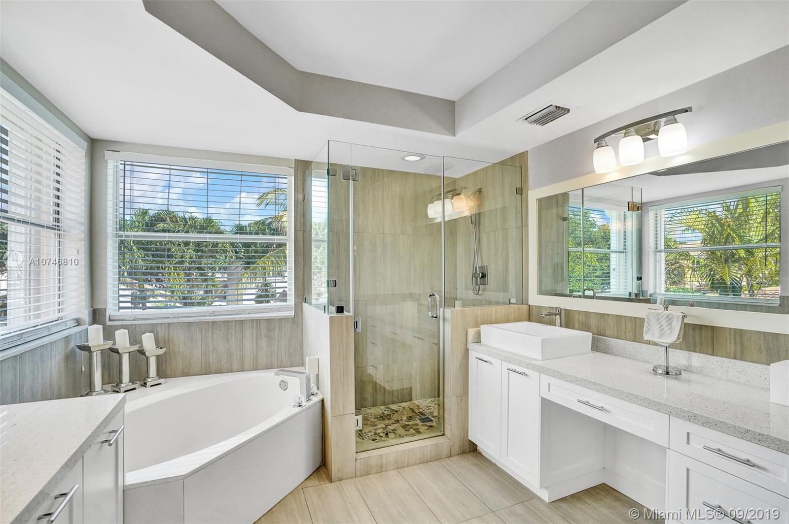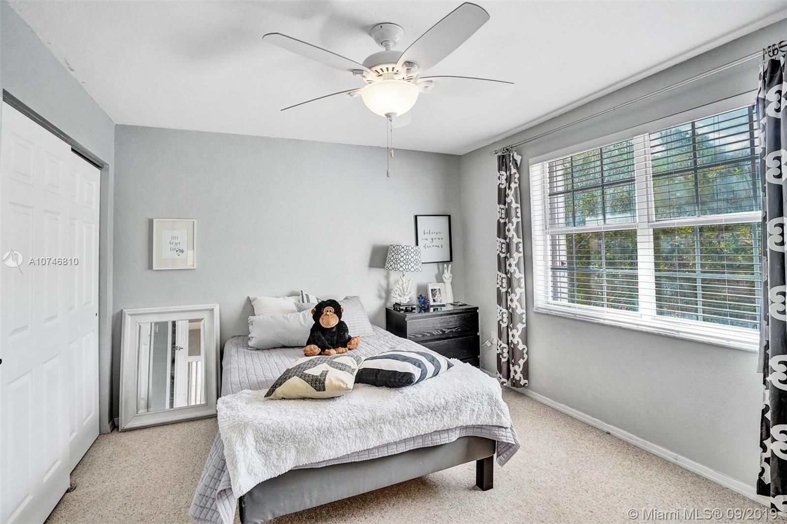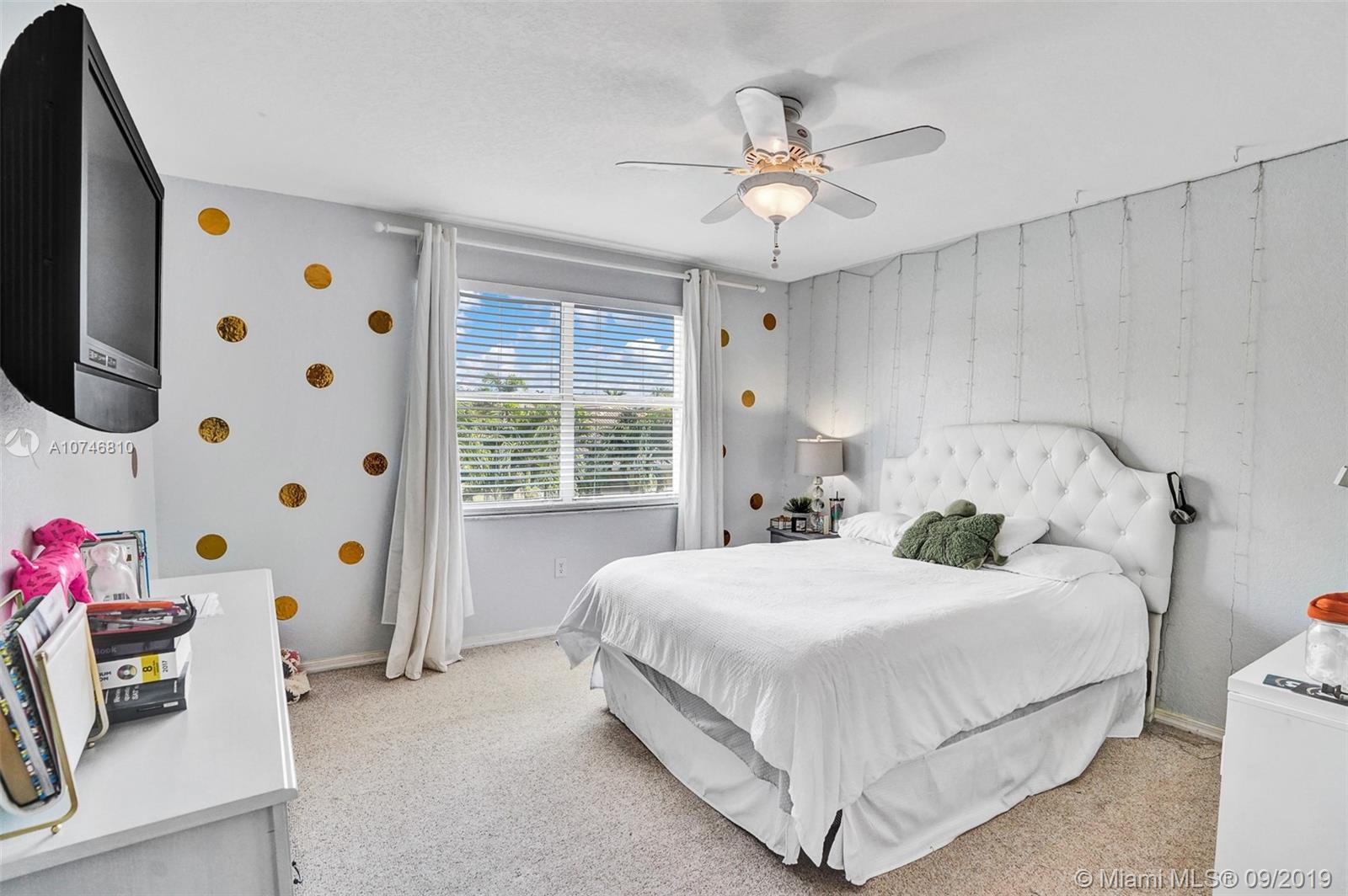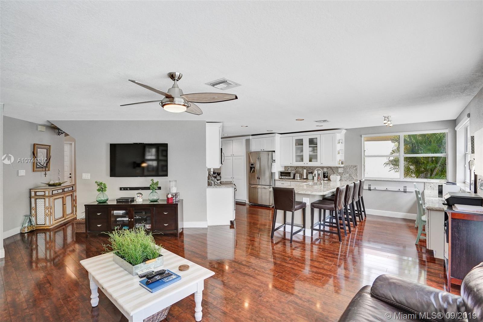 Unique & spacious floor-plan featuring high ceilings, bright interior & all laminate wood floors downstairs. Updated kitchen with high-quality cabinetry, pull-out shelves, stainless appliances & stone counters with seating for 5. Custom work space adjacent to kitchen & family room, downstairs bedroom & fully updated bath. 2nd floor boasts a large & open den/office space . Updated master bath, 3rd & 4th Bedrooms share a Jack & Jill bath. Relax in your private & fenced back yard oasis with solar heated pool and greenery, how about your own Mango tree? Storm protection throughout. Enjoy a care-free lifestyle with lawn care, sprinkler system, HD cable service, internet and ADT alarm monitoring service included. Emerald Estates is guard gated & ideally located, next to parks, shopping & schools