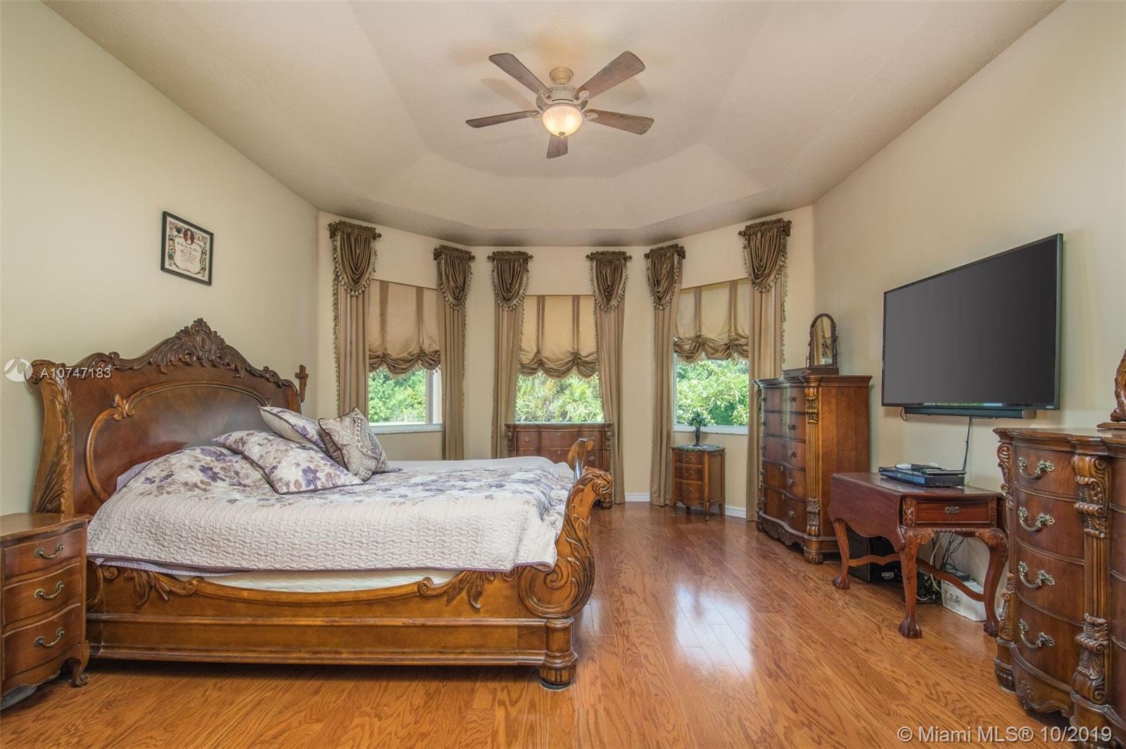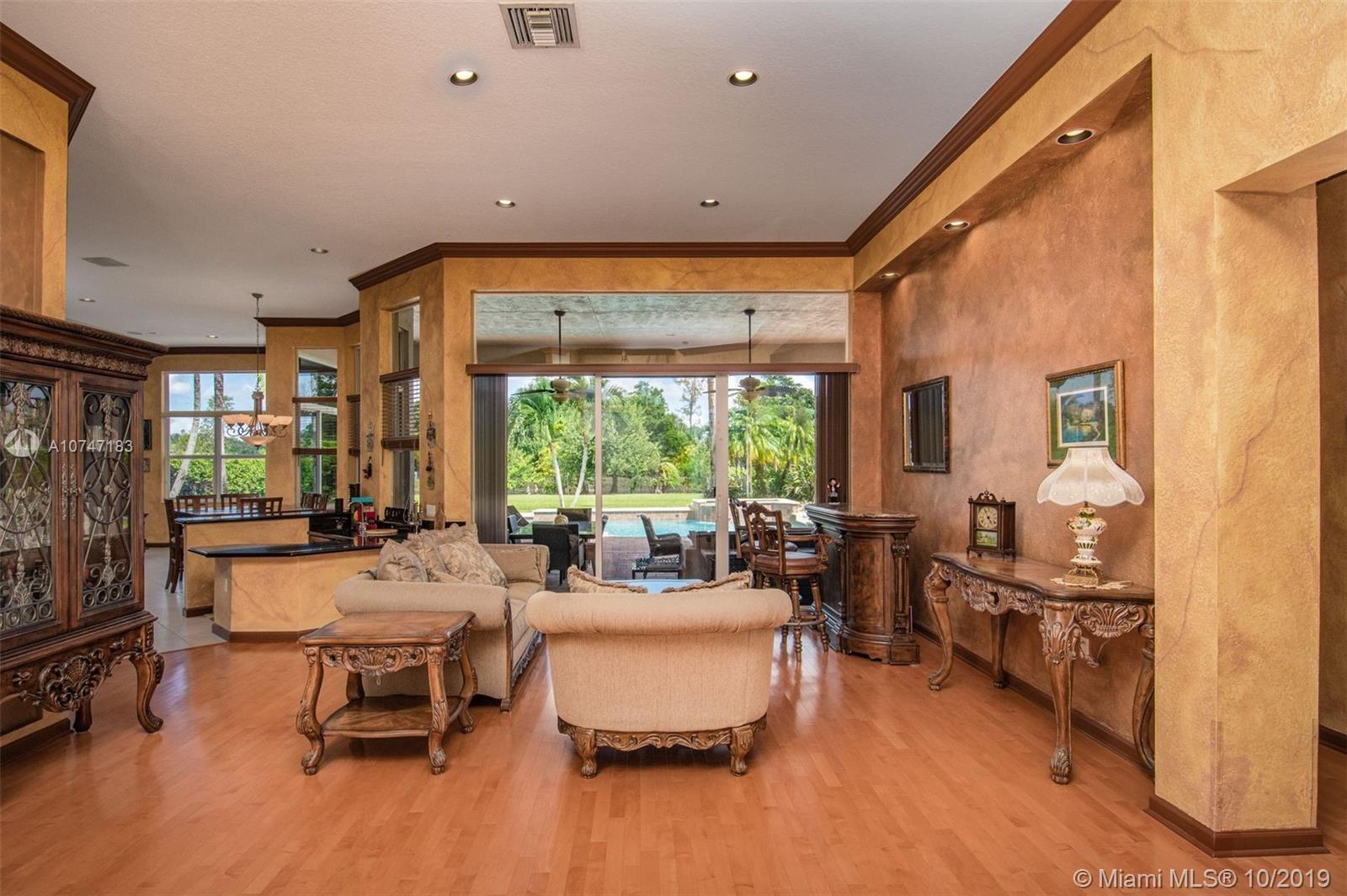 Rare find in exclusive 24 hour guard gated Imagination Farms! This Gramercy model is a true 5 bedroom + a convertible den/office! Situated on an enormous private full acre with fruit trees, no neighbors behind. Over-looks wide canal, Davie Equestrian Trail runs along the back of the property offering fabulous tranquil views. Special features include real hardwood floors & neutral tile, crown moldings, closet organizers, built-ins & impact windows. Enormous master suite has tray ceiling, his/hers walk-in closets, luxury bath. Updated kitchen has wood cabinets, granite counters, walk-in pantry, island, oversized snack bar. Separate 4 bedroom child's wing. 3 newer A/C's. Gorgeous oversized pool has lovely water-fall & luxurious spa, recently resurfaced, new pump, extended patio. A+ schools.
