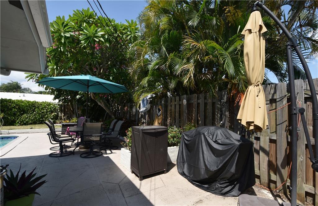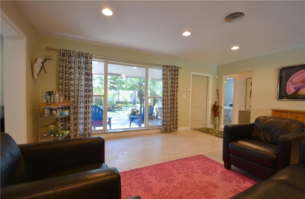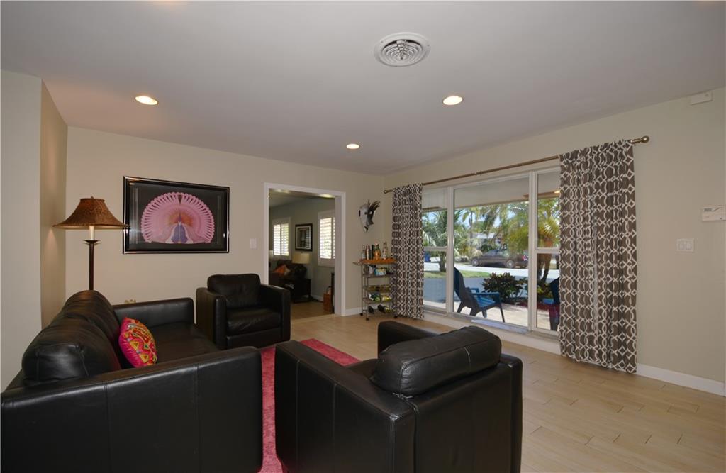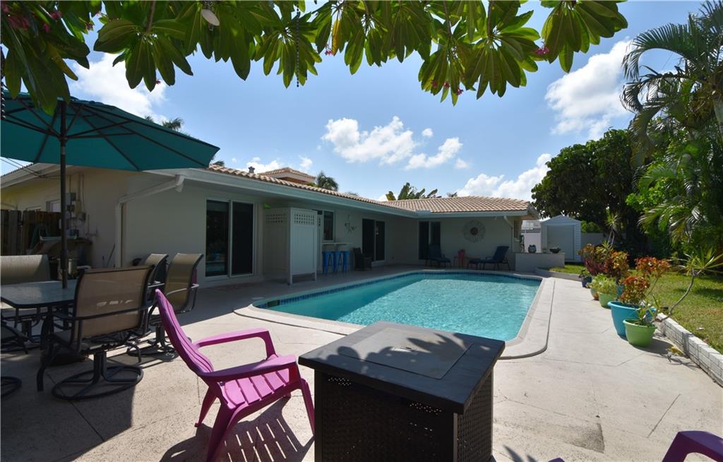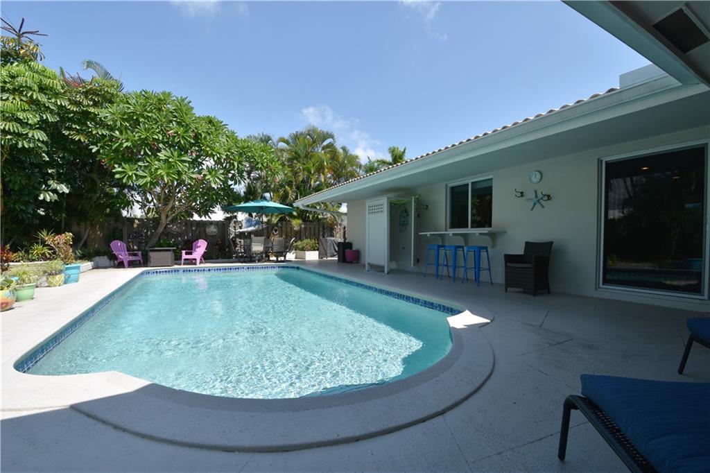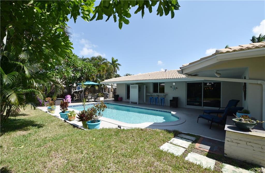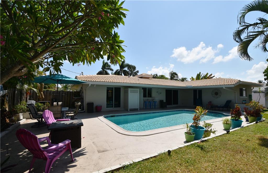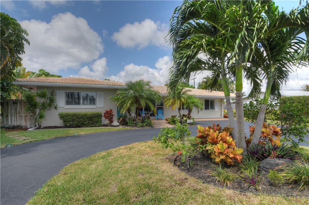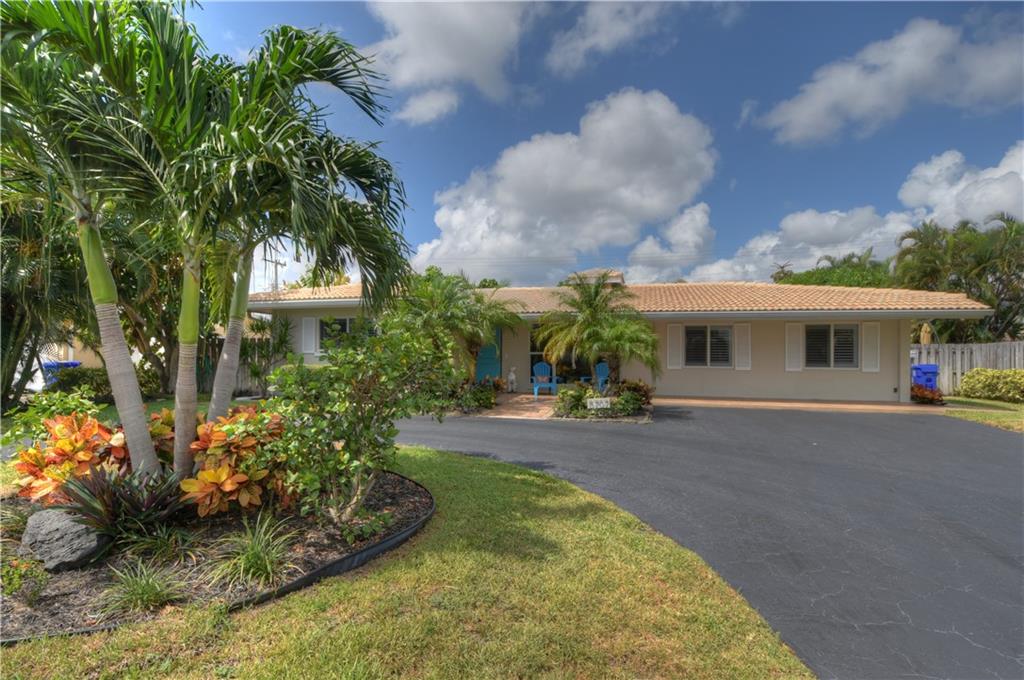 A picture perfect house! Great curb appeal! Great interior lot on a quiet street in picturesque Coral Ridge Isles. Garage was converted into a fantastic family rm which is so useful! Everything has been updated. Impact windows & doors, updated eat-in kitchen, new SS appliances, updates bathrooms, new tile floors, plantation shutters throughout, interior freshly painted, private tropical backyard with pool, entertaining & grilling area and outdoor shower! Circular driveway & quaint front porch!
