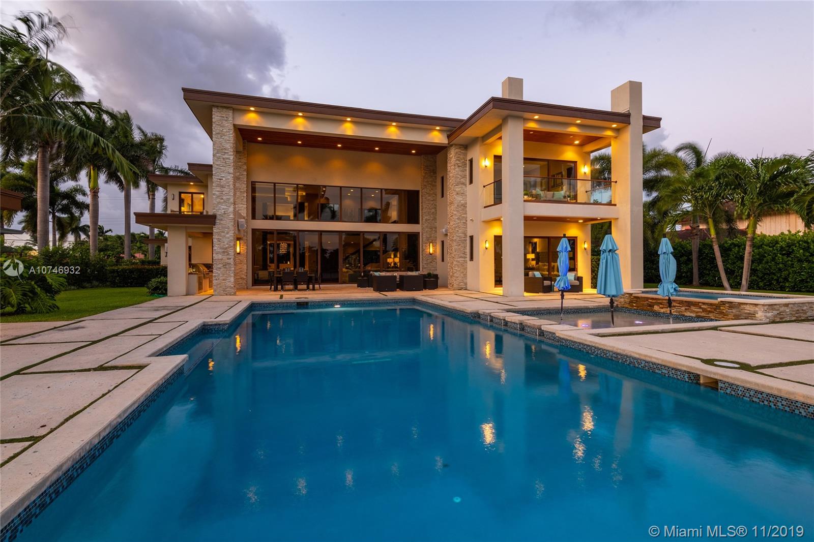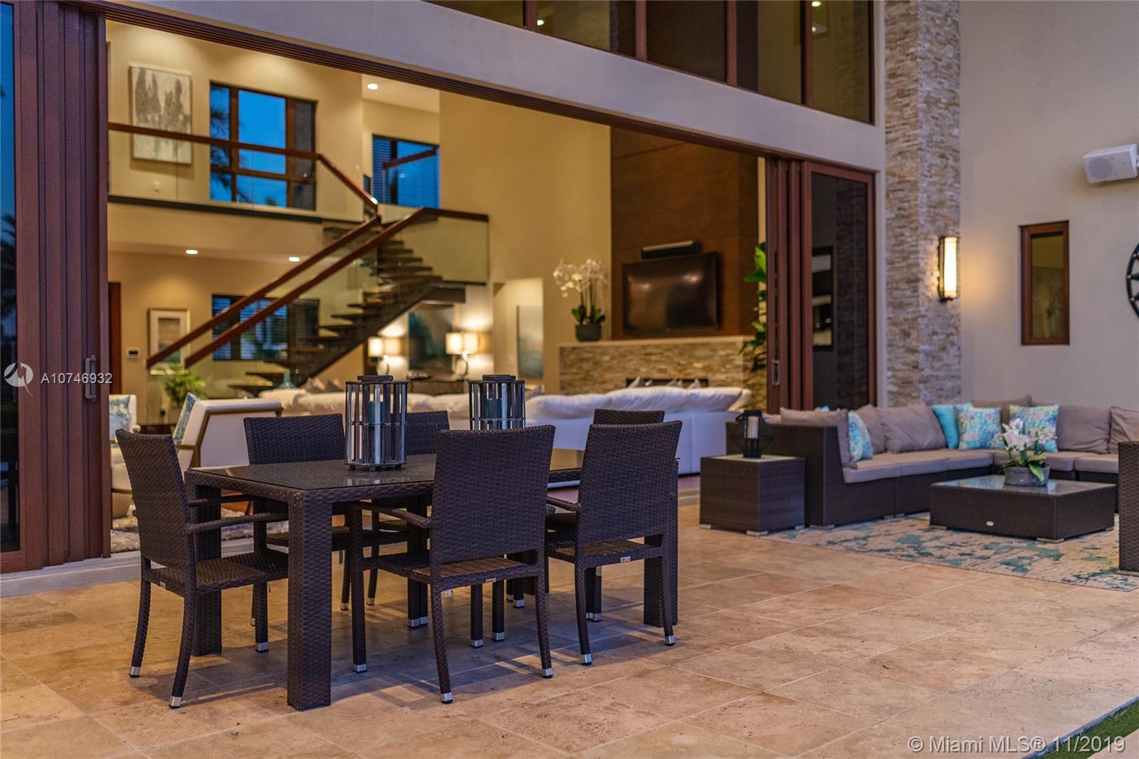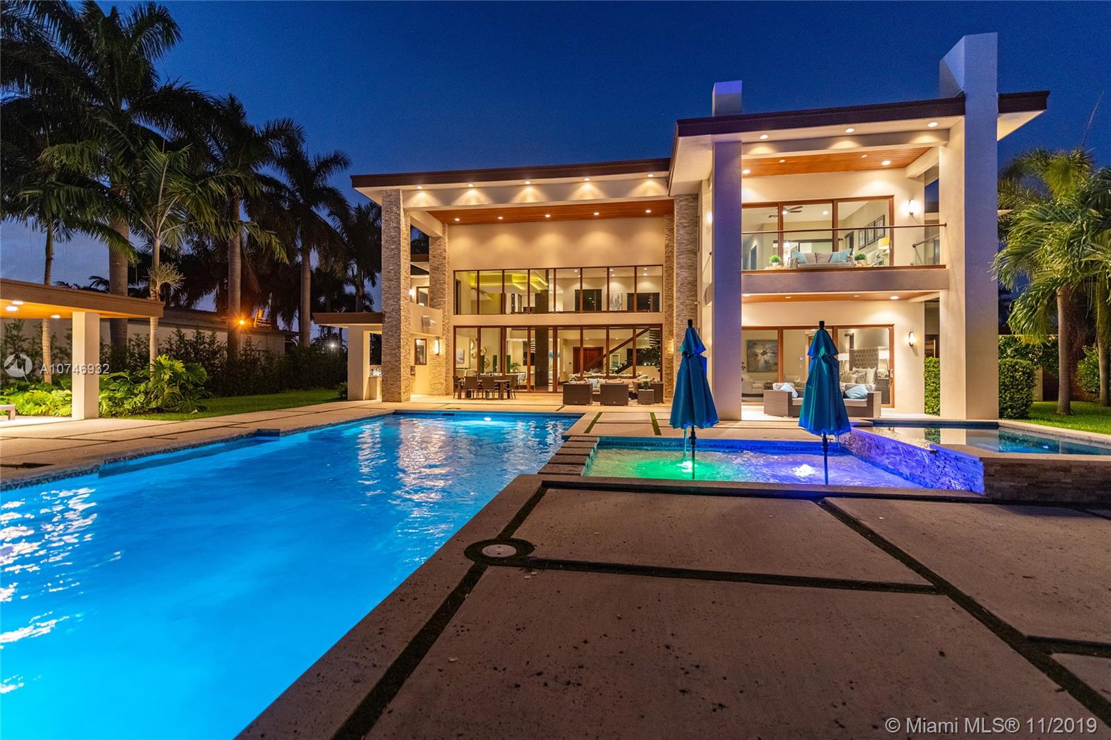 Tropical Modern Estate situated between Miami & Ft Laud, totaling approx 8k sq. ft., 6 bedrms/6.5 unique baths w/wide water views in every room & resort-style pool w/25k lot. No fixed bridges, large dock w/20k lbs boat lift & 160' on water. Summer kitchen, large hot tub, tanning shelf, & fire pit, full bar, gourmet kitchen; spa master bath,2 water closets & multi-person shower. Bedrooms have full en-suite baths & 6th bedrm is attached via covered walkway & gym/office/in-law suite. Windows & sliders are hurricane-impact & UV protected, the walls are concrete block construction & 2nd story has concrete floor. 5 AC zones, fireplace in living rm & master bdrm & Crestron lighting systm. 3 car garage,ample guest parking in governor’s drivewy. Visit Juana Drago YouTube for Video Tour.