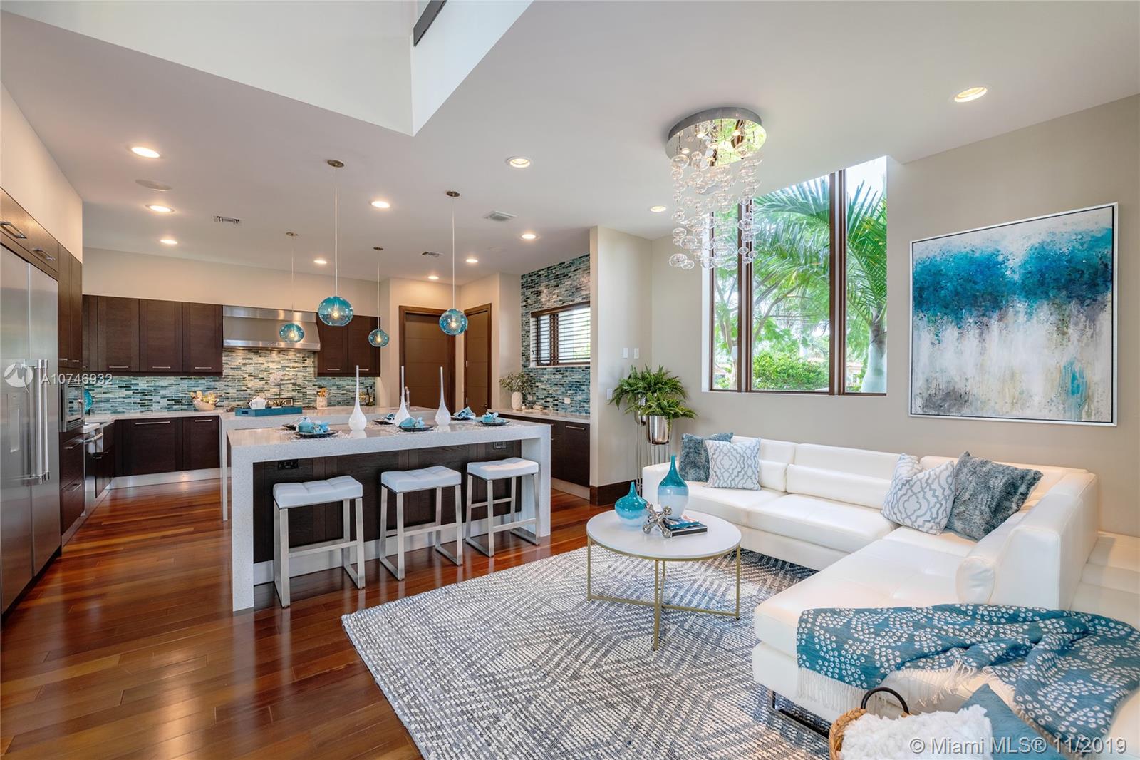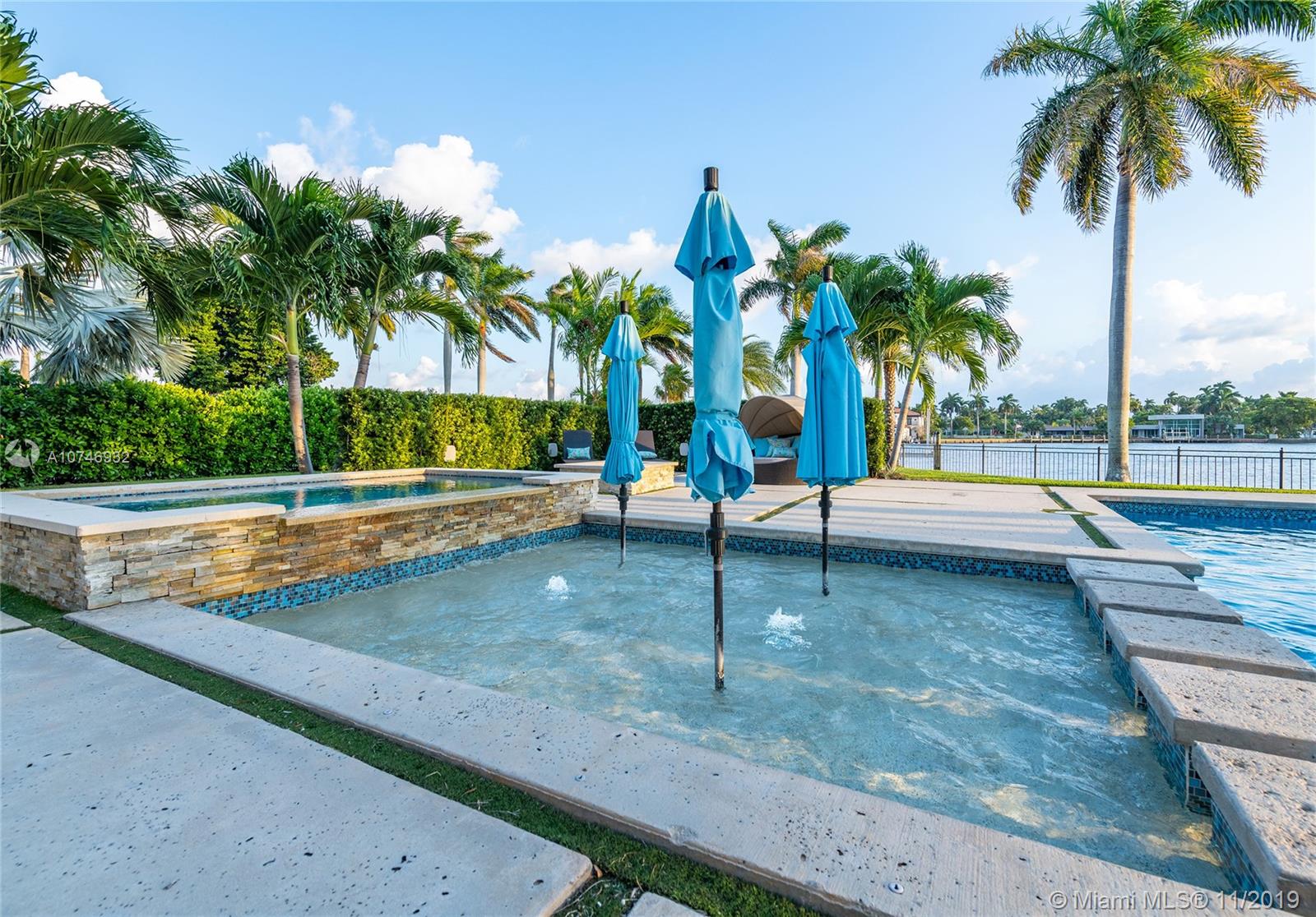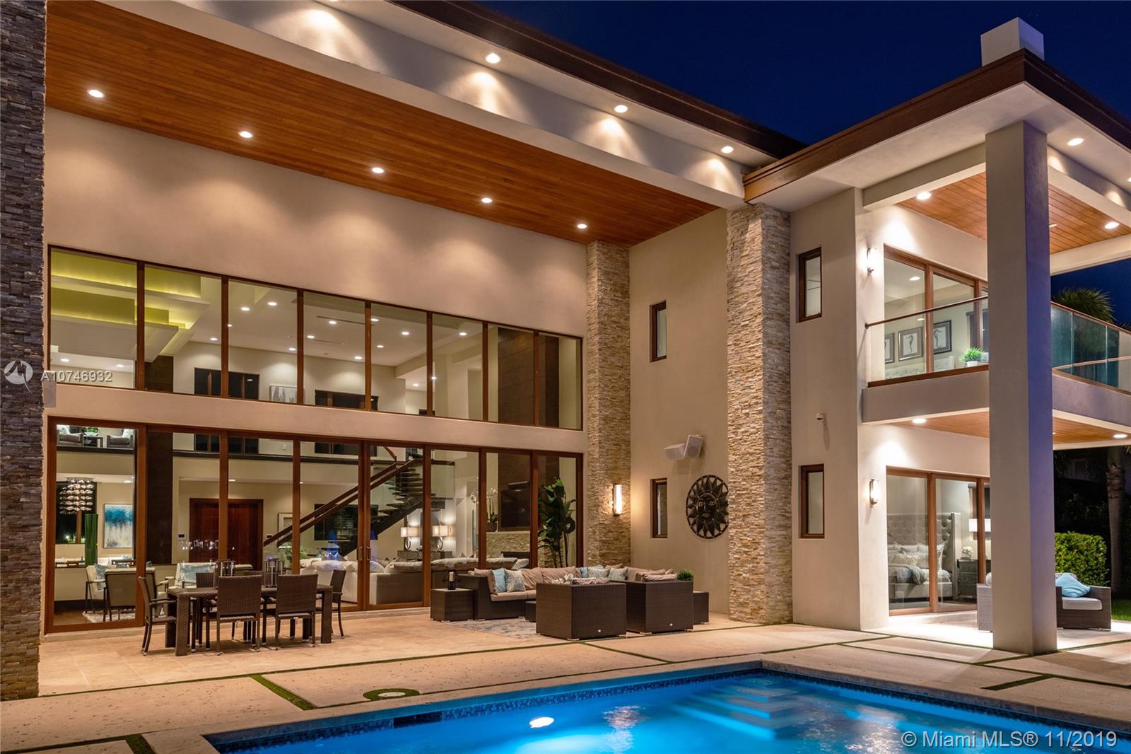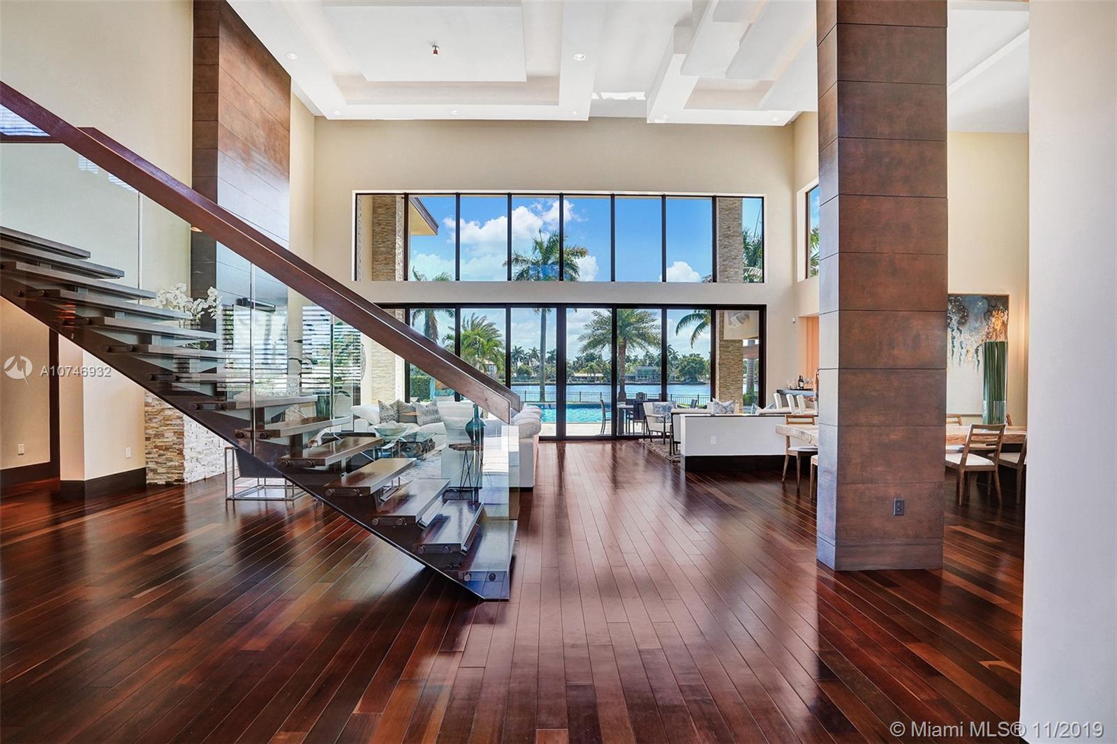 Tropical Modern Estate situated between Miami & Ft Laud, totaling approx 8k sq. ft., 6 bedrms/6.5 unique baths w/wide water views in every room & resort-style pool w/25k lot. No fixed bridges, large dock w/20k lbs boat lift & 160' on water. Summer kitchen, large hot tub, tanning shelf, & fire pit, full bar, gourmet kitchen; spa master bath,2 water closets & multi-person shower. Bedrooms have full en-suite baths & 6th bedrm is attached via covered walkway & gym/office/in-law suite. Windows & sliders are hurricane-impact & UV protected, the walls are concrete block construction & 2nd story has concrete floor. 5 AC zones, fireplace in living rm & master bdrm & Crestron lighting systm. 3 car garage,ample guest parking in governor’s drivewy. Visit Juana Drago YouTube for Video Tour.