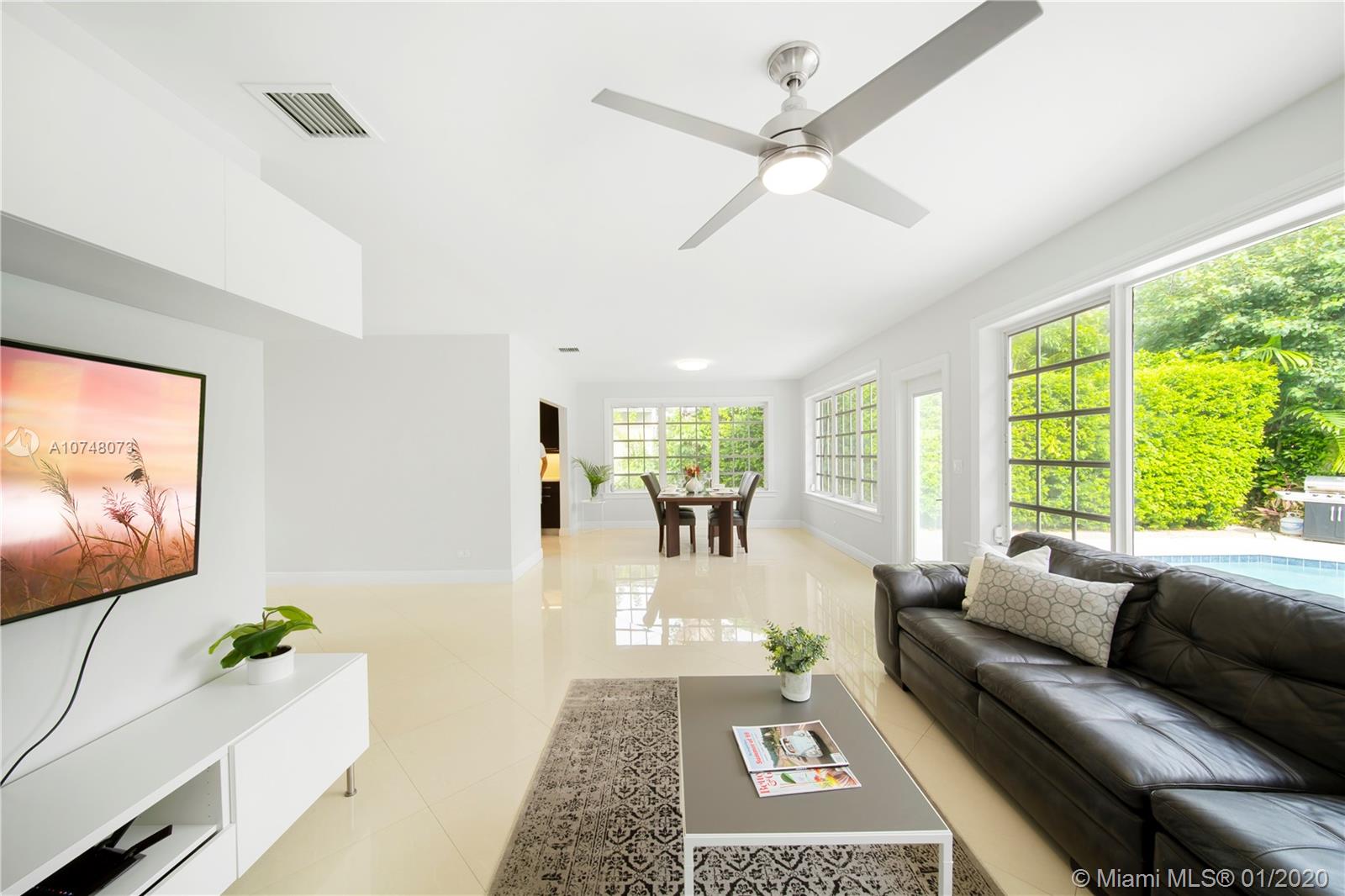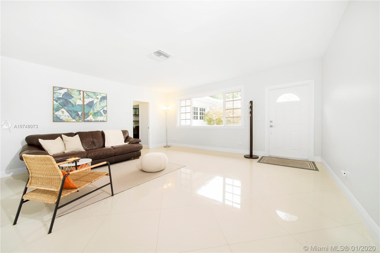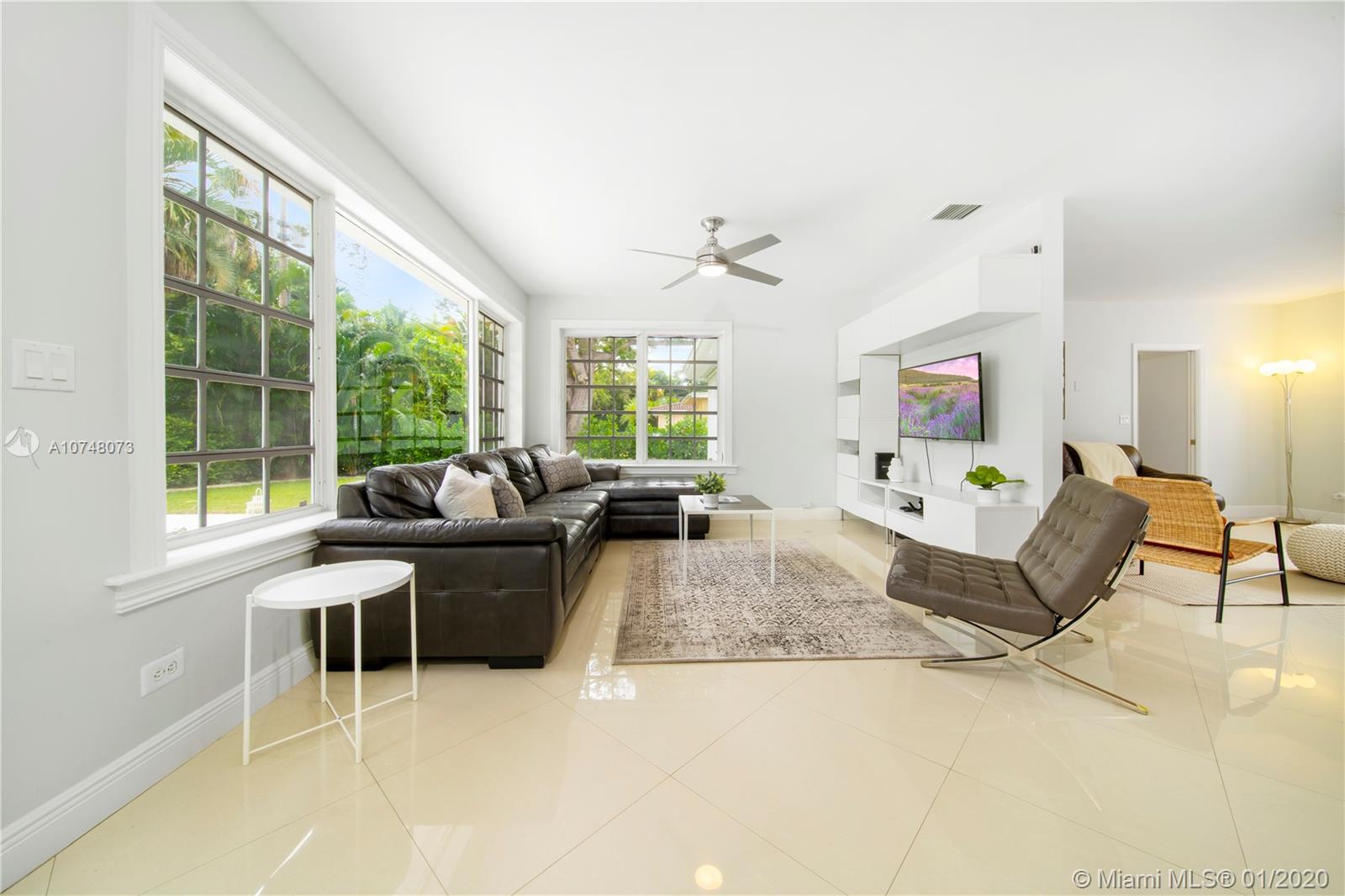 Welcome to East Shores Mid-Century Oasis, a most unique modern ranch home just steps from the bay in one of Miami Shores’ most desirable locations. This may be one of the largest two bedroom homes around, with great flow and wide open living-dining, bespoke office space and a Jenn-Air stainless steel gourmet kitchen perfect for entertaining- all overlooking manicured gardens and custom salt-water pool with entertainment patios. The oversized master suite has large double closets and a bright bathroom with separate tub and shower. All with mid-mod character galore: sleek architectural lines, modern brick details and an inviting entry courtyard, plus updates you’ll appreciate: new roof, AC, water heater, and sprinkler system. Come feel the breeze in your own private MiSho retreat!