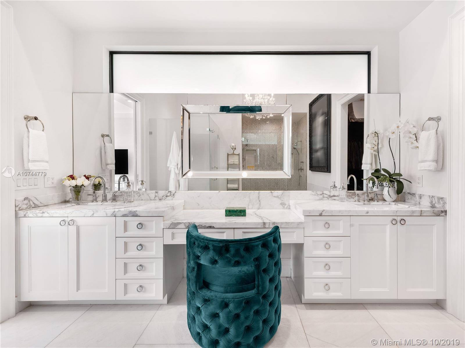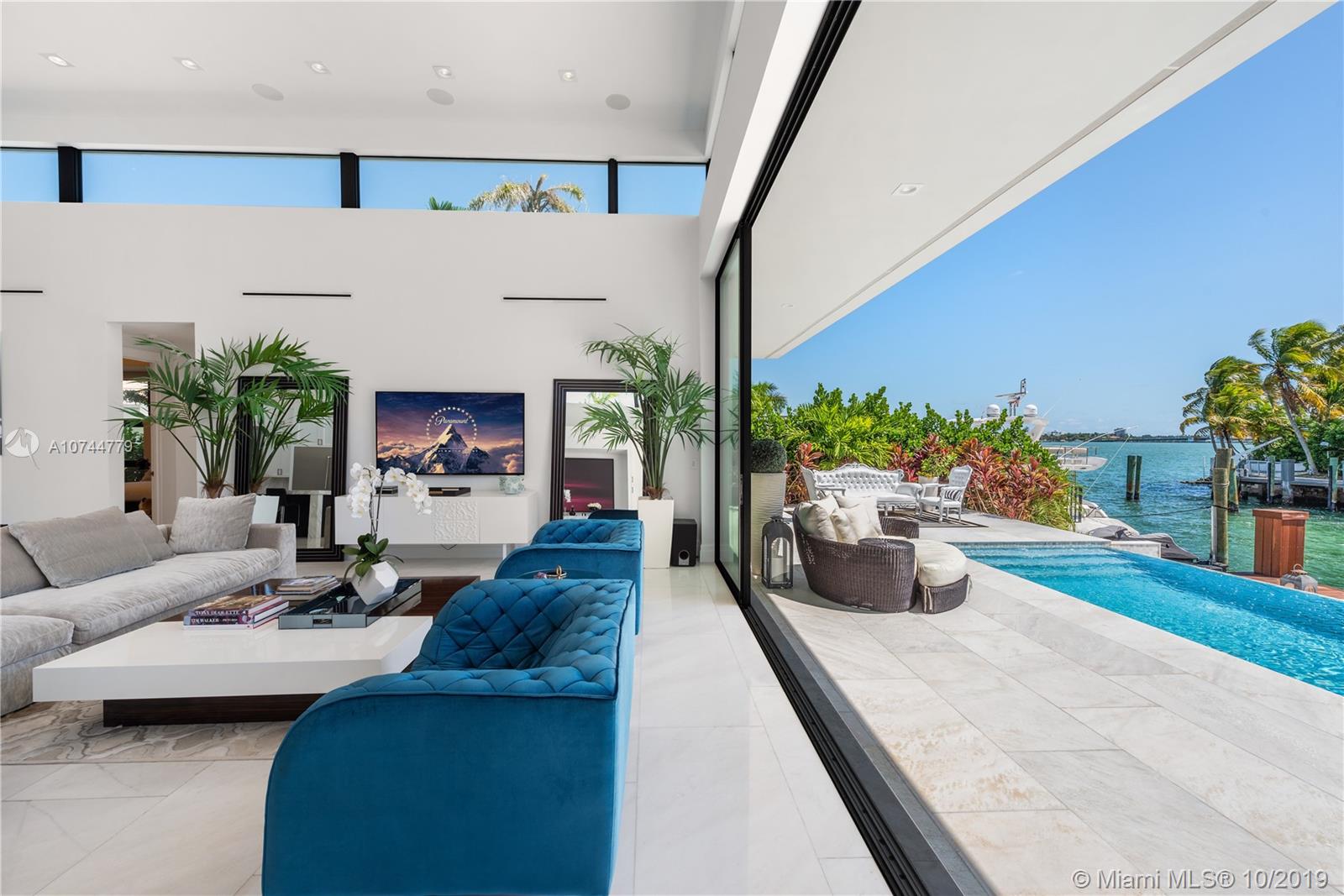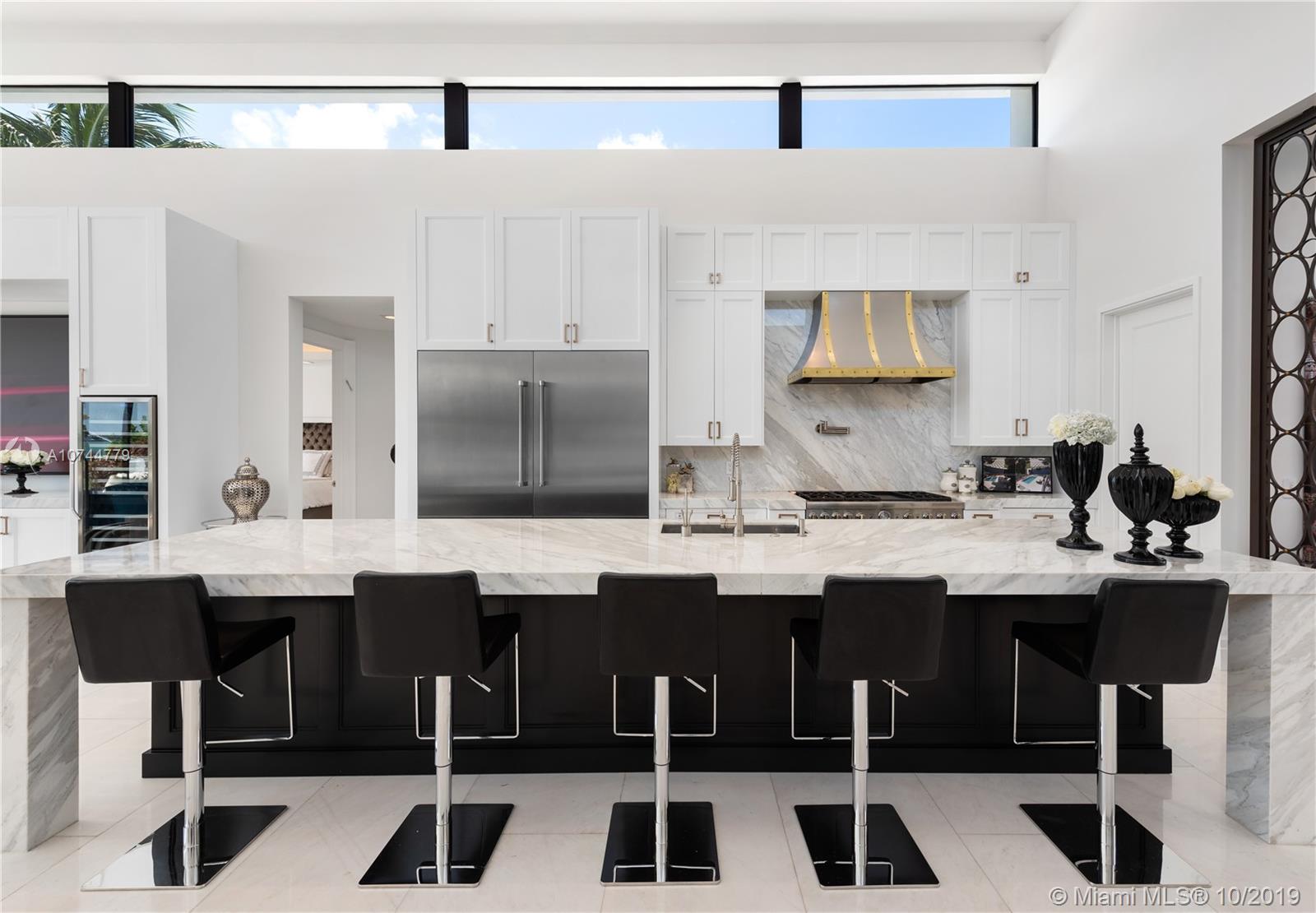 Built-in 2018, this spectacular Regency Moderne style masterpiece was designed for entertaining in style. If grand open space with lots of light and height is what you seek, welcome home. Quality built for its owners (not spec), this showplace features gorgeous white marble floors throughout with 18 ft ceiling in great room and 11 ft ceilings in bedrooms. 4 oversized en-suite bedrooms plus maids room and 5.5 baths. Custom cabinetry throughout including gourmet kitchen with Thermador appliances. Heated infinity-edge pool and spa, Ipe wood dock, hi-impact windows and doors, double car garage. 75 feet of protected water with bay access about 150 feet away. Perfection in Keystone Point.