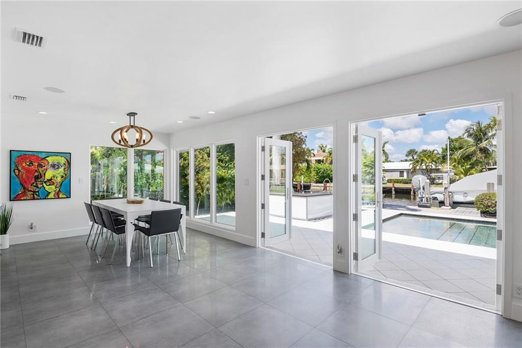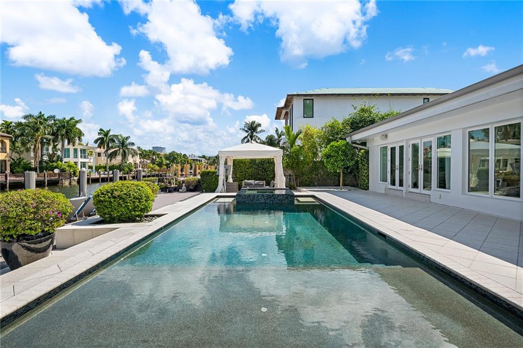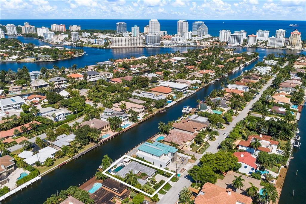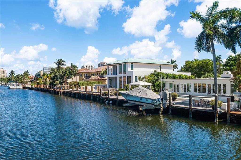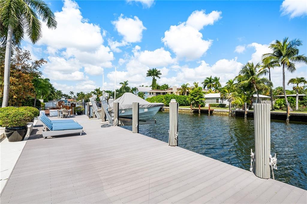 Located in Seven Isles off of Las Olas Blvd., this renovated deep water home offers single level living that has been redesigned with a contemporary flair. 76 ft of waterfront allows dockage of a yacht up to 56 ft in length. Private, gated entry with pergola covered courtyard. An open floor plan combines living, dining, and kitchen areas, all with views of the pool and canal. Composite dock with boat lift. Impact windows and doors. Kitchen and baths have all been remodeled. Living room with fireplace, kitchen with gas cooking and breakfast bar seating. Master has walk-in closets and marble en-suite master bath. Two add'l bedrooms have full en-suite baths. Half bath has outdoor access for cabana bath use. Resort-like backyard. Pool with shallow, beach entry and spill-over spa. Move-in ready