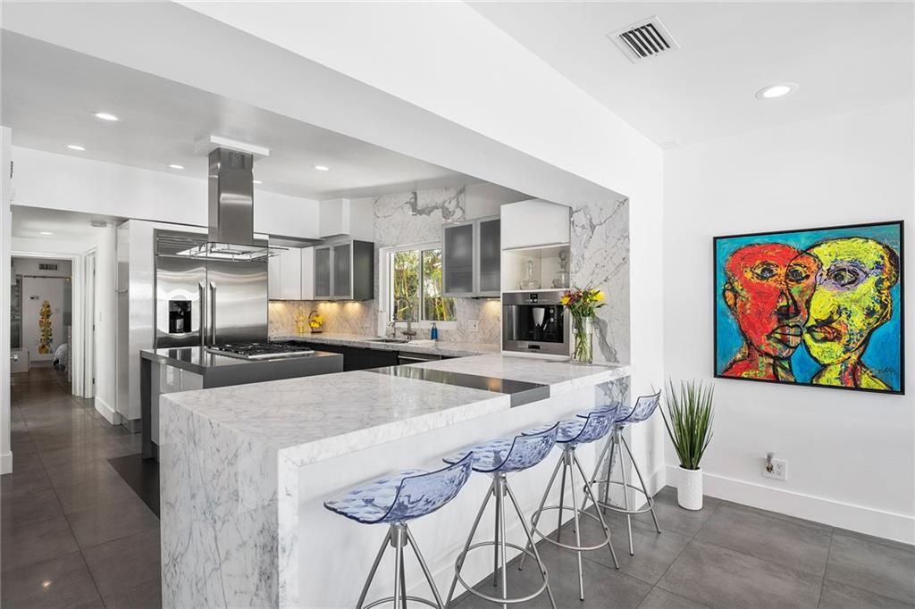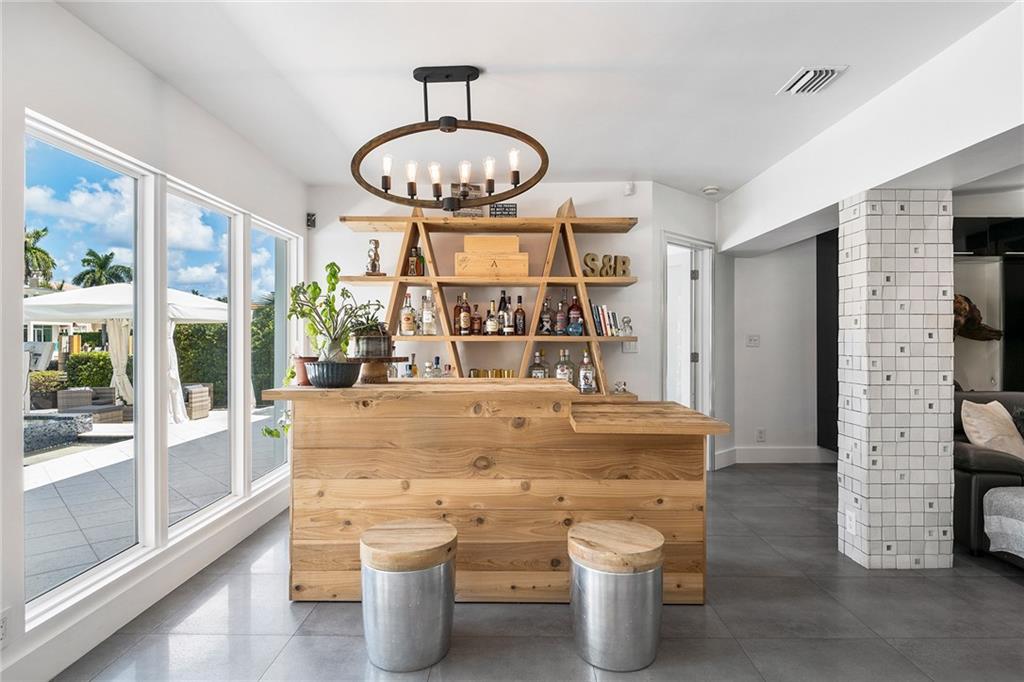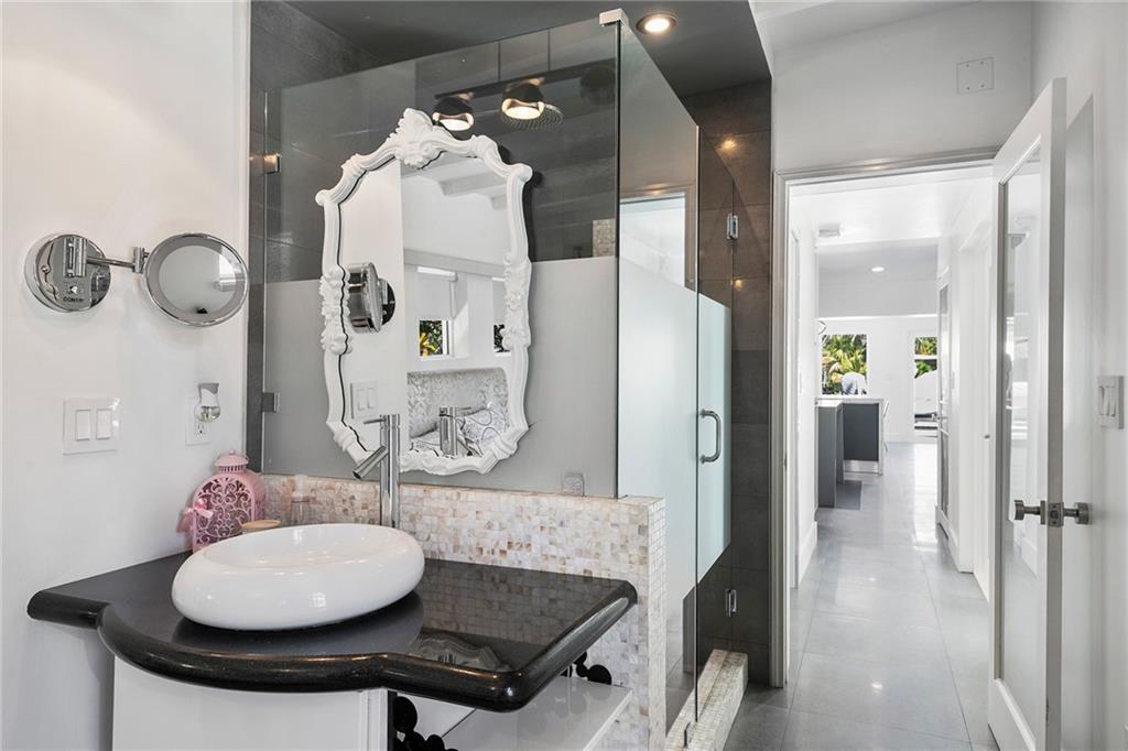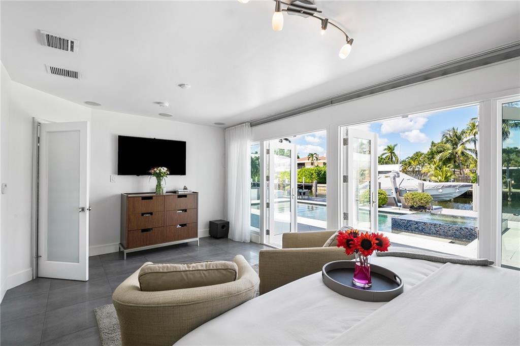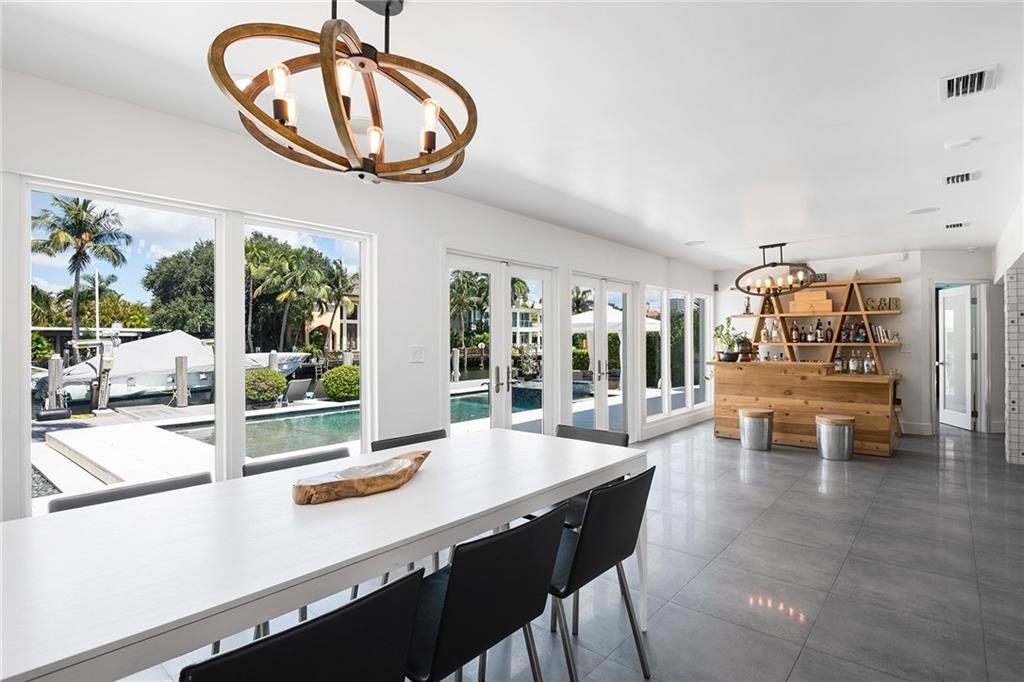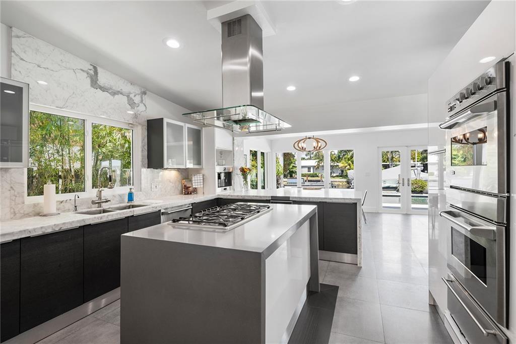 Located in Seven Isles off of Las Olas Blvd., this renovated deep water home offers single level living that has been redesigned with a contemporary flair. 76 ft of waterfront allows dockage of a yacht up to 56 ft in length. Private, gated entry with pergola covered courtyard. An open floor plan combines living, dining, and kitchen areas, all with views of the pool and canal. Composite dock with boat lift. Impact windows and doors. Kitchen and baths have all been remodeled. Living room with fireplace, kitchen with gas cooking and breakfast bar seating. Master has walk-in closets and marble en-suite master bath. Two add'l bedrooms have full en-suite baths. Half bath has outdoor access for cabana bath use. Resort-like backyard. Pool with shallow, beach entry and spill-over spa. Move-in ready