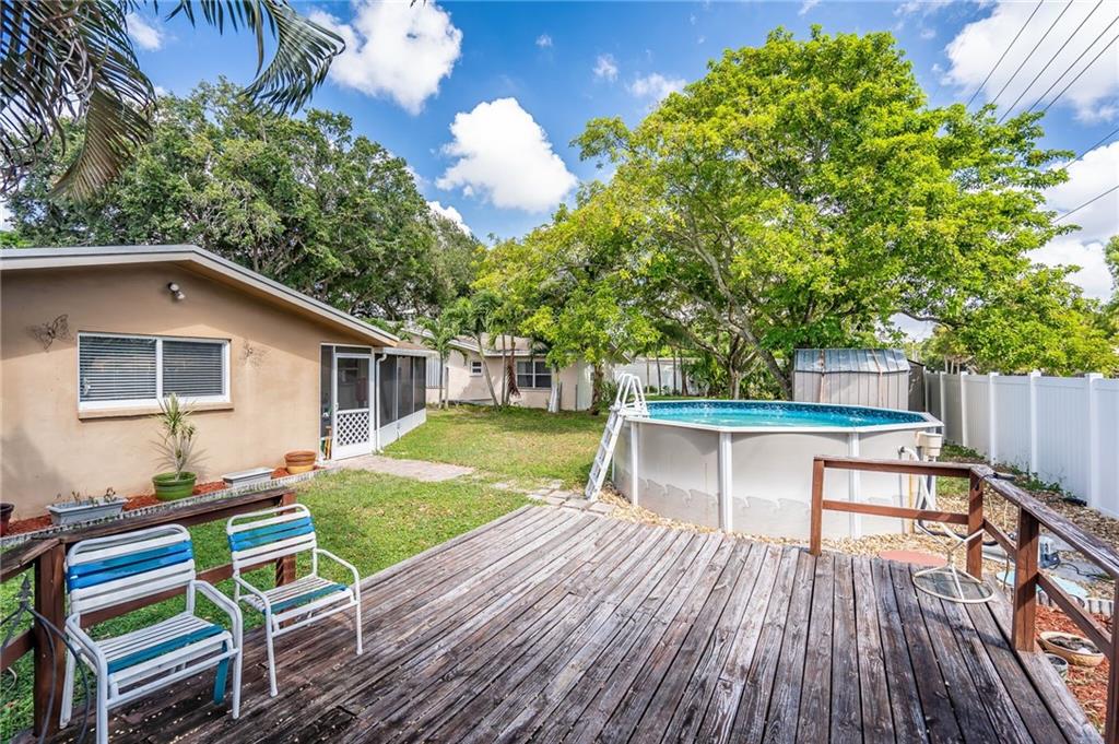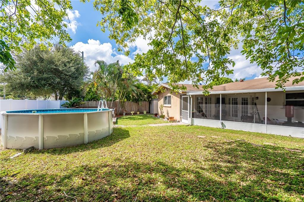 Welcome to Palm Aire Village! You will be delighted to see this amazing home with wide open spaces. French doors accent the dining area and master bedroom. Spread out in your 3 bedroom, 2 bath home, offering a huge kitchen with granite counters on the breakfast bar and extra cabinets for storage. Light tile and wood flooring throughout. Hurricane impact windows and shutters for the doors. The master bedroom views the back yard and offers a large custom walk-in closet and remodeled bath. Large covered screened patio to entertain, spacious yard with wood decking and an above ground pool. Stamped concrete driveway, single car garage and the roof is only 6 yrs. old. This home is centrally located in Broward and convenient to major highways.