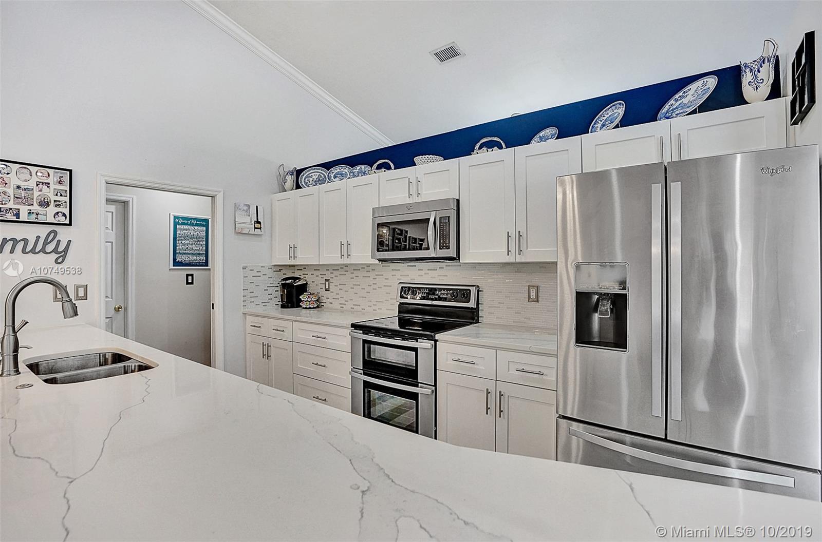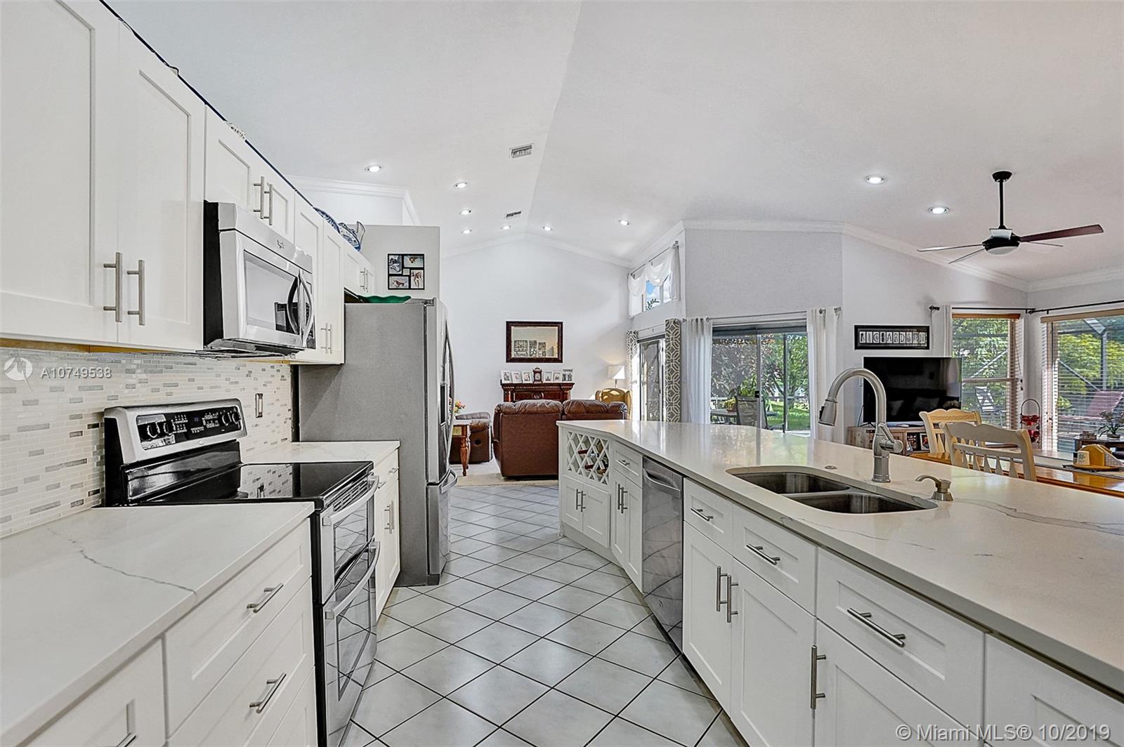 Are you looking for a spacious & updated 1 level pool home in the heart of Weston? This beautifully remodeled & cozy ranch offers a very functional split floor-plan with smooth vaulted ceilings & walls, formal dining, breakfast area, separate living & family rooms. Cooking and entertaining is a pleasure in the brand new kitchen, featuring quartz counters, glass tile back-splash, double oven, wine compartments & seating area. This home's interior benefits from plenty of natural light and affords generous views of the screened pool, lake & lush exterior. Additional features include, 10 yr old roof, custom plantation shutters for light control and energy efficiency, renovated bathrooms with double sinks, stone counters and glass shower enclosures, space for all your toys in the long driveway!