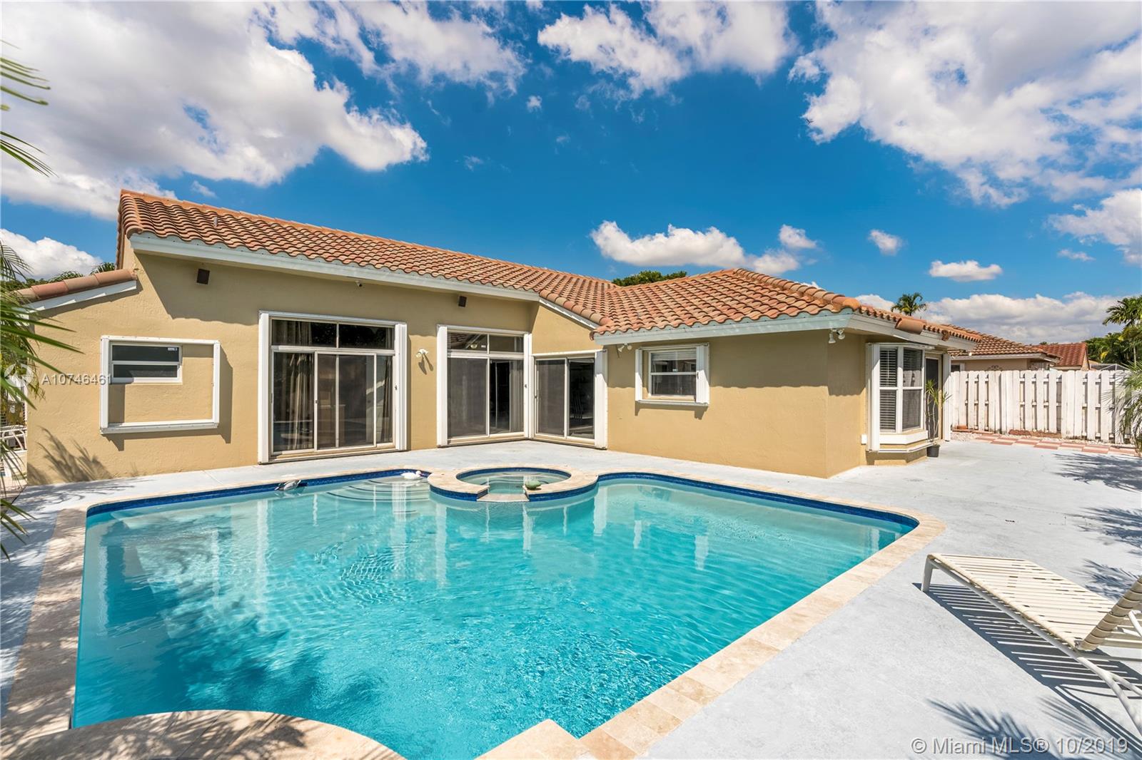 Property located in West Miramar. Swing open the double front door and you have immediately invited yourself into the open concept 3 bedrooms two baths two-car garage home that boost an updated kitchen with quartz countertop, modern cabinetry, stainless steel appliance. The huge master bedroom has a double sliding door glass that gives you a direct view of the tropical island style saltwater pool and jaccuzzi and fenced in backyard, custom walking closet located opposite to the well-appointed updated elegant modern master bathroom. All around hurricane accordion-type shuttle, Roof was redone in 2009, Ac unit was replaced in 2017, exterior paint 2019