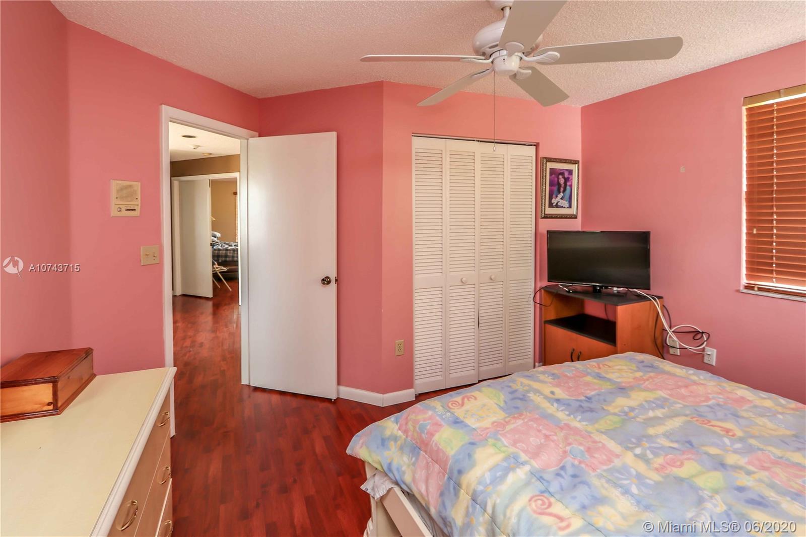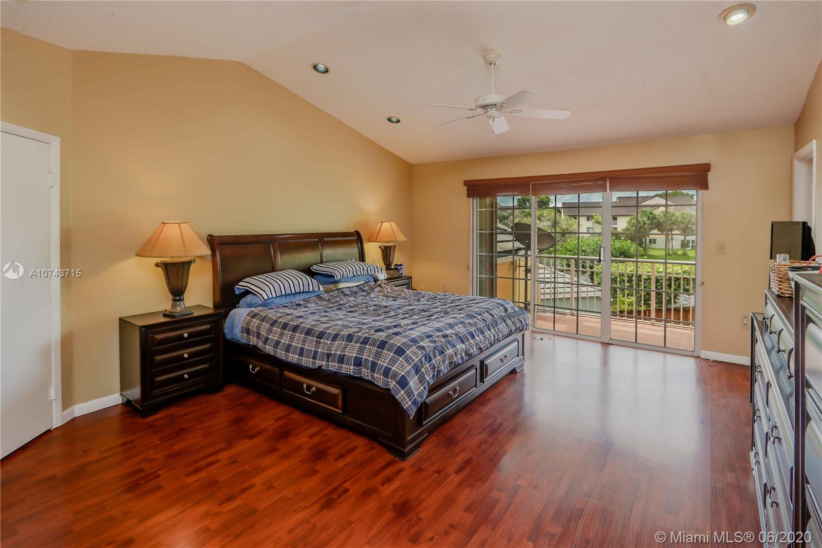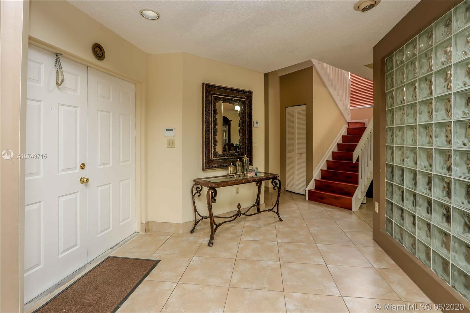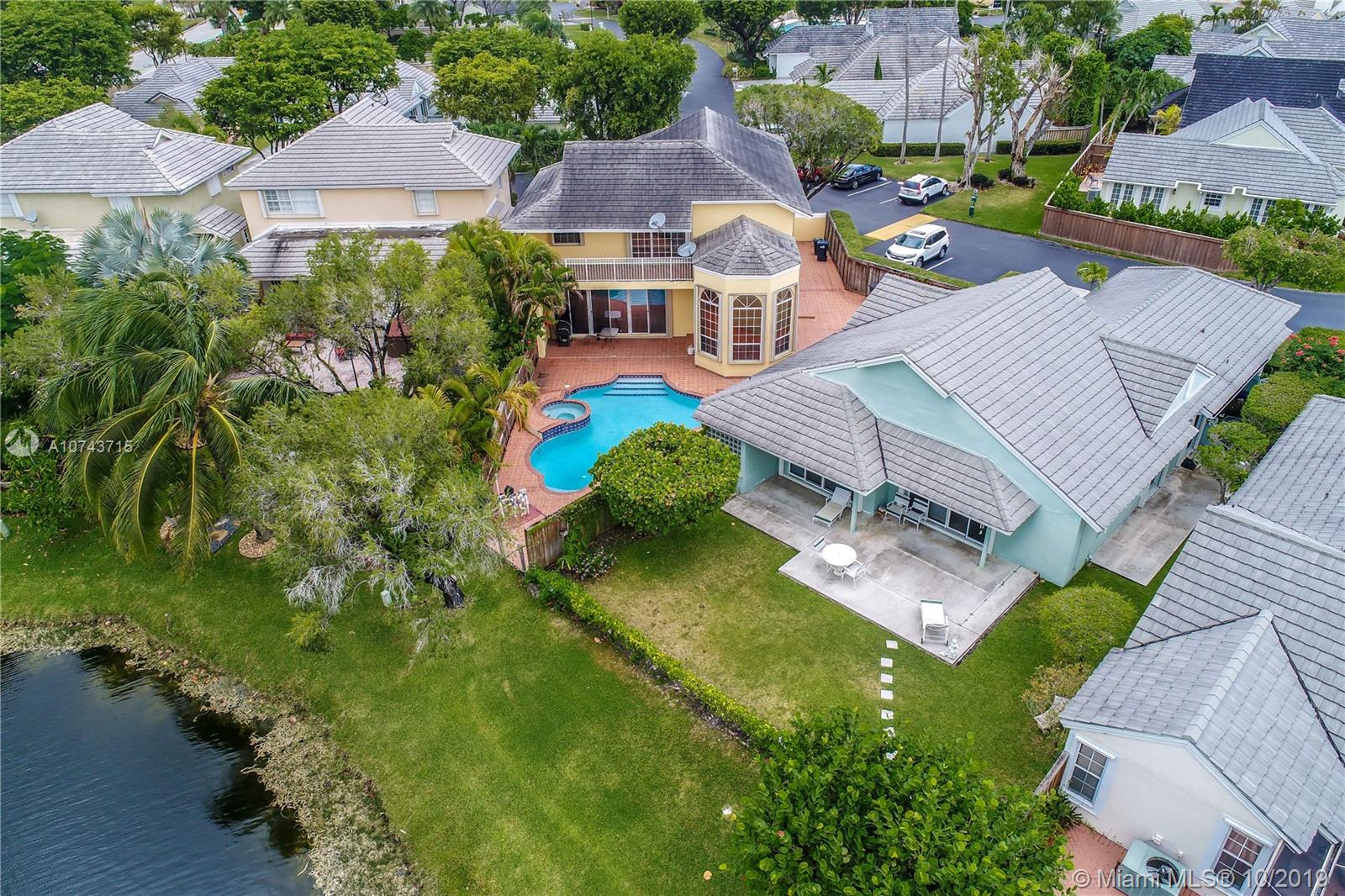 Gorgeous, Elegant & Spacious Lakefront, corner home. Located in the gated community of Doral Woods. Two story, 5 bedrooms, 3 full baths, pool, tile patio, accordion shutters, the two-car garage has been converted into a beautiful family room/Den/Office and an additional bedroom. Huge living room and formal dining room perfect for a large family. Tile floors on first floor and laminate wood on second floor and stairs. Kitchen with breakfast nook overlooking the pool and the lake. Master bedroom with spacious walking closet and bathroom and a balcony with pool and lake view!! Price to sell!
