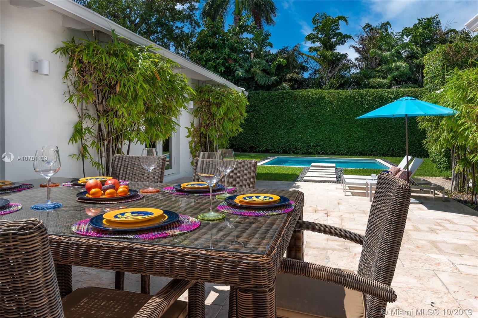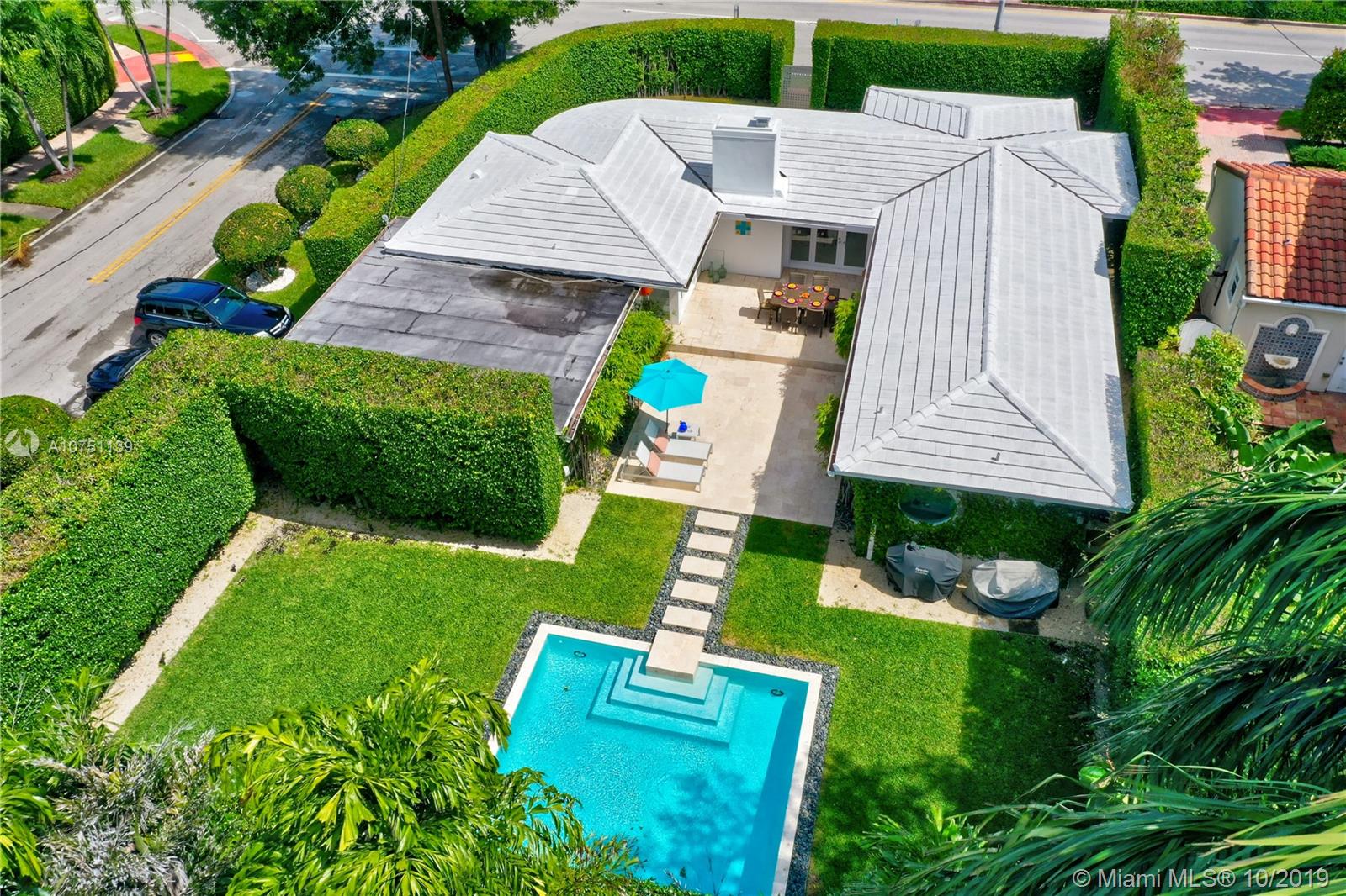 Striking move-in ready MIMO in coveted sought after Mid Beach! This chic designer remodeled gem features roomy 2,311 SF of ample open sunny living spaces. Meticulously finished residence featuring 2 beds, 2.5 baths plus roomy den. Chef’s gas open kitchen with eat-in bar seating, recessed lighting, surround audio system, terrazzo floors, & impact windows/doors. Fall in love with the resort style pool surrounded by manicured landscaping, professional lighting, & 20 ft hedges for the upmost privacy. Gated 8,628 SF oversized corner lot with 2 car garage on 56th street for easy in and out entering and exiting.