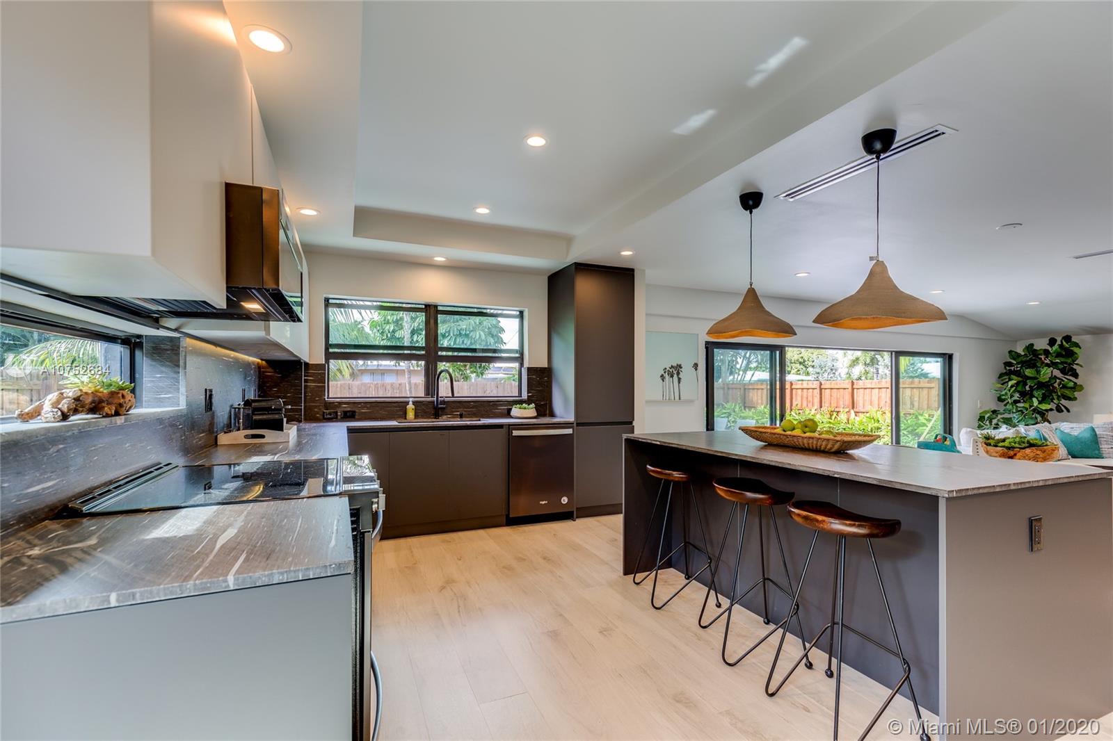 Be amazed by one of poinsettia Heights most unique homes. This stunning home, designed in 1954 by Lester Avary, was extensively renovated for a modern lifestyle. This designed & totally rebuilt house with a modern layout, minimalist architectural style and versatile floor plan. Spectacular 3 bedrooms and 2.5 baths. Kitchen with Brazilian quartz and stainless steel appliances. Floating vanities. Wood look like porcelain throughout. Large walk in closets. All bedrooms leading to its own east private large flat grassy back yard to enjoy moonrises. Large driveway to park up to 9 cars. New Sewer, Plumbing, Electrical and more. This unique home is something only dreams are made of!. Don't miss it. Reduced !