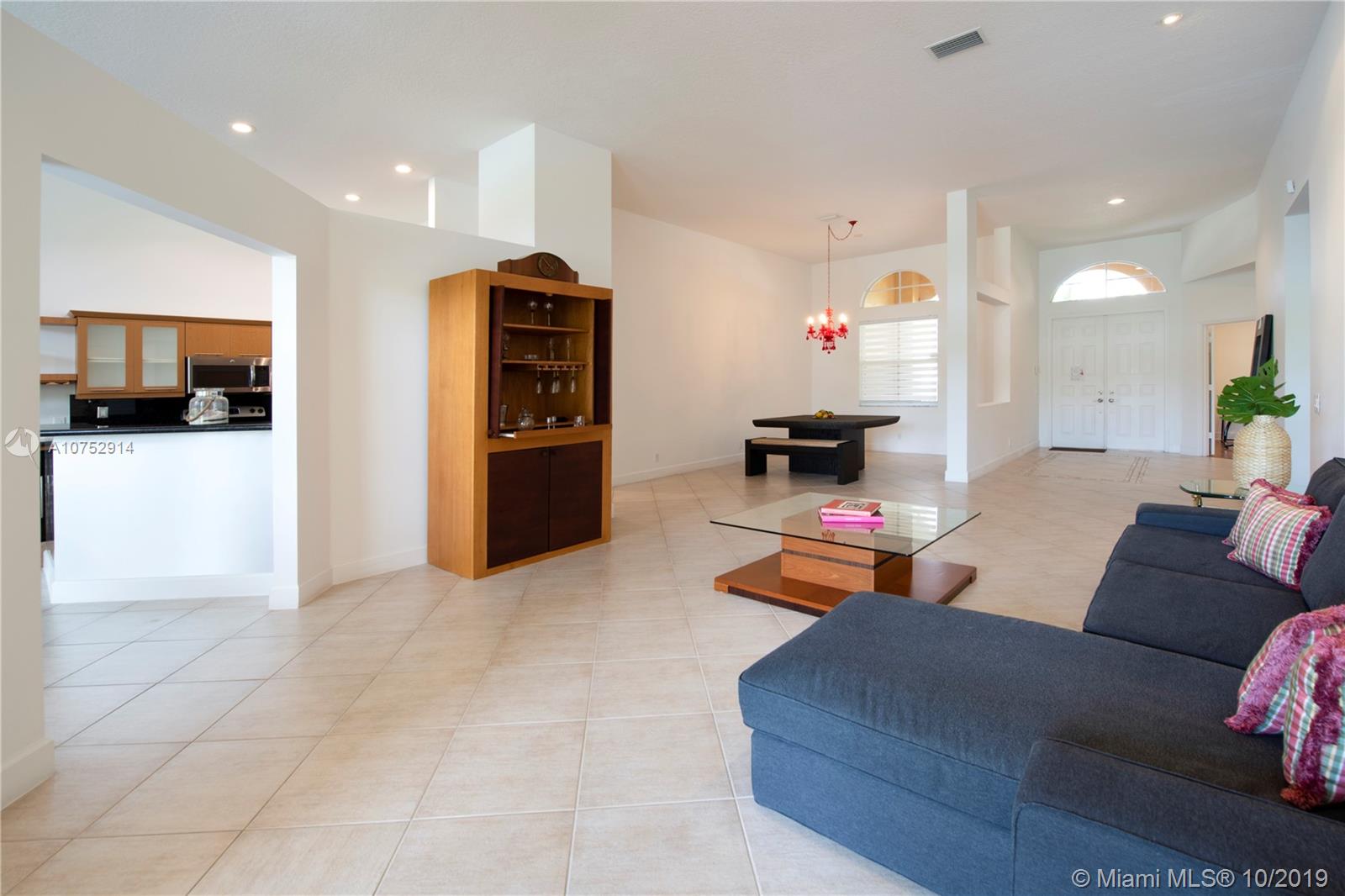 Open Split Floor plan w/high volume ceilings, 4 Full Bedrooms + Den, 3.5 Baths located on the lake w/private views with no neighbors behind for total privacy. Nice Covered Front Porch Paved Area to access double doors to foyer to exciting social area filled with natural light. High impact double doors that leads to large covered patio that is perfect venue to entertain friends & family. Completely fenced, spacious grounds, lush & tropical landscaping w/outdoor shower. Tile flooring throughout & laminated wood floors in bedrooms. Kitchen made for gourmet cooking w/granite, wood, SS appliances & pull outs are just some of the features to tell your buyers about. Huge master bedroom suite w/sitting area and access to pool & patio, fully renovated Master Bath as well as the other baths