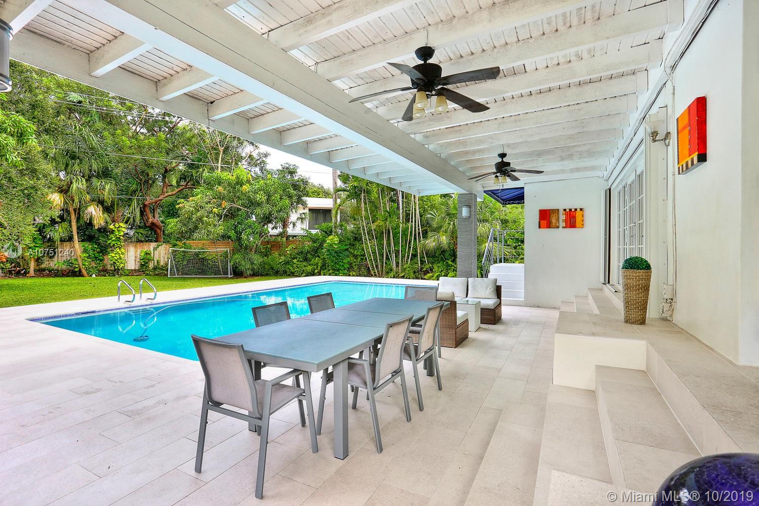 Lovely home in prime South Gables / Grove neighborhood, close to the Grove village center’s galleries, boutiques, cafes and bayfront parks & marinas. Set back on a tree-canopied, oversized lot with lush tropical foliage. Total renovation including (new: impact glass, baths, kitchen, lighting, roof, pool area, 2 HVAC’s, septic system & more). Light-filled living spaces with Brazilian wood flooring and a neutral color palette, create a modern-minimalist feel throughout. Stunning , European-style eat-in kitchen features high-end appliances. Large family room opens to a covered terrace with full outdoor kitchen. Enjoy year-round living & entertaining around the serene pool and ultra-private garden. Minutes to South Miami & Coral Gables renowned shopping & dining venues.