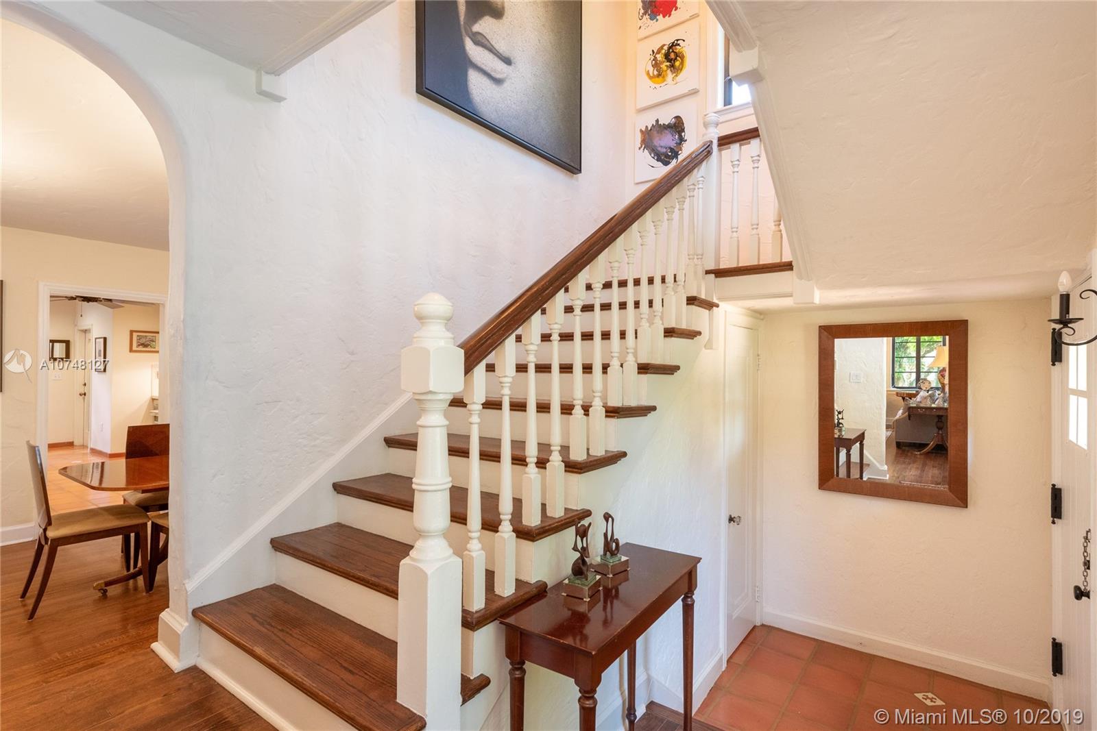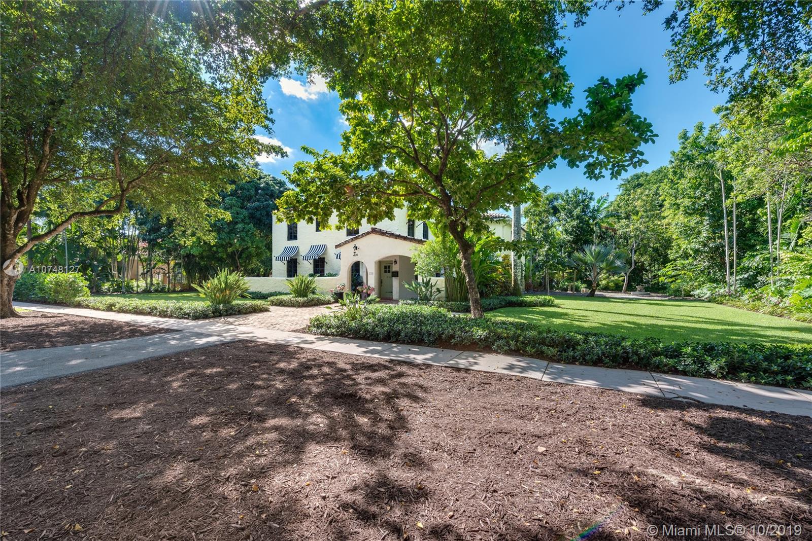 New Listing. Gracious 2 story landmark home on a huge 18,750 square foot corner lot on one of the most desirable streets in Coral Gables - -a block to Granada Golf Course, two blocks to Salvadore Park, ten blocks to the magnificent Biltmore Hotel. Foyer entrance with powder room, living room with fireplace, formal dining room, eat-in kitchen, large family room, plus maid's bedroom/bath on the first floor. Upstairs find 3 bedrooms, 3 baths plus a fourth bedroom used as a closet and a fifth bedroom with an outside entrance that is an office off the master suite. New impact windows and doors. Garage & carport. Room to expand and also add a pool. Some plans already designed for a huge garage and guest room addition. Well priced.