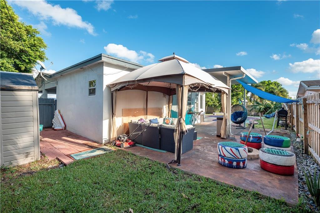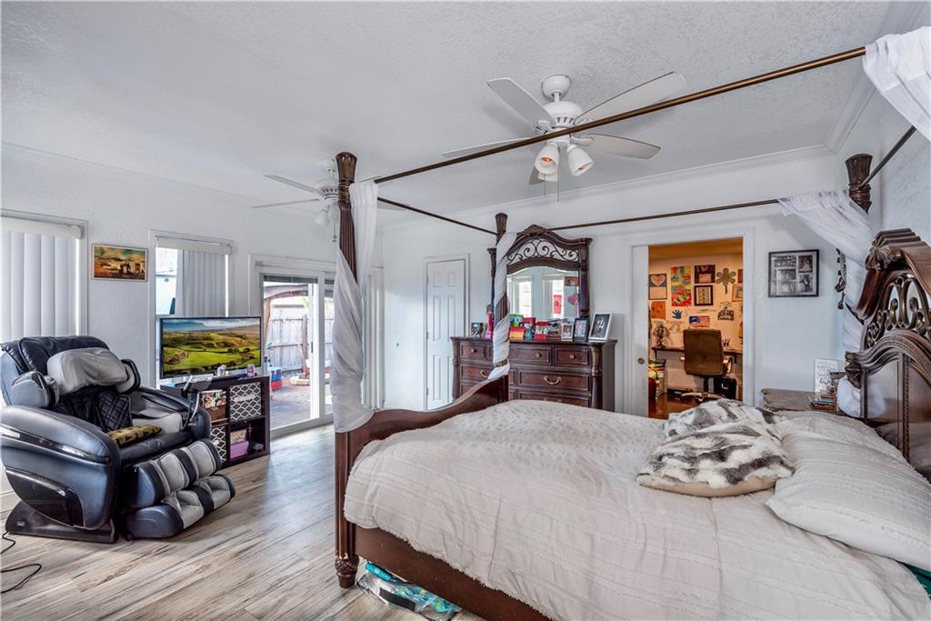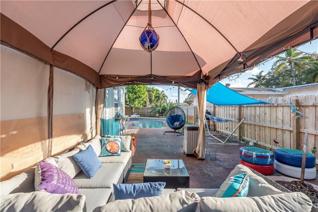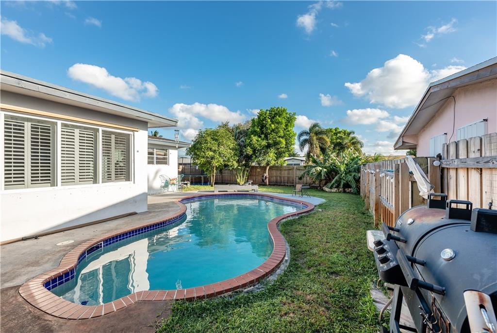This Beautifully Upgraded Corner-Lot 3/2 Pool Home is Ready For Move-In! Living, Dining and Family Area Open to Updated Kitchen with Stainless Steel Appliances, White Cabinets, Tile Backsplash, Snack Bar, and Designer Lighting. French Doors Lead to Fenced Yard with Pool, Patio with Fire Pit, Fruit Trees, and 2 Storage Sheds. Master Suite Features Sliding Glass to Patio, Wide Walk-In Closet, and Spacious Bathroom with 20-Inch Soaking Tub. All Windows Have Hurricane Protection and Either Plantation Shutters or Shades. Wood-Finish Tile Flooring in Living and Master with Tile in Bedrooms. Stackable Washer/Dryer and Tankless Water Heater. Carport and 4-Car Driveway. NO HOA/NO PET RESTRICTIONS. Close To Great Schools, Shops, and Entertainment.