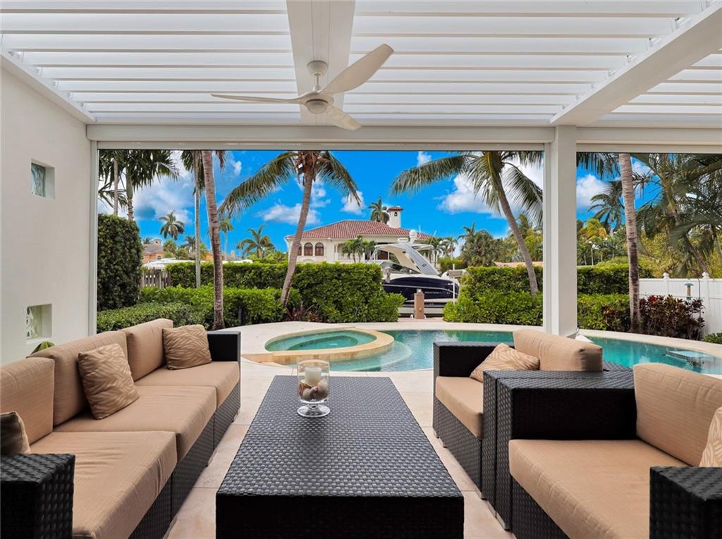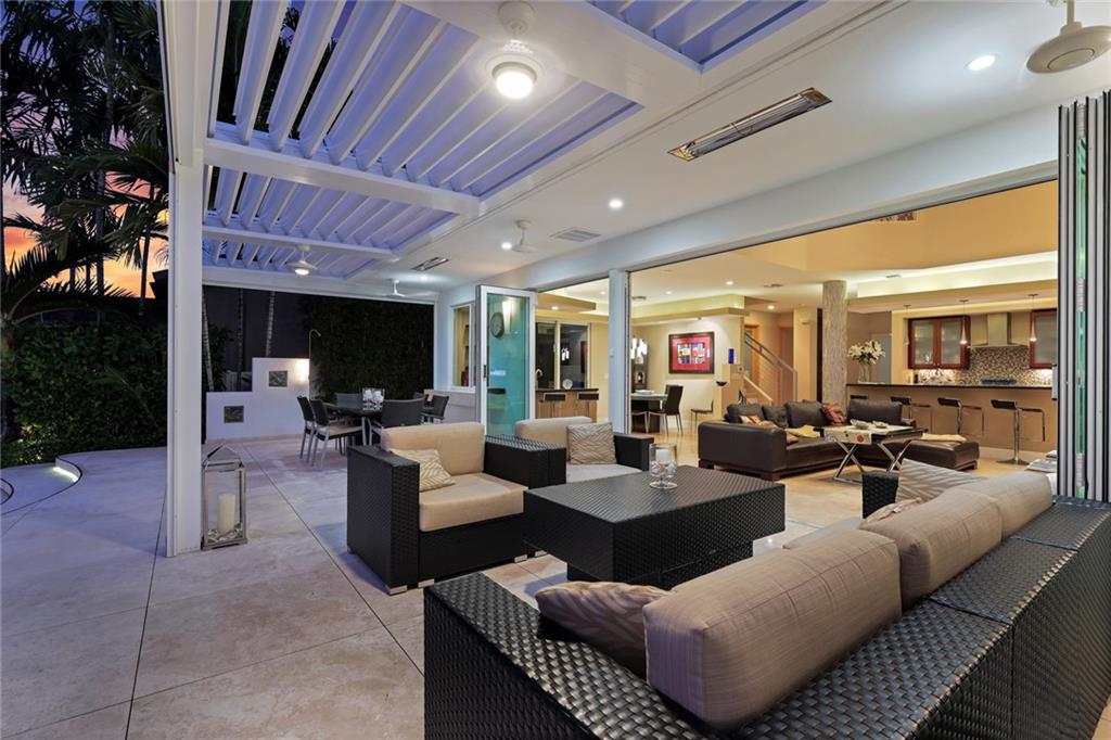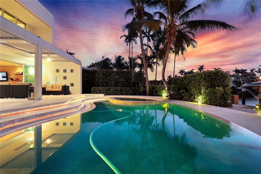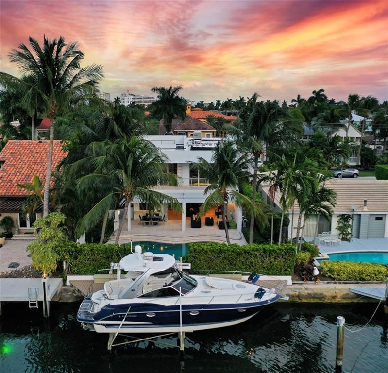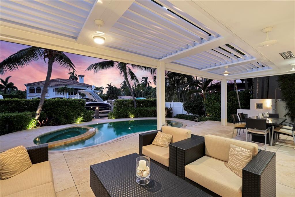 Modern 3 BR/4BA + large Den with light-filled open layout and ultra high-end amenities. This fully furnished, turnkey home is designed for indoor/outdoor living; the living room flows seamlessly into a spacious patio that features an automated louvered roof and large heated saltwater "Endless" pool & spa. This home has it all - high ceilings, impact glass, generator, water softener, Subzero/Wolfe appliances, security cameras, gated entry, 15,000 lb boat lift, garage car lift. Den can easily be converted to 4th bedroom. Walk to the beach or Las Olas restaurants; no fixed bridges means quick ocean access. Also available as furnished rental.