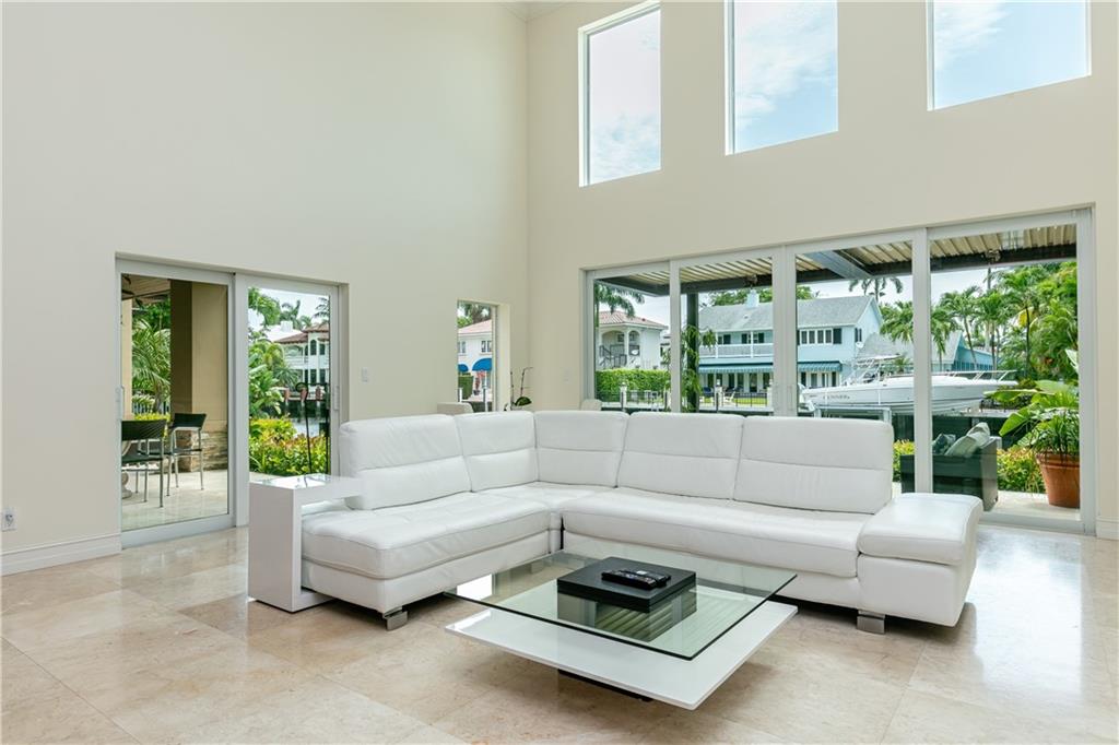 This property is one of the lowest price per square foot homes in Las Olas Isles. It is a beautiful Modern waterfront home on 100 ft waterfront. Fast/easy ocean access only 600 ft to intra coastal and new river. TRADITIONAL FLOOR PLAN, 6 bedrooms 5.5 bathrooms home with abundant water views. New built (2016) addition includes family room with 20 ft ceiling, large loft overlooking family room, dual island kitchen with Thermador gas range; walls of glass contemporary design open to multiple lanais; massive 1st floor master suite; 2nd floor master suite too! Marble and hardwood floors throughout; large secondary bedrooms plus lots of storage; Easy stroll to beach and shops.