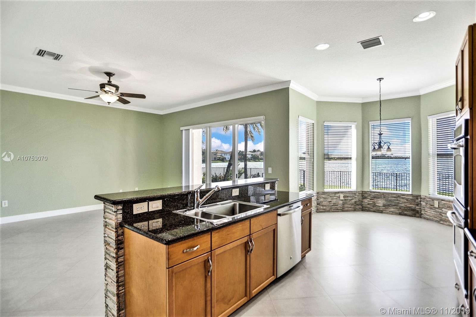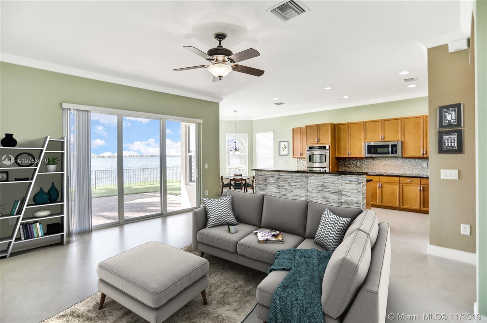 Stunning home with dramatic sunset & water views over a mile wide! More than 80K in upgrades. Open floor plan. European style kitchen with 42" upper cabinets, granite counter top with stone backsplash, top of the line SS appliances. Large master suite with double California walk-in closets. Upgraded bathrooms with granite vanity tops, tile & stone showers, glass doors. High ceilings, crown moldings, beautiful porcelain flooring thru-out, elegant light fixtures, all impact windows and doors, elegant glass front double doors, LED lights, laundry room with utility sink & top of the line washer & dryer, A/C unit replaced 2 years ago, tankless water heater, new garage door opener, power surge protection. Resort style club house. Close to parks, schools, shopping & main streets. Ready to move in