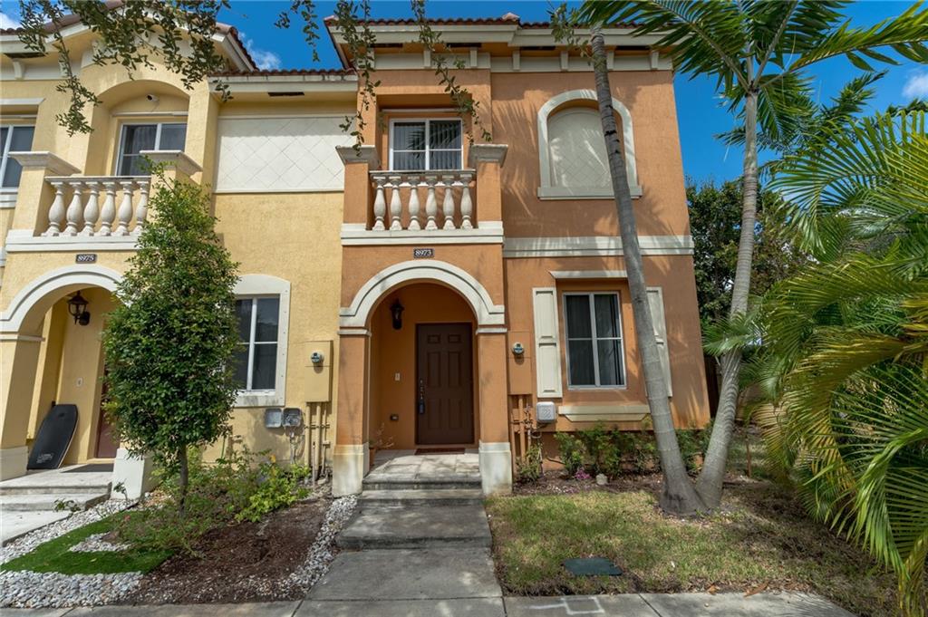 Gorgeous 3 bed 2.5 bath town home located in Miramar Village Walk. Gated community home. On the first floor you will find an open concept kitchen and living area along with a convenient bathroom for guests. The second floor has the bedrooms and 2 full bathrooms. The home has a spacious master bedroom with a walk in closet. Kitchen with beautiful brown marble counter top along with stainless steel appliances which opens to living area. Perfect for entertaining. Enjoy the community's pool and park. This beauty is close to restaurants, schools, and only minutes away from the turnpike. HOA covers roof replacement and maintenance, as well as exterior maintenance.