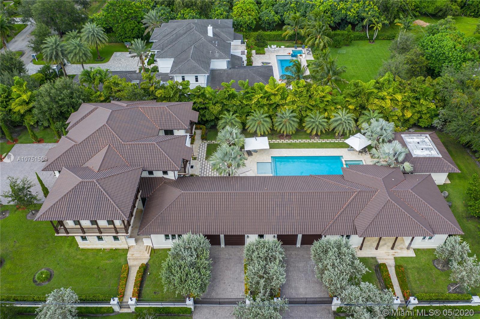The Italian villa located on Pinecrest's best street . Enjoy the impeccable high end finishes in this expansive 8BD/9 + 1 BA 11,400 SF custom built home. The formal entry leads to a winding stair case. An immaculate wine cellar, elevator, library/office & open kitchen/ family room. Marvel in venetian plaster walls, vaulted ceilings, intricate marble/stone details & views to the pool, spa & lushly manicured grounds. Contemporary home comprised of 2 marvelous master suites( Yes 2 master bedrooms) and 5 in suit bedrooms with walk in closets. Close to Pinecrest Elementary & A+ schools. Walking distance to Gulliver Preparatory School. Generator ready. 4 car garage (840 sq ft.) 3 separate and automated gated entrances. Heated pool and a fantastic outdoor kitchen.