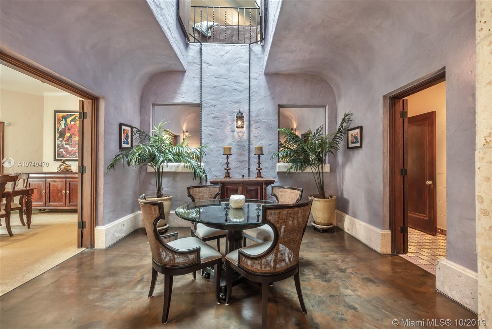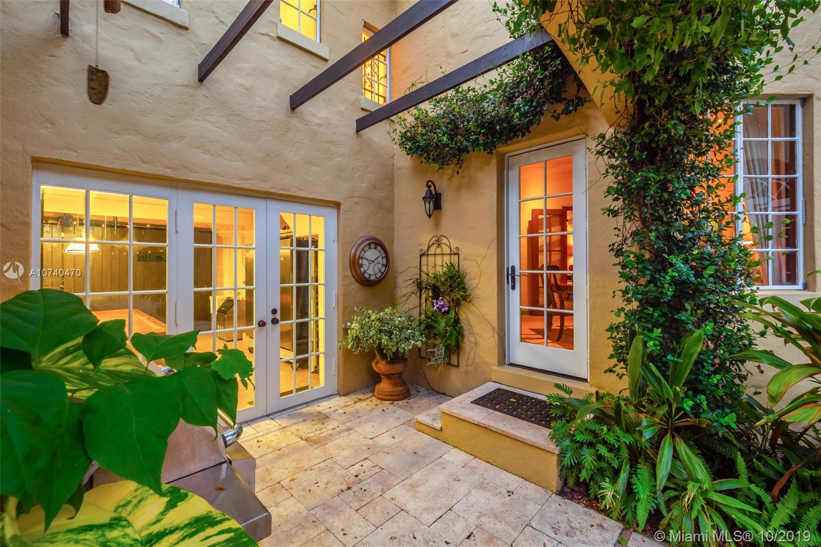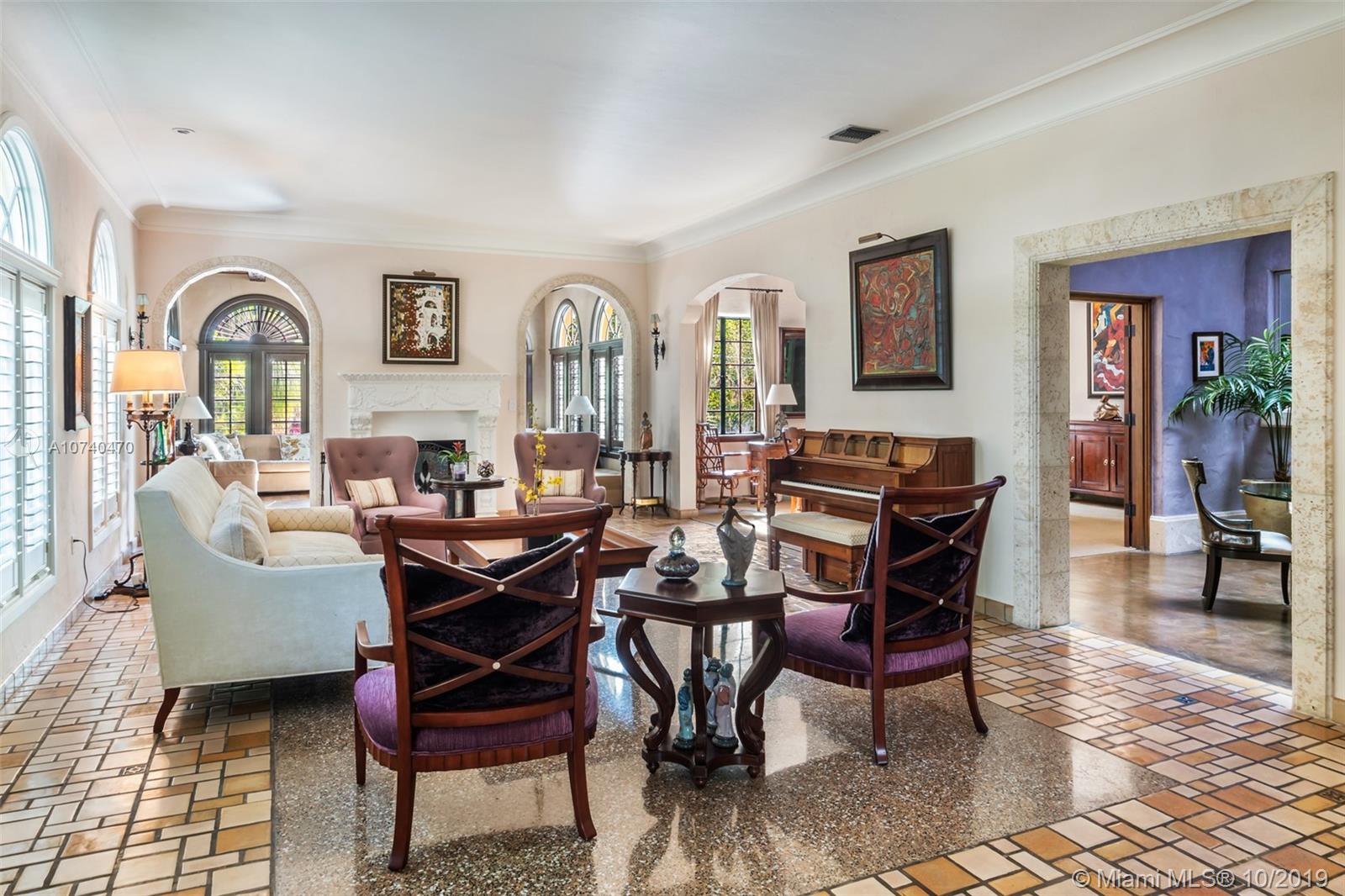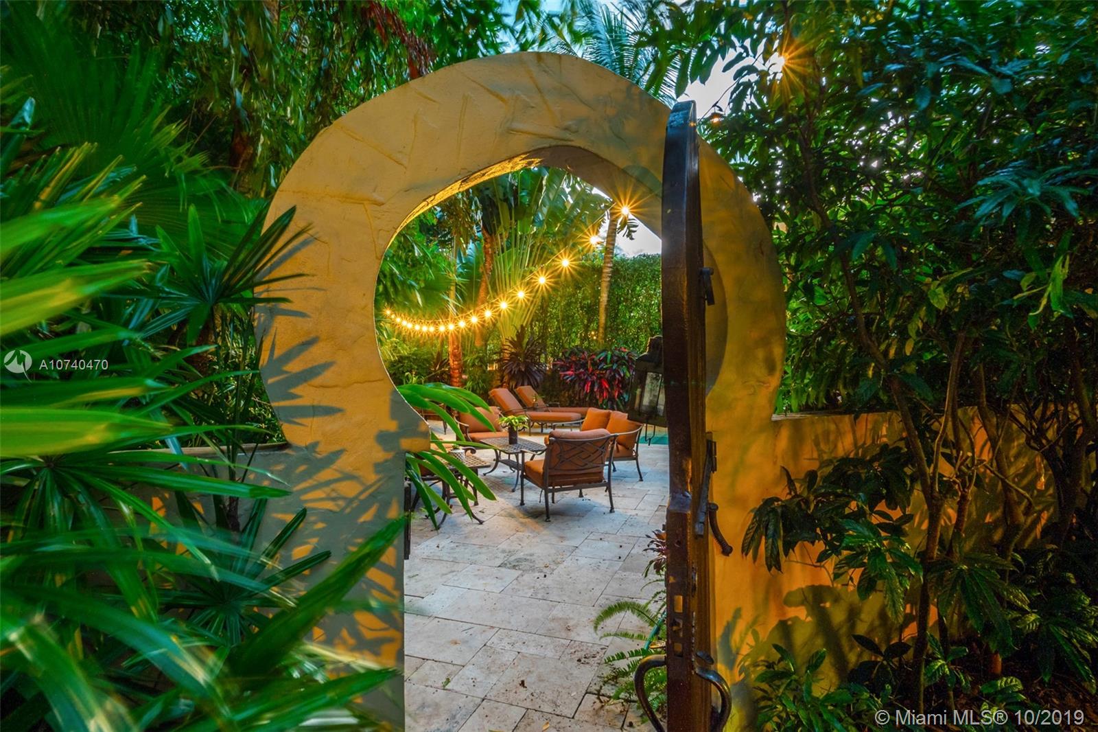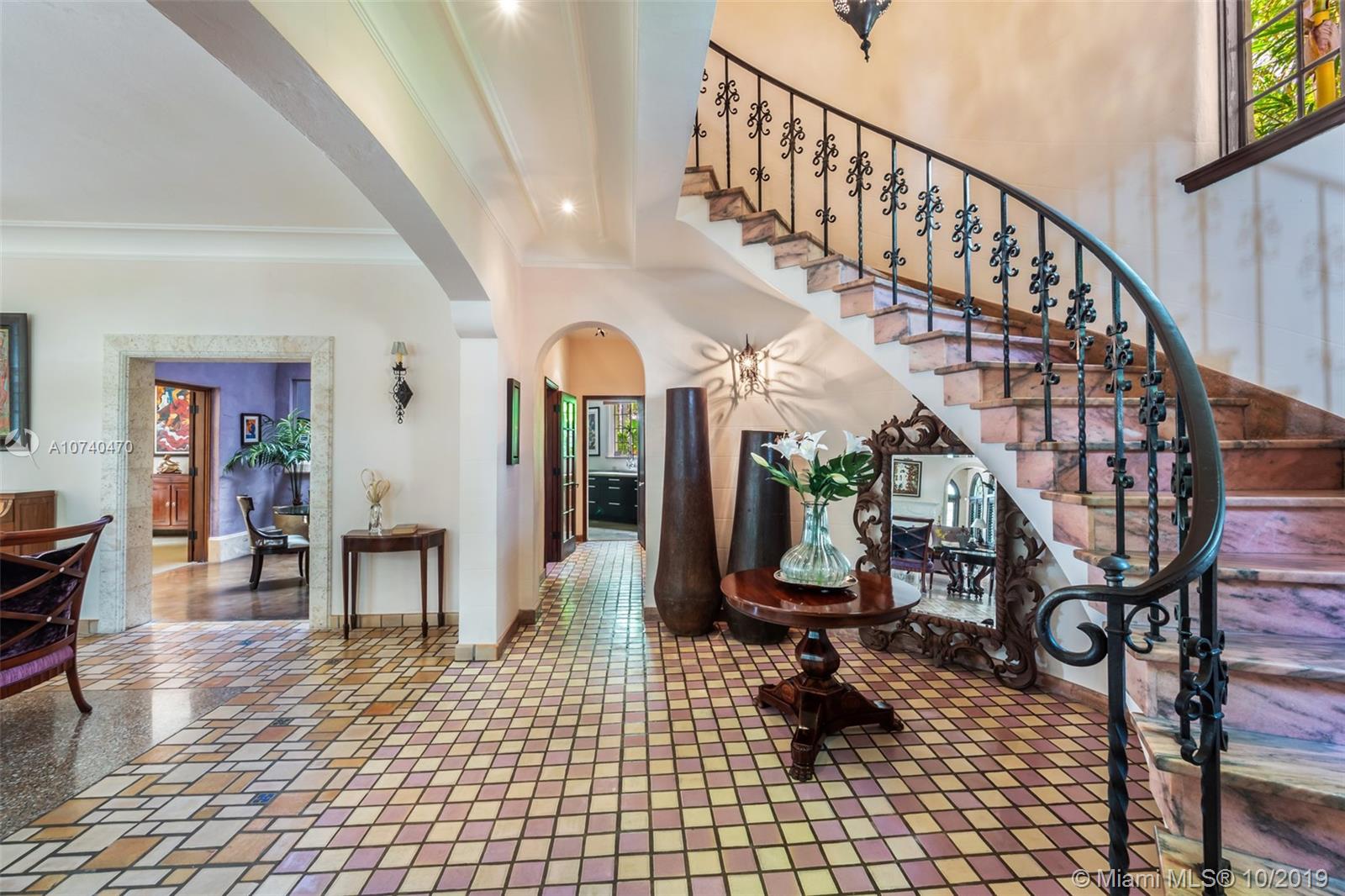 The grandeur of this historic gem spreads throughout the 4,326 sf of living space. An impressive rotunda entry showcases a winding marble staircase. Detailed wood scroll and mill work add elegance to the 4 bedroom and 6 bathroom layout. Adding to the splendor are Moroccan sconces, high beamed ceilings, arched windows, and a carved stone fireplace. The lavish master bedroom and bathroom with custom tile are a delight, and the upgraded kitchen has modern features that complement the unique design. Relax in the sunroom or entertain guests in the spacious formal living and dining space. A game room with pool table leads outside to a lush private garden that surrounds an inviting stone patio and pool. Located in the heart a Coral Gables, downtown City Beautiful is a short walk away.