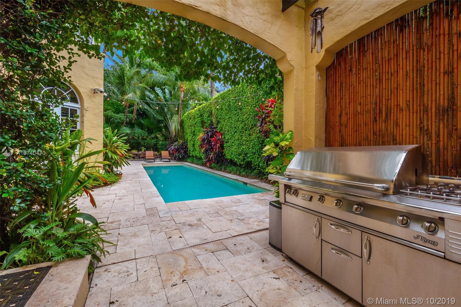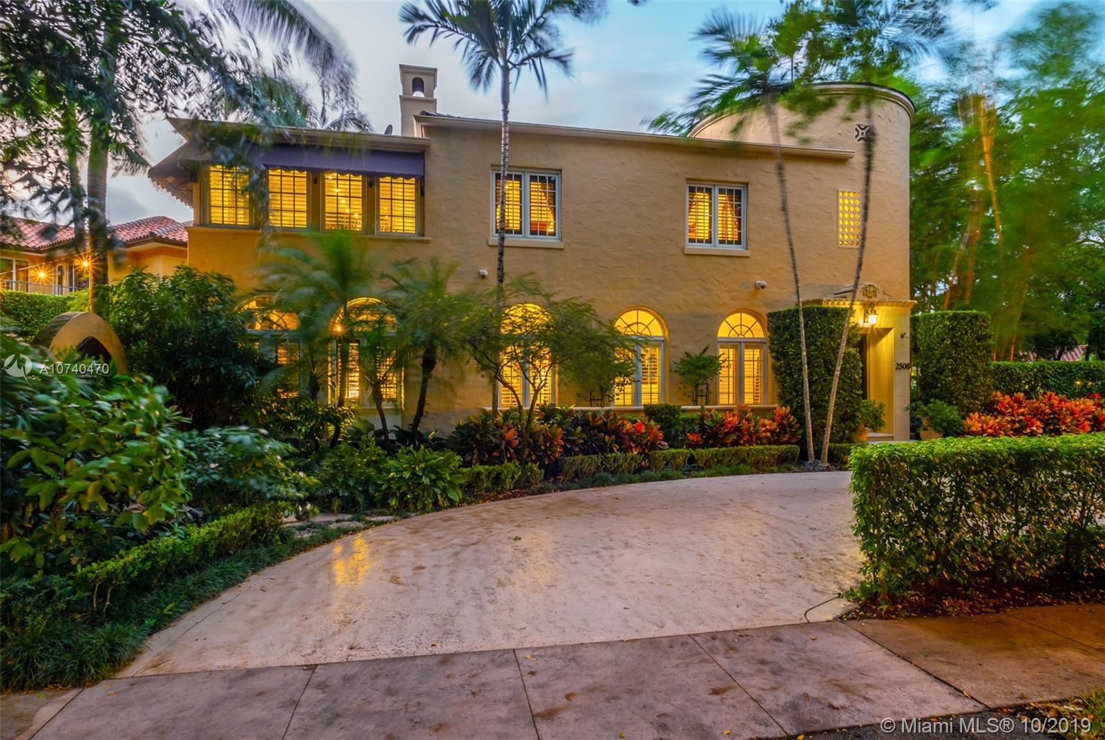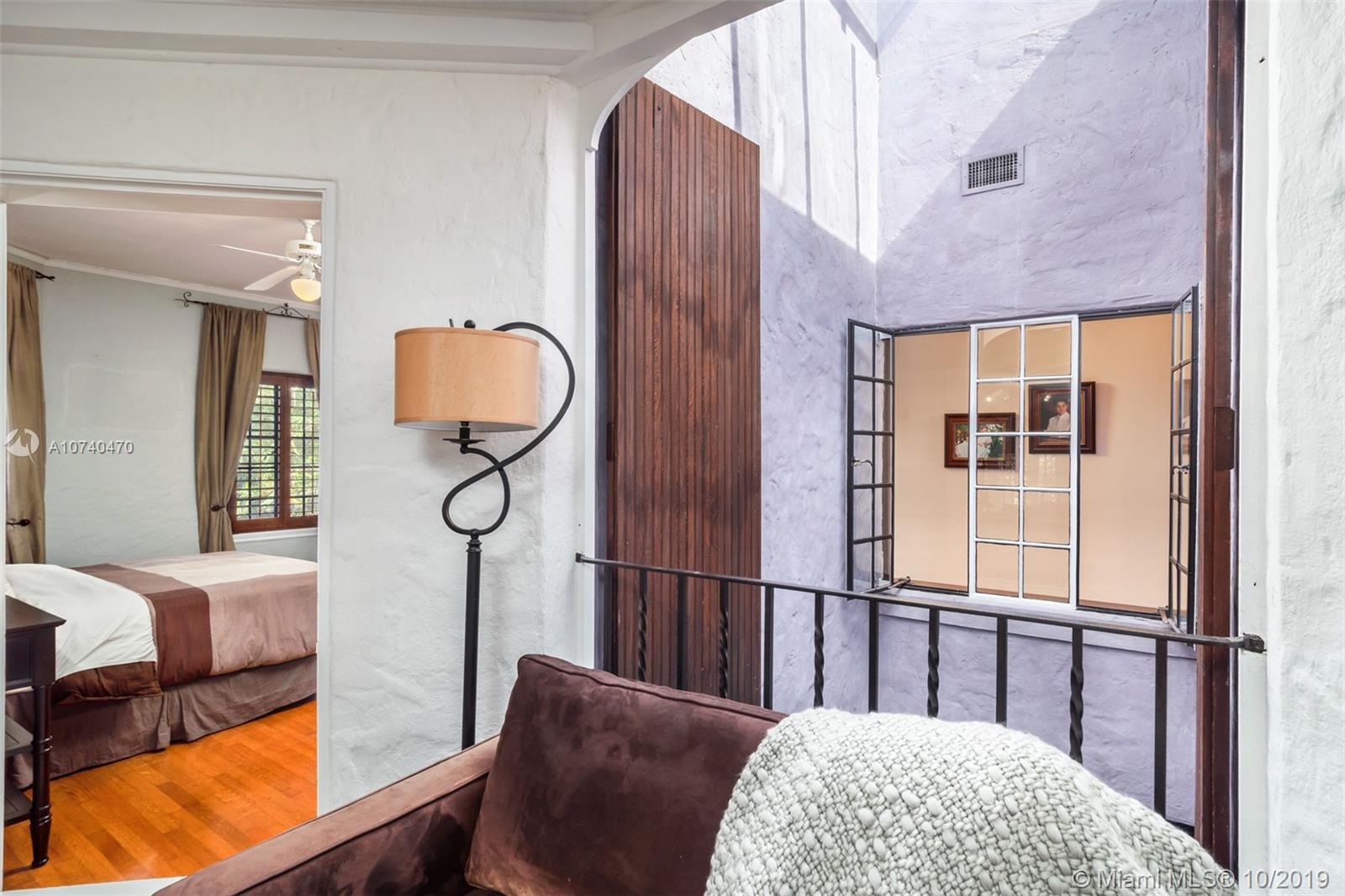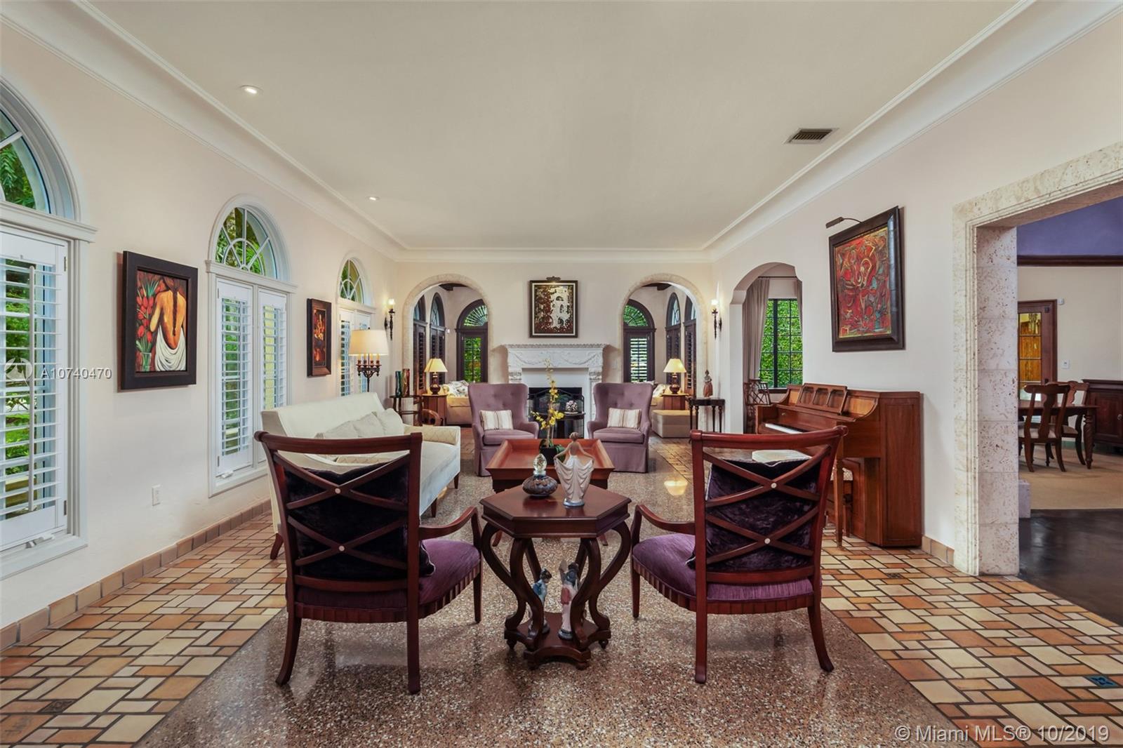 The grandeur of this historic gem spreads throughout the 4,326 sf of living space. An impressive rotunda entry showcases a winding marble staircase. Detailed wood scroll and mill work add elegance to the 4 bedroom and 6 bathroom layout. Adding to the splendor are Moroccan sconces, high beamed ceilings, arched windows, and a carved stone fireplace. The lavish master bedroom and bathroom with custom tile are a delight, and the upgraded kitchen has modern features that complement the unique design. Relax in the sunroom or entertain guests in the spacious formal living and dining space. A game room with pool table leads outside to a lush private garden that surrounds an inviting stone patio and pool. Located in the heart a Coral Gables, downtown City Beautiful is a short walk away.