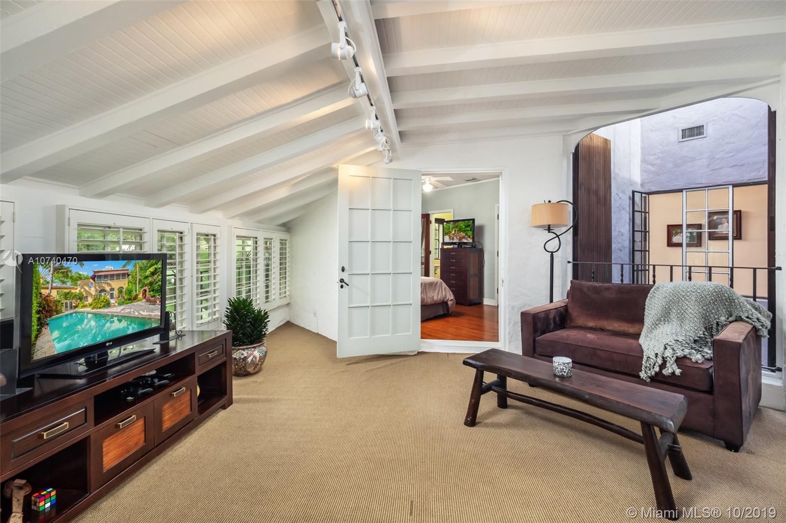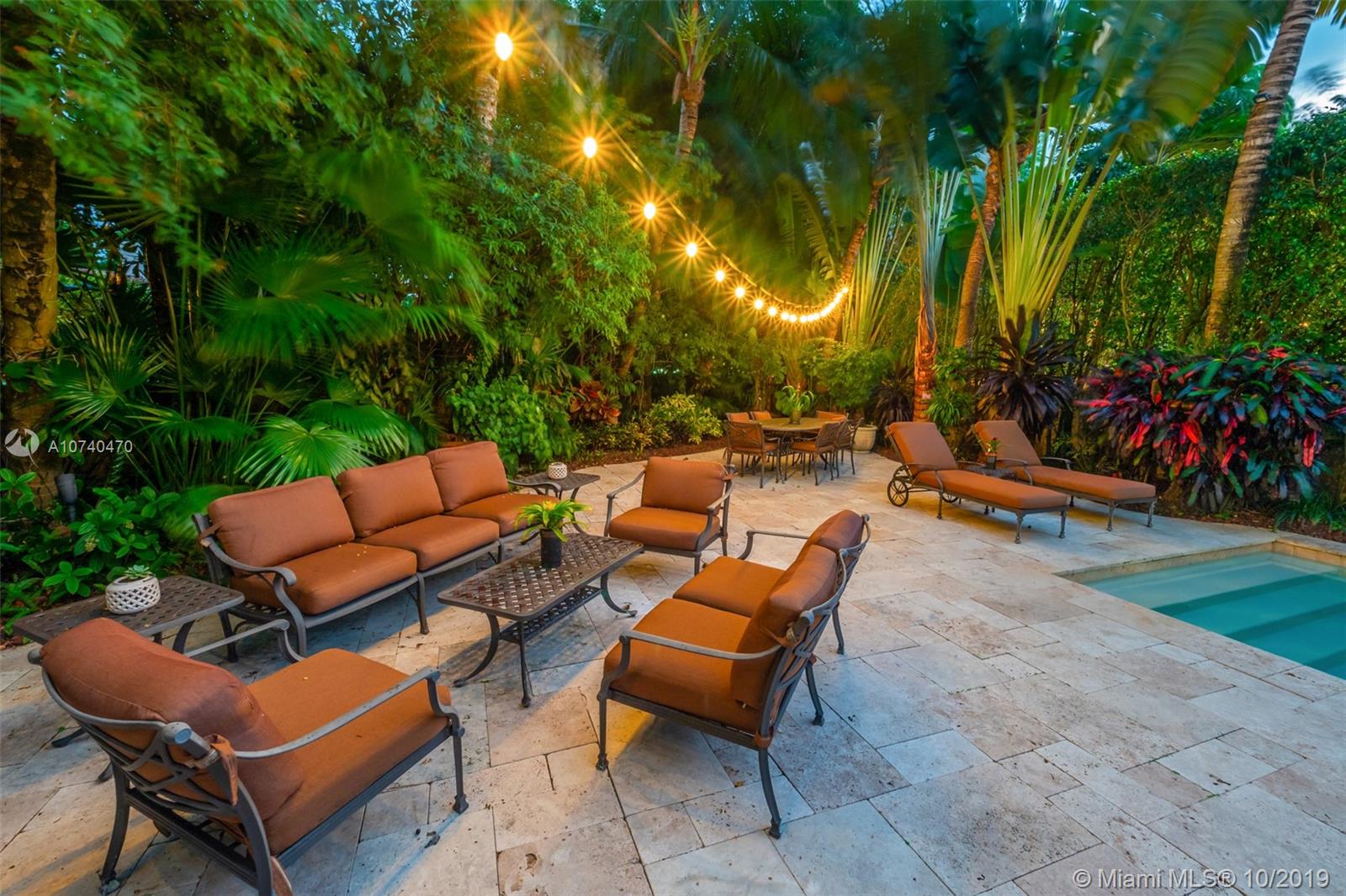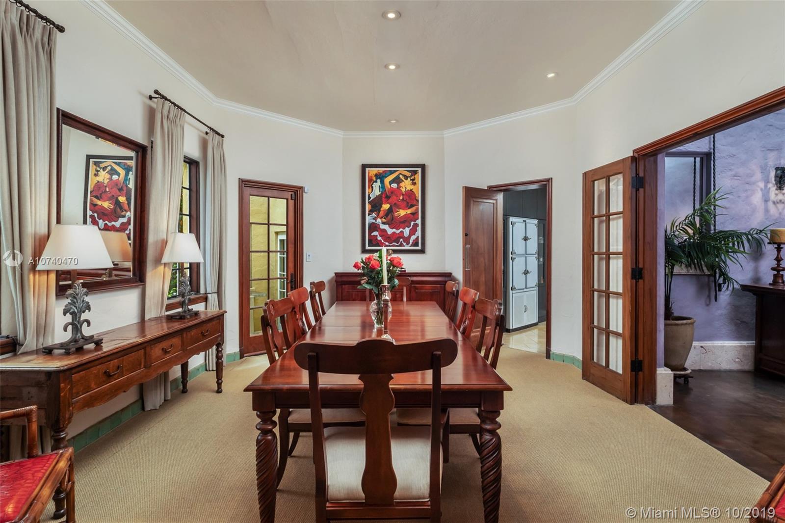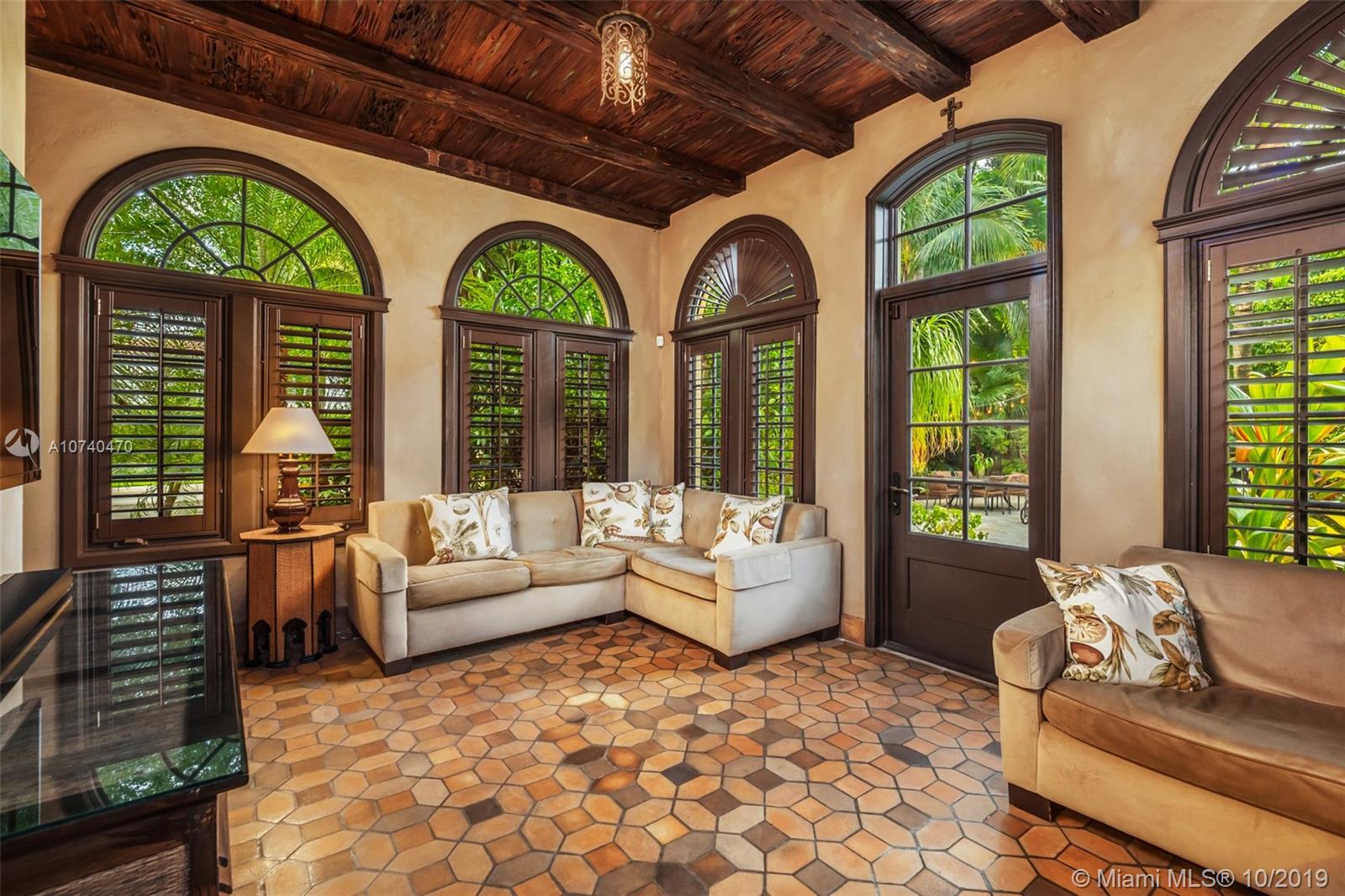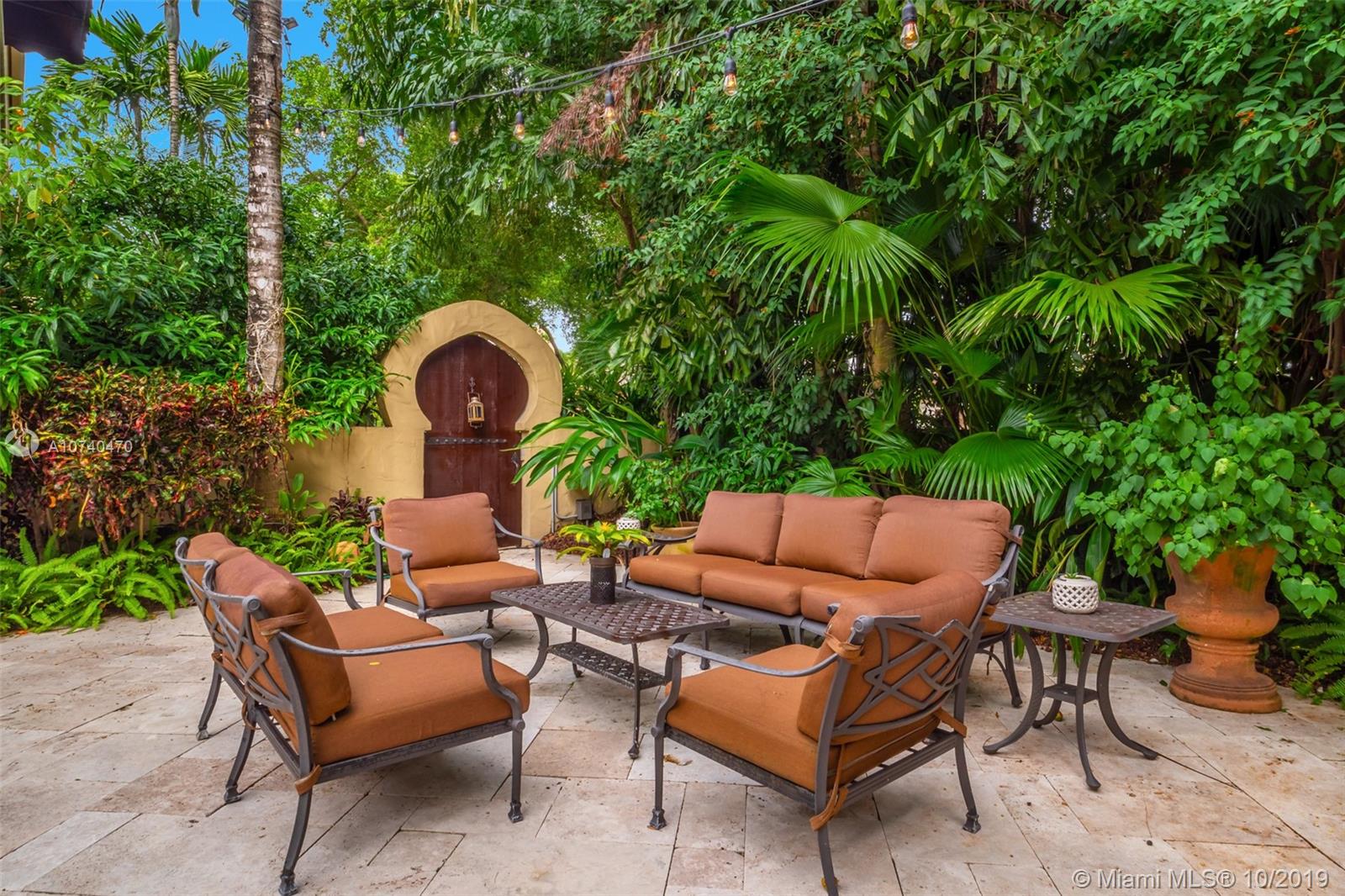 The grandeur of this historic gem spreads throughout the 4,326 sf of living space. An impressive rotunda entry showcases a winding marble staircase. Detailed wood scroll and mill work add elegance to the 4 bedroom and 6 bathroom layout. Adding to the splendor are Moroccan sconces, high beamed ceilings, arched windows, and a carved stone fireplace. The lavish master bedroom and bathroom with custom tile are a delight, and the upgraded kitchen has modern features that complement the unique design. Relax in the sunroom or entertain guests in the spacious formal living and dining space. A game room with pool table leads outside to a lush private garden that surrounds an inviting stone patio and pool. Located in the heart a Coral Gables, downtown City Beautiful is a short walk away.