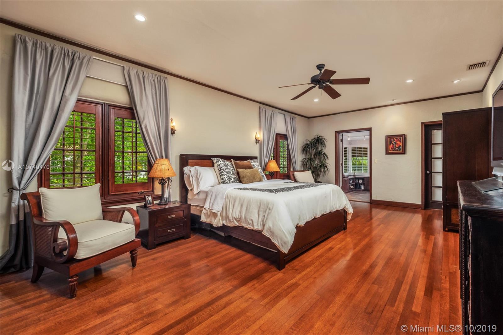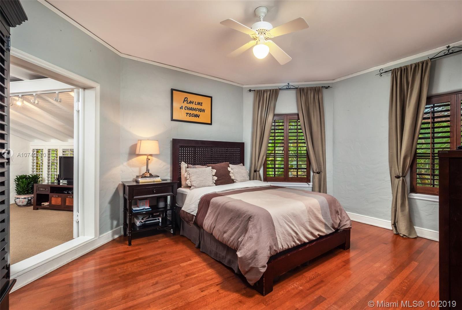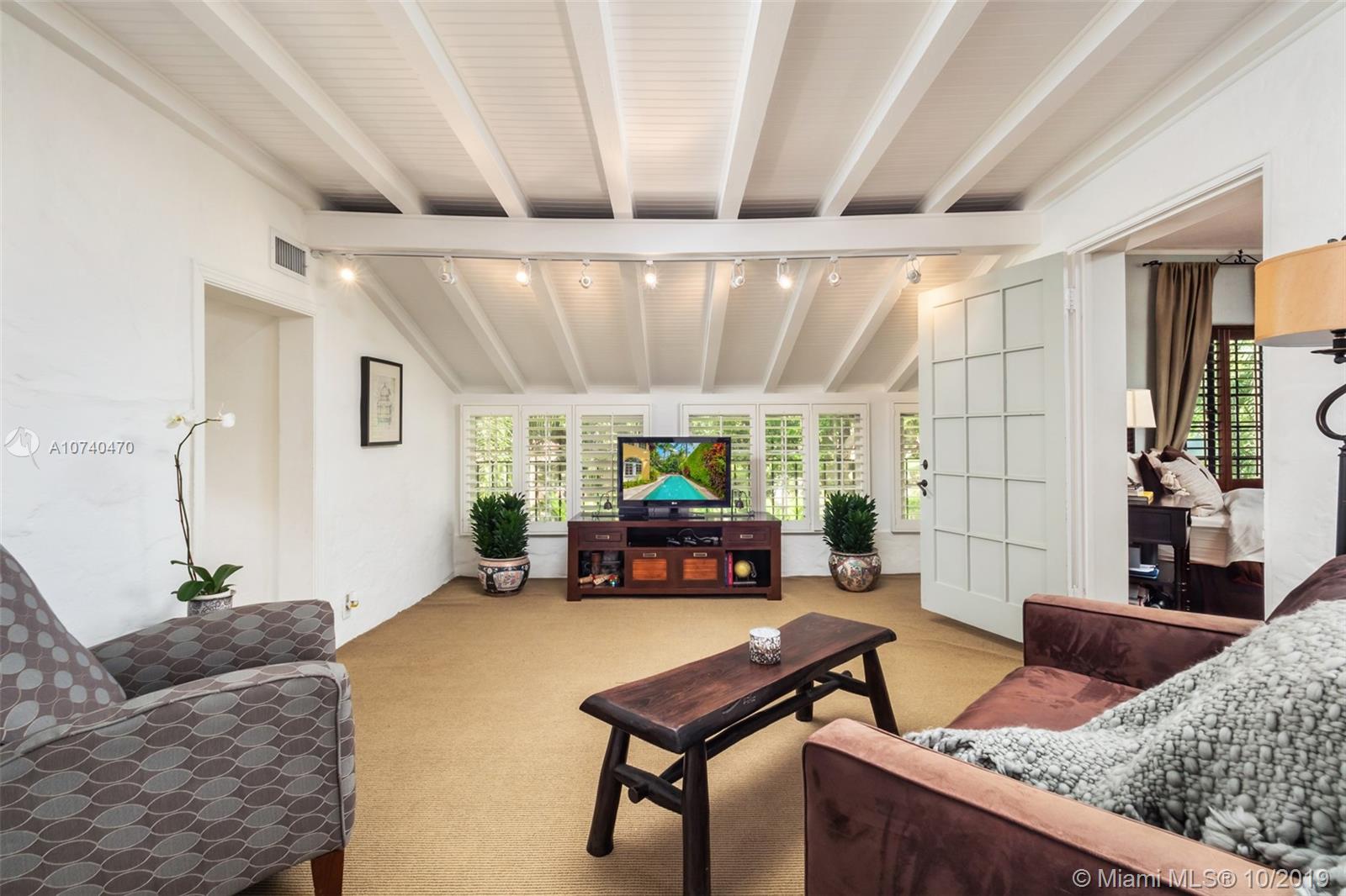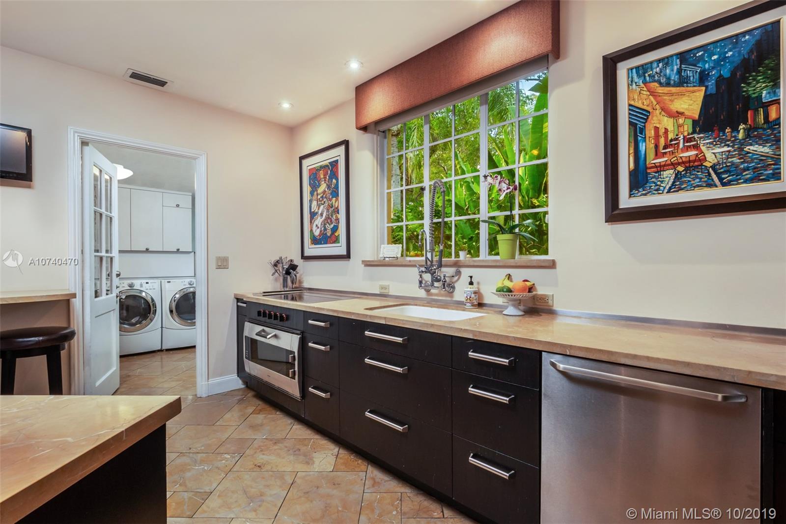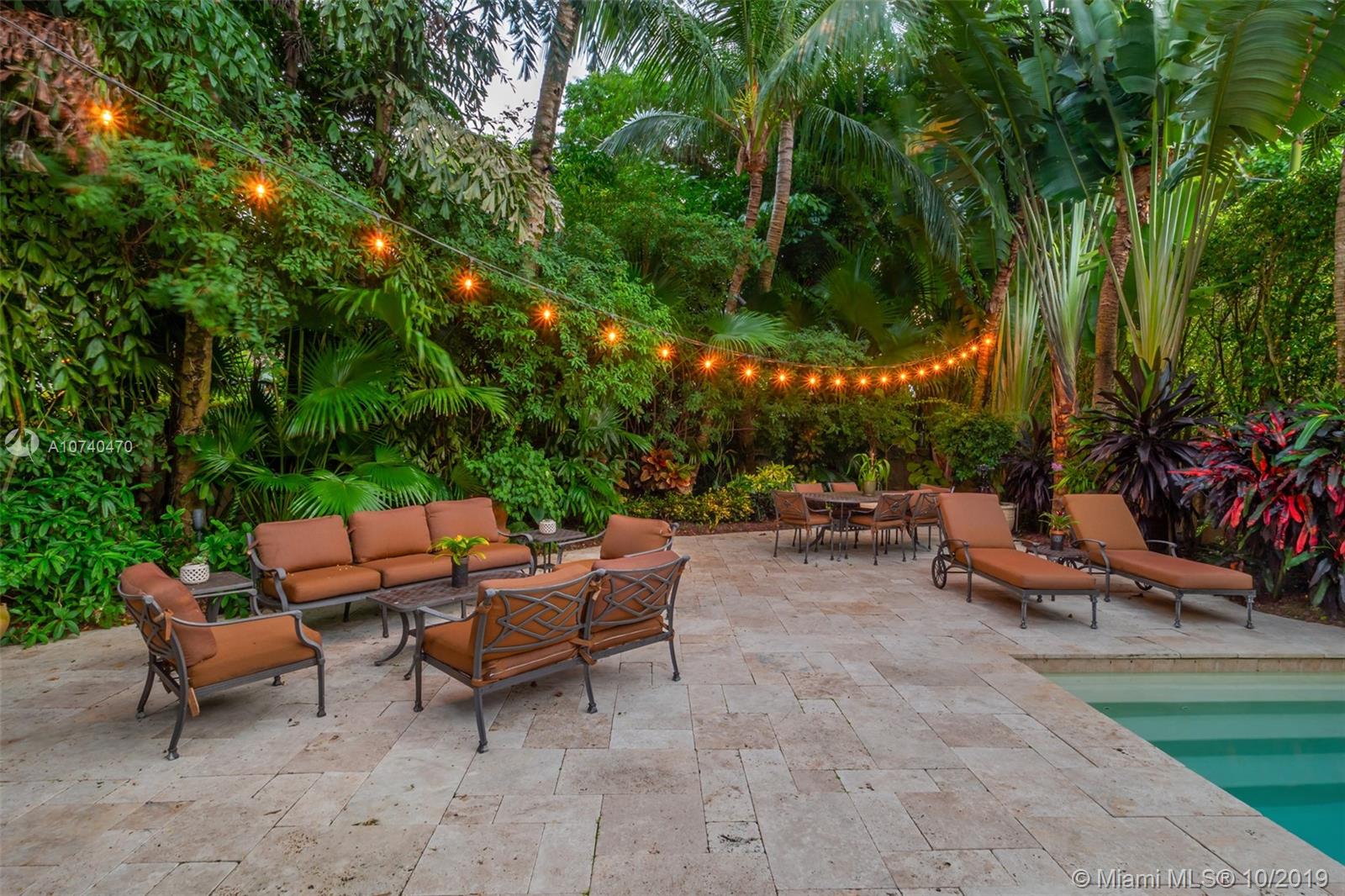 The grandeur of this historic gem spreads throughout the 4,326 sf of living space. An impressive rotunda entry showcases a winding marble staircase. Detailed wood scroll and mill work add elegance to the 4 bedroom and 6 bathroom layout. Adding to the splendor are Moroccan sconces, high beamed ceilings, arched windows, and a carved stone fireplace. The lavish master bedroom and bathroom with custom tile are a delight, and the upgraded kitchen has modern features that complement the unique design. Relax in the sunroom or entertain guests in the spacious formal living and dining space. A game room with pool table leads outside to a lush private garden that surrounds an inviting stone patio and pool. Located in the heart a Coral Gables, downtown City Beautiful is a short walk away.