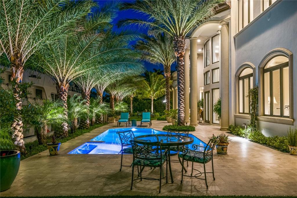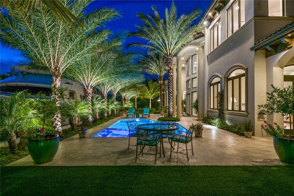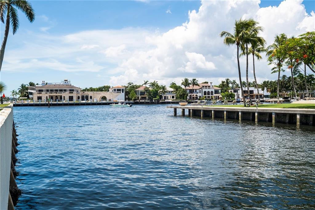 Magnificent water views sweep to the New River and Intracoastal from this impressive Modern Mediterranean estate fronting 125± ft. on the grand Lido Canal, one lot from the point, with prime dockage for a 100±-ft. yacht and a 13,750 square foot lot. Boasting 5 bedrooms, 7 baths and over 7000 square feet of living space, a fabulous entertaining space, opening to the waterfront’s sprawling pool terrace with exquisite landscaping, the spectacular 2-story window-walled great room features a fireside sitting area, media area and professional-style bar. Gourmet kitchen. Paneled office/billiard room. Ultra-luxurious first-floor master suite. 3 car air conditioned garage. Full house generator.