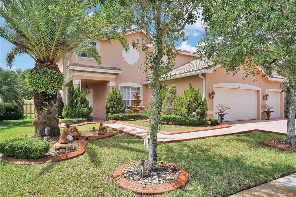 PRICED UNDER MARKET! Great opportunity for large family. Fantastic upgraded home featuring tile flooring throughout first floor, upgraded kitchen cabinetry, granite counter-tops, stainless steel appliances, crown molding throughout entire home, 3-car garage with tiled flooring, alarm system, security cameras, fenced backyard, accordion hurricane shutters, and more. Amenities offer magnificent clubhouse with tennis, pool, overlooking huge lake, 24/7 security, guard gated, and much more. Easy to show!