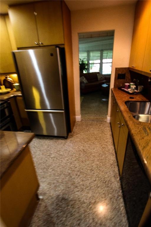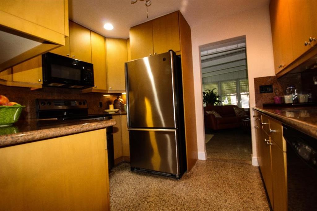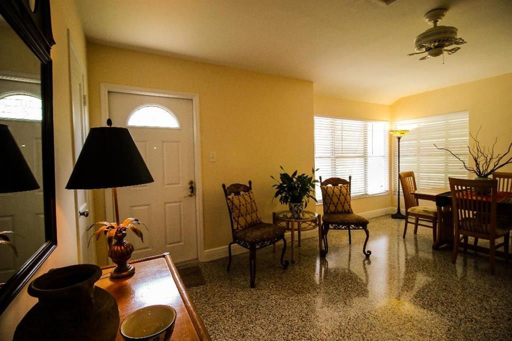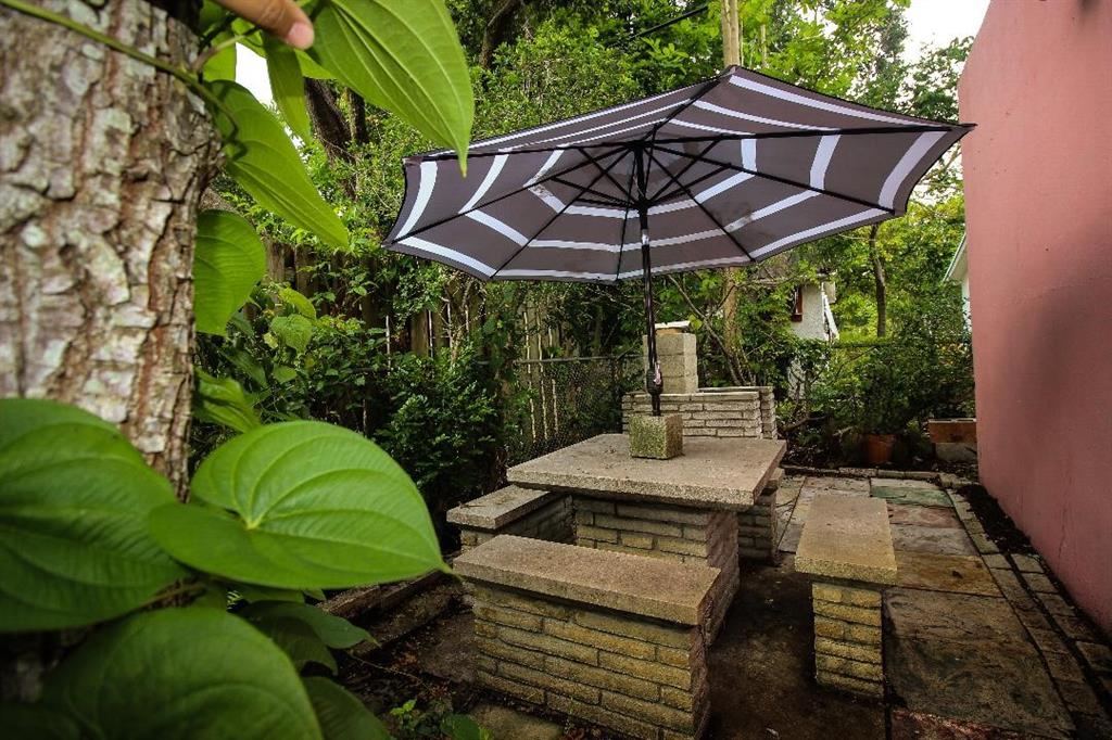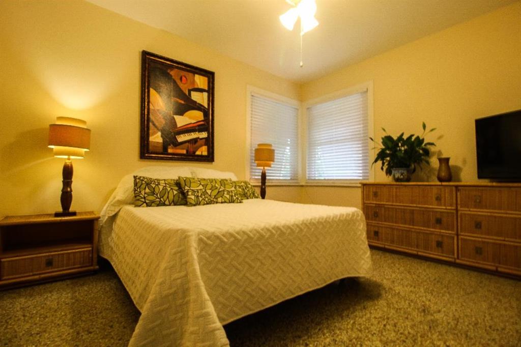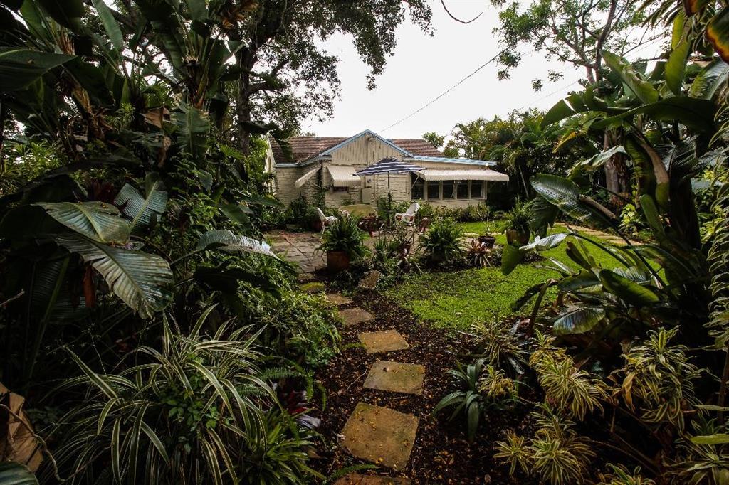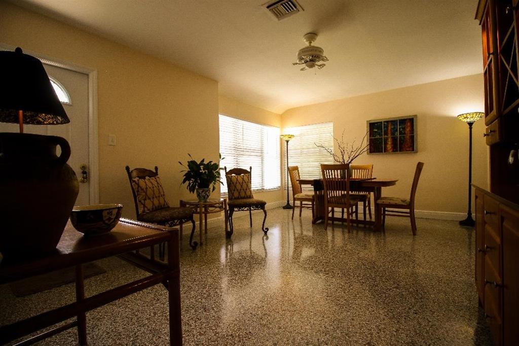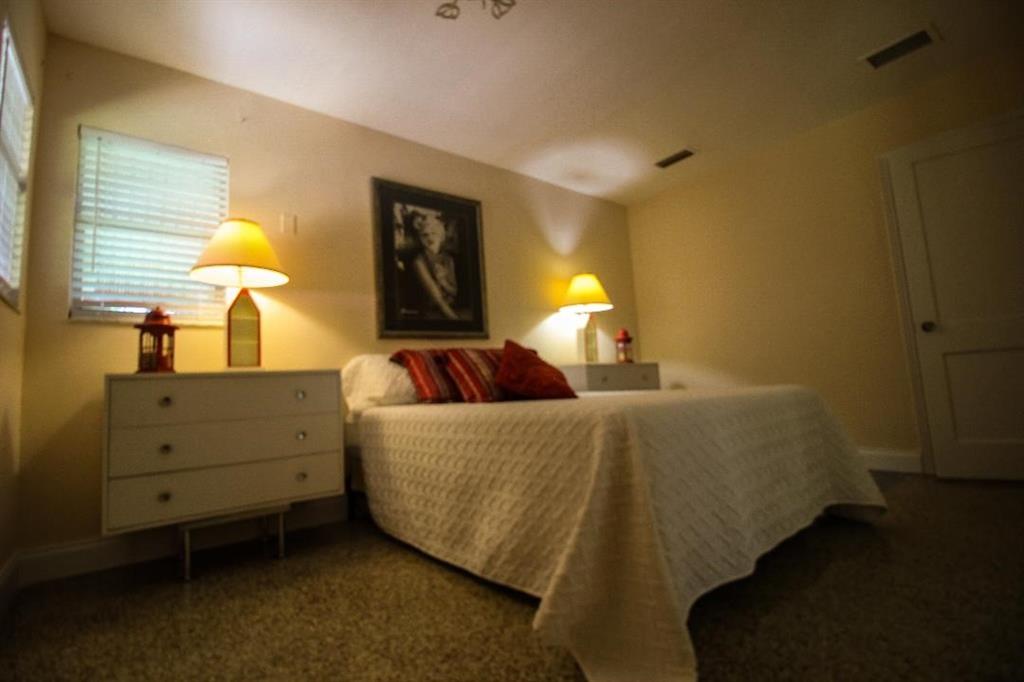 2 beds, 1 completely renovated bath, FL room, living/dining room, Completely renovated kitchen; double stoves, stainless, granite, plenty of cabinets. Updated windows, restored original terrazzo floors. Tropical landscaped, private, fenced backyard with custom barbeque/grill/patio area. In-ground fish pond. Detached garage with electric/water & laundry. Corner lot. Well water sprinkler/pump system. Beautiful cottage feel.