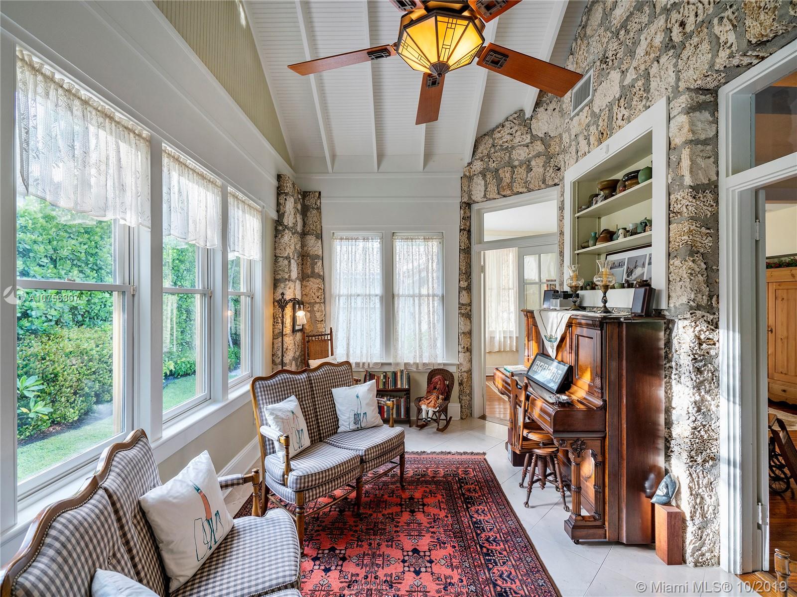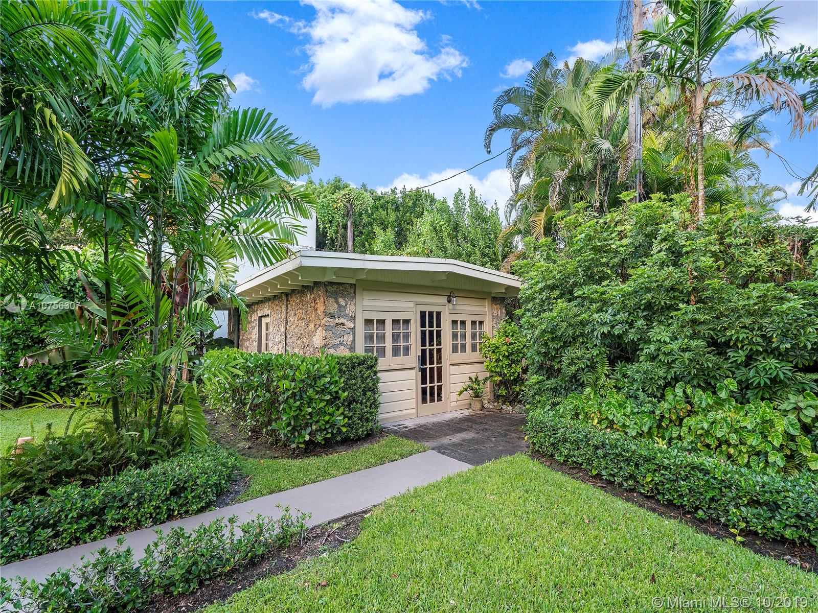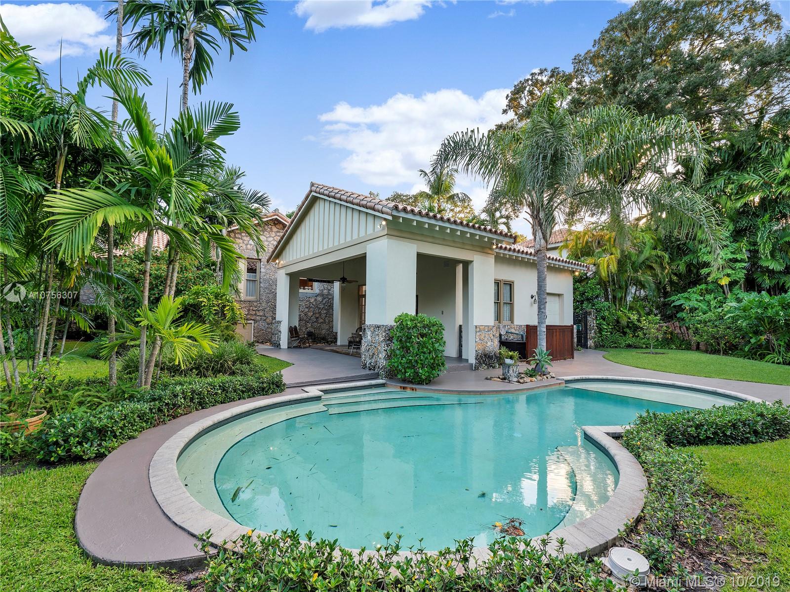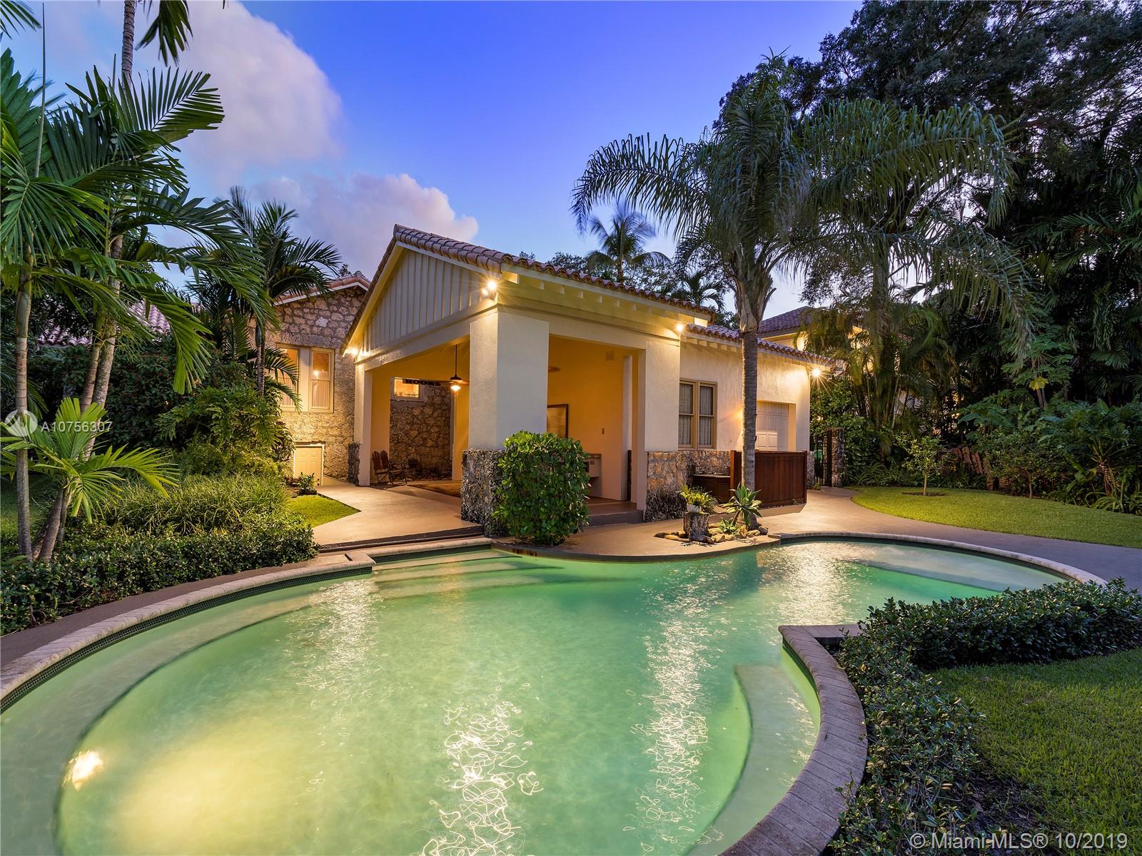 Landmark property built in 1916 by George Merrick, real-estate developer and founder of Coral Gables. Furnished with period pieces, this is one unique, historic home situated on a historic street near the Biltmore Hotel, Venetian Pool, Granada golf course, University of Miami, Coral Gables library, and downtown Miracle Mile shops and restaurants. Property completely updated throughout with top of the line appliances. Main house 3 bedrooms, 2 bathrooms. Vaulted ceilings, coral rock walls throughout, marble, travertine floors, cedar wine cellar etc. Backyard cottage 1/1 with kitchen. Backyard has fruit trees, terrace ideal for family gatherings, pool and BBQ area. A must see to appreciate! Seller leaving some furniture