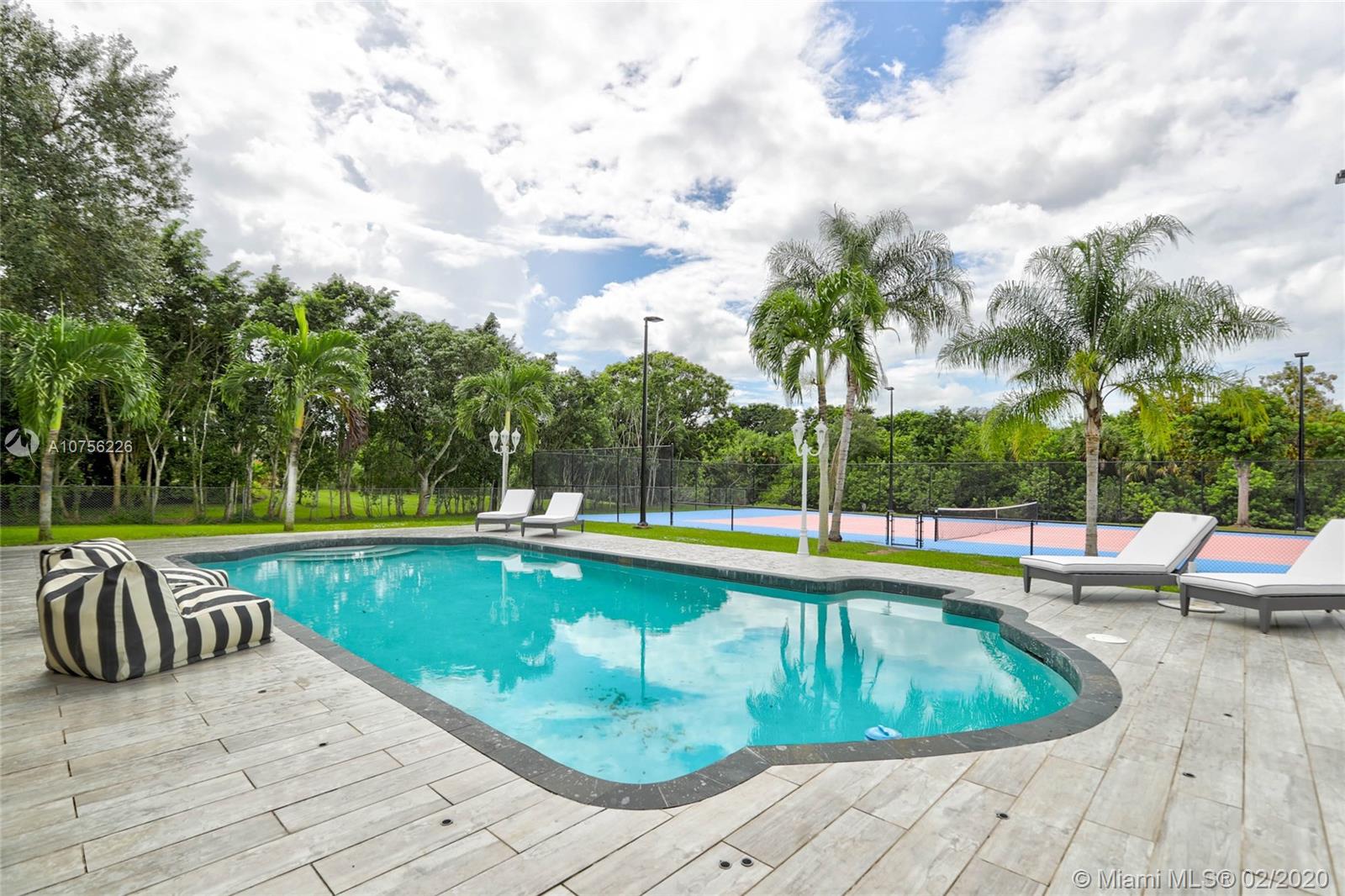 Do not miss out on this one of a kind estate in Majestic Groves in Davie. This 5/5.5 with over 5,000 square feet has been completely renovated! A brand new custom kitchen was put in with top of the line appliances, countertops, and cabinets. All of the flooring was re-done and every single one of the bathrooms as well. The backyard was totally redone and the tennis court was redone with a fast-dry court, ball machine, and new hitting wall. The pool house out back was redone is a full 1/1 that can be used as a guest house. Roof and A/C's were just replaced and the entire home is staged with over $200k worth of custom furniture. This is a truly incredible home!