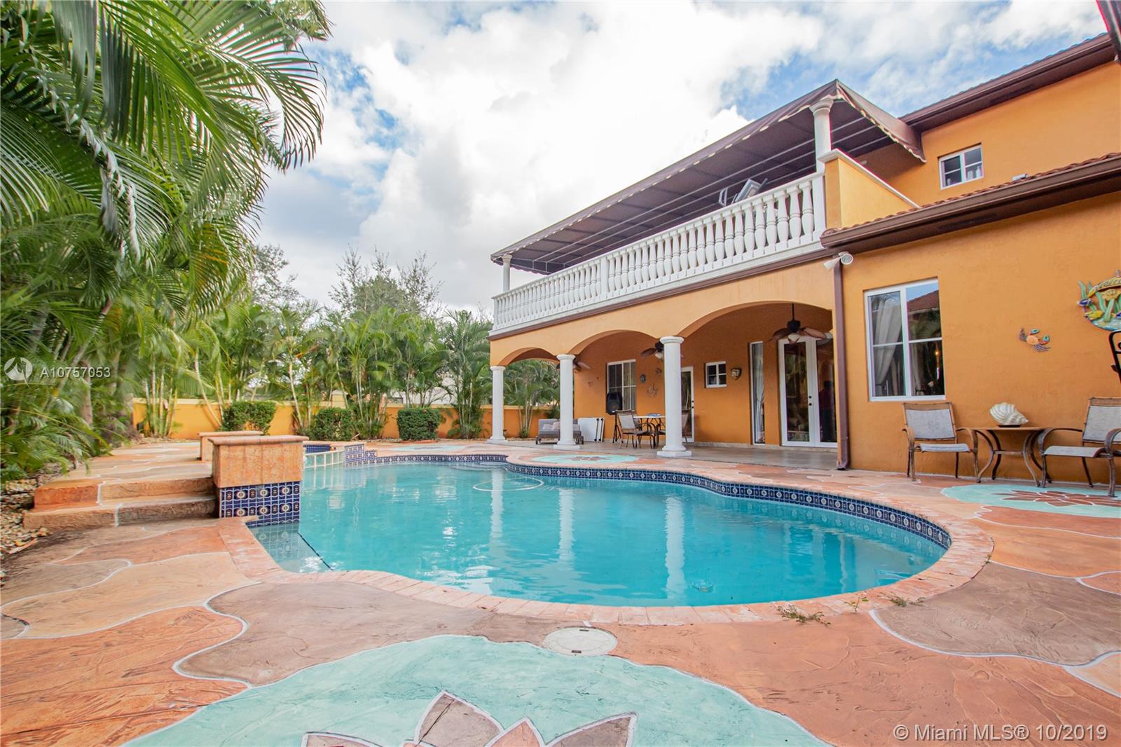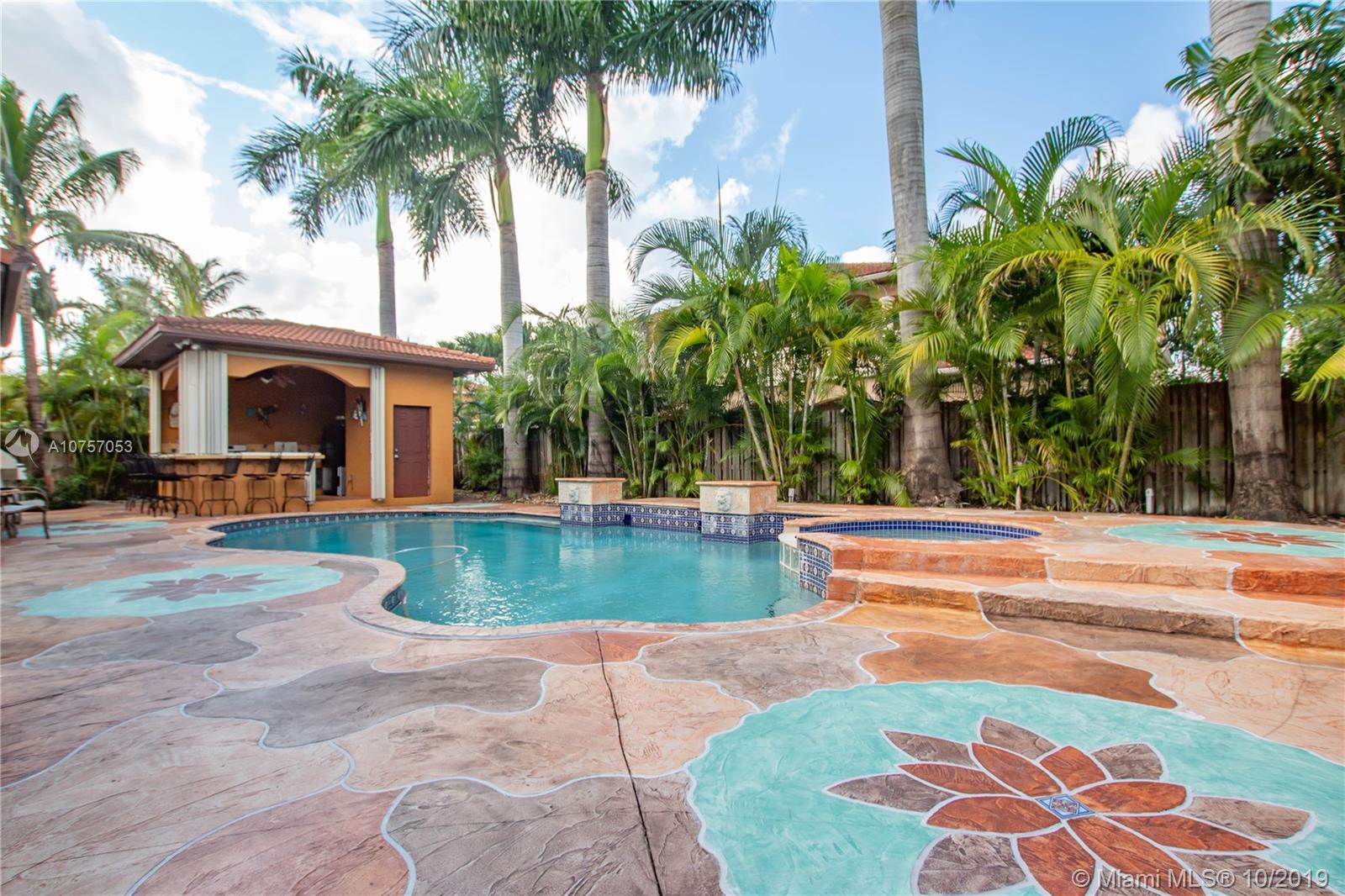 This admirable and spacious 4 bedroom/3 bathroom (+ Full outdoor Pool bath) home is a remarkable Spanish Mediterranean style, with 10ft. ceilings throughout all bedrooms. Granite counter tops and updated stainless steel appliances in the kitchen. One bedroom and bathroom located on the 1st floor, perfect as an office or in-laws quarters. Standing on a corner lot, boasting over 8,000 sq.ft., this property has enough space for a Boat or RV/Camper on either side. Tropical oasis Heated pool, with Salt water features and full outdoor kitchen/bar with gas range included. A large master bedroom with an en suite balcony overlooking the pool and walk in closets. 2 Car garage. Extremely low association fee paid yearly. Walking distance to an A+ rated School. Furniture Can be included in the sale.