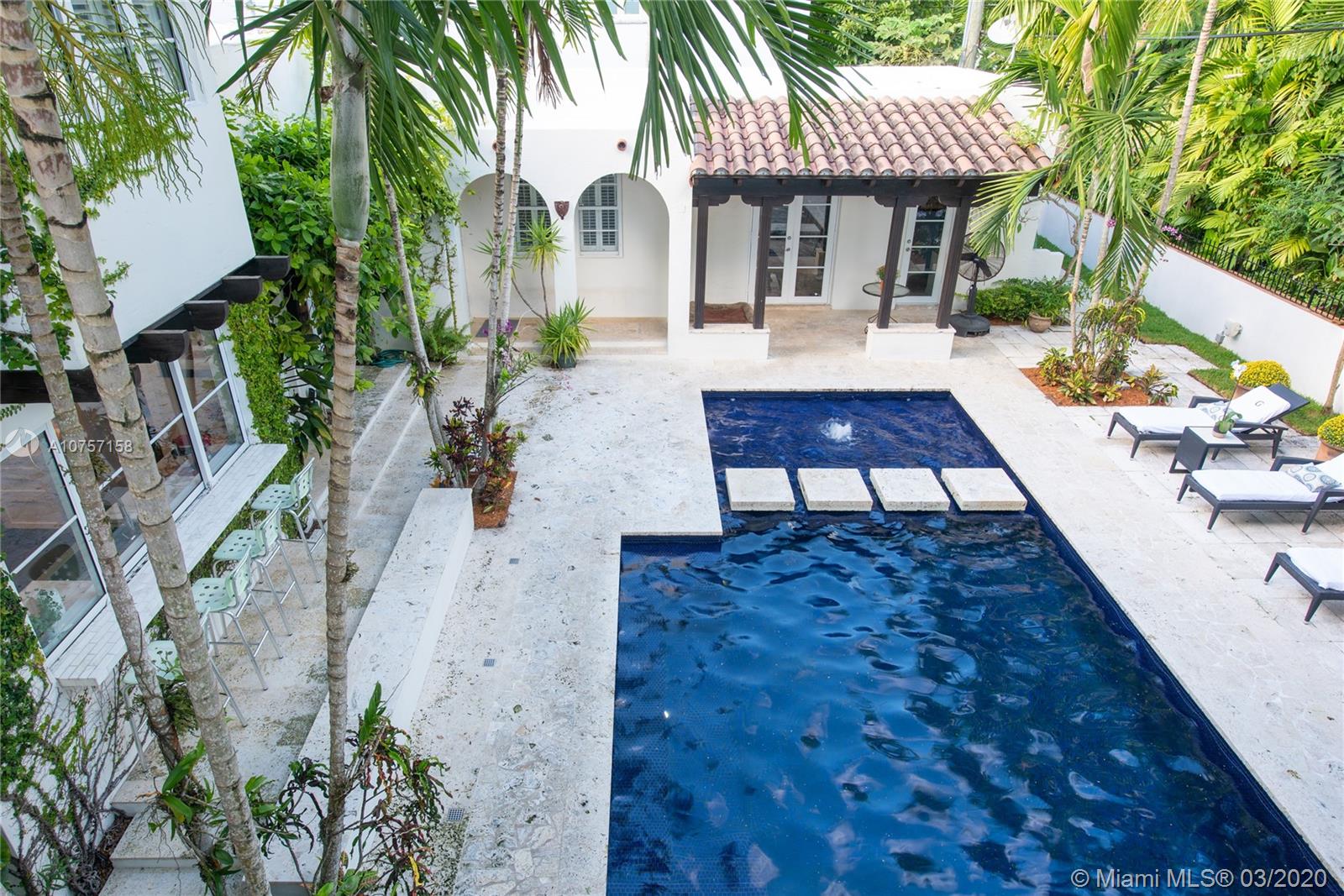 AGGRESSIVE NEW PRICE! Architecturally unique 1925 Phineas Paist design, lavishly expanded in 2010 to 5BR/4.5BA Mediterranean treasure w/contemp. features. Highlighted by a 3rd level serenity lookout loft w/balcony, half-moon glass Sunroom w/Moorish lattice screens & secluded paradise w/gas heated saline pool,summer kit & Loggia courtyard. Mahogany arched front doorway, Limestone stairway & wd burning Fireplace, engineered solid H/wood flrs w/Coral Stone perimeters, Impact windows/drs, Elevator-ready. Chef’s Kit: Thermador 6 burner gas range, 3 ovens, 2 d/w, food warmer. Calacatta counters, eat-in island, breakfast area. Stellar 2nd flr Master Suite w/front balcony & priv. rear morning bar, ample bath/dressing room. Per Architect 4,322SF & 1,071SF non-A/C space. Prepare to be awed!