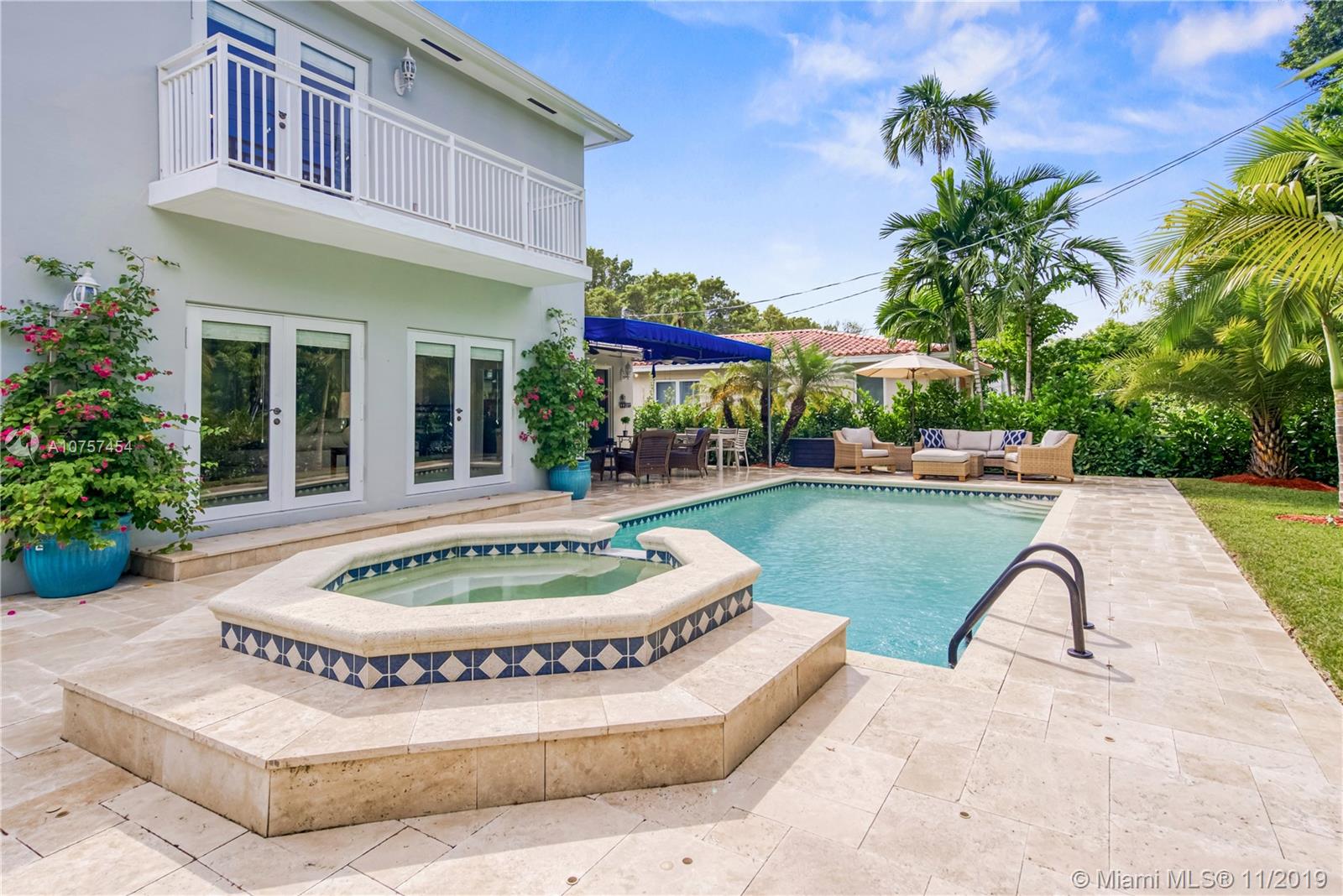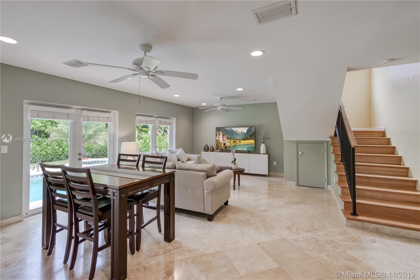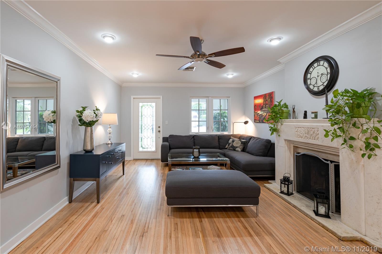 Beautifully renovated 4 bedroom home on quiet and desired Coral Gables street. The house has a bright open floorplan, overlooking the gorgeous pool area and lush backyard, perfect for entertaining. The recent renovations include new modern kitchen and bathrooms, impact windows, roof, AC unit and beautiful travertine driveway and patio. Great curb appeal and minutes away from Coral Gables golf course, restaurants, and more!