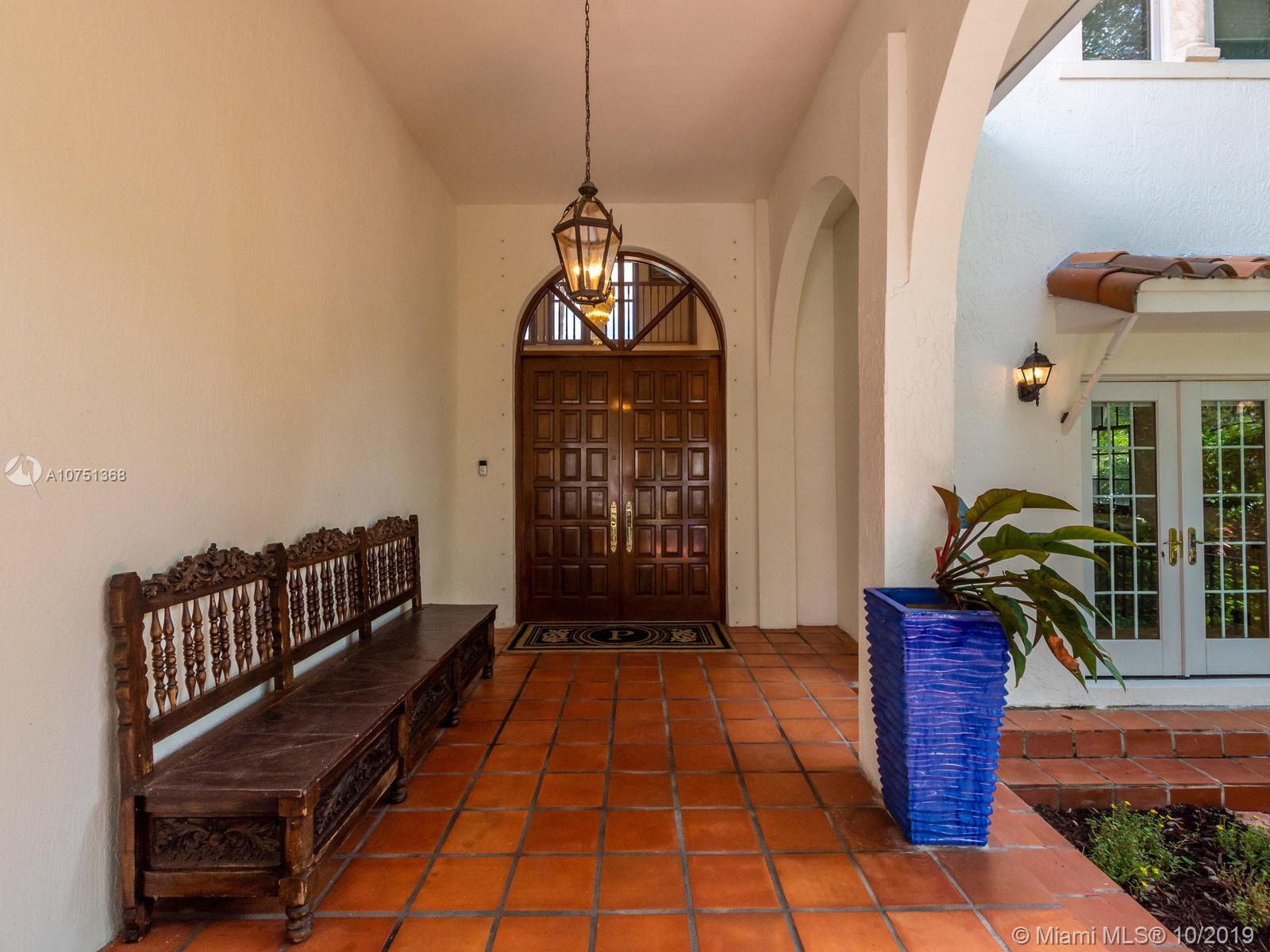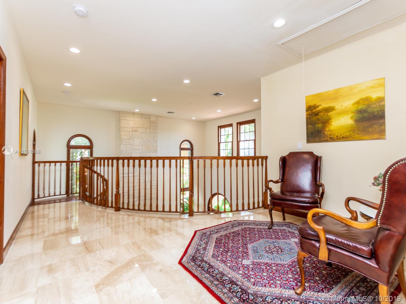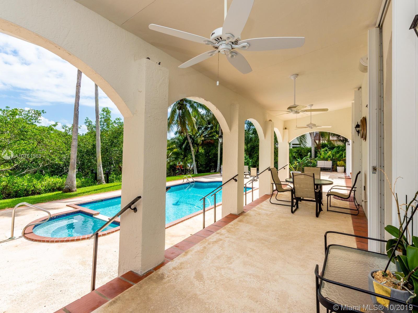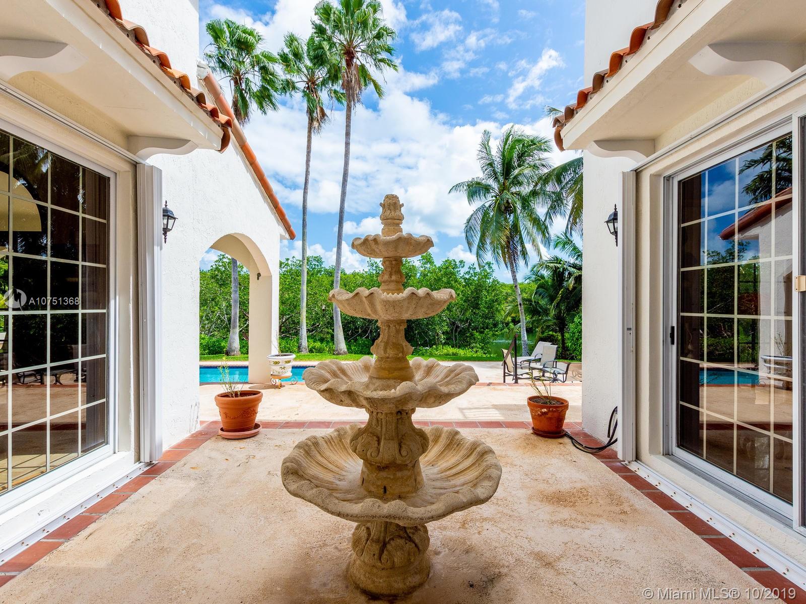 Poised in a well guarded community, this elegant tri-level Mediterranean residence possesses great style and warmth, achieved through exceptional design and superior grade construction. A six bedroom and six and one half bath with serene views of the lush patio and pool area, private water views and majestic mangrove preserve. Finely crafted custom woodworks with gleaming beige marble floors. Entry foyer, formal living room, formal dining room and large traditional library. Two story keystone fireplace in spacious and inviting family room. Newly renovated dock.