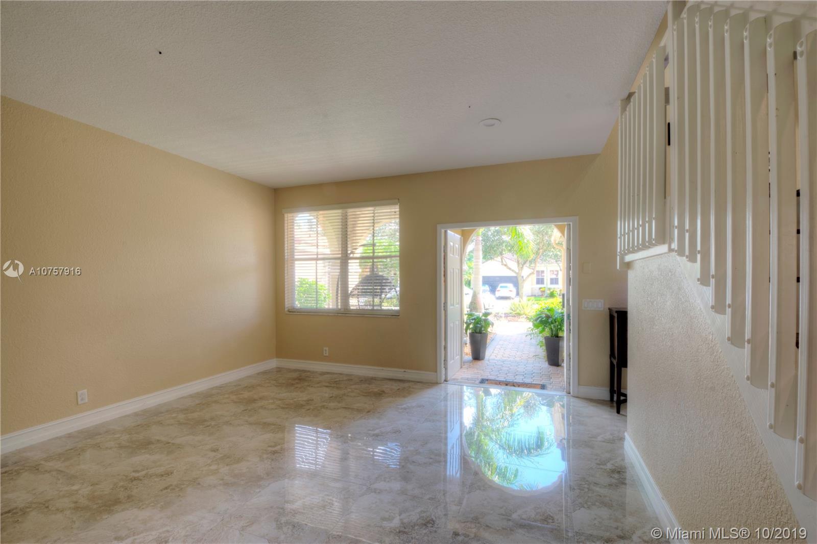 Spacious 5 bedroom 3.5 bathroom home in Weston. Wonderful home near top-rated schools. Remodeled half bathroom on the first floor. Beautiful porcelain tile on first floor and laminate flooring on the stairs and second floor. Easy to clean corian countertops in the kitchen. Accordion shutters on second floor. Fifth bedroom currently used as an office off of the master bedroom. Could easily be used as sitting area, nursery, or home gym. Community amenities include multiple pools, tot lots and more.